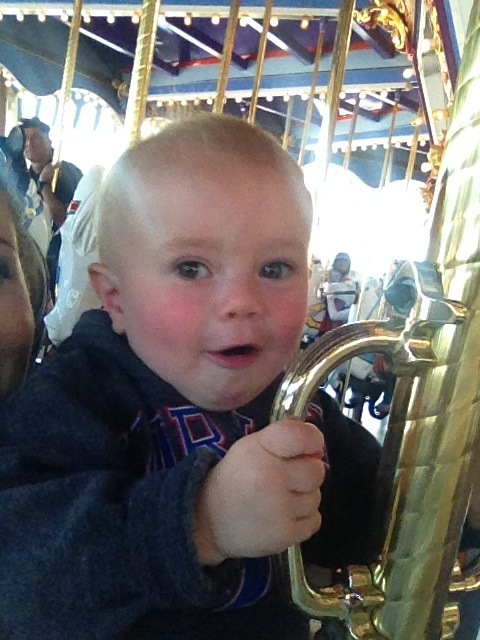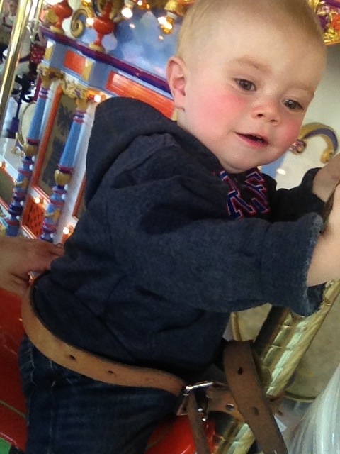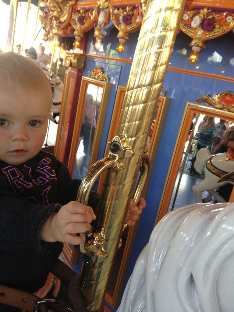 The sun was fine because I had wasted about twenty minutes at home trying to find Jacob’s knit Mickey hat. I packed it in my backpack and he took it out and was playing with it. It was pretty adorable to see him walk around with the hat on all slouchy like a beret. But then he stuffed it somewhere and I could. Not. Find it. Anywhere.