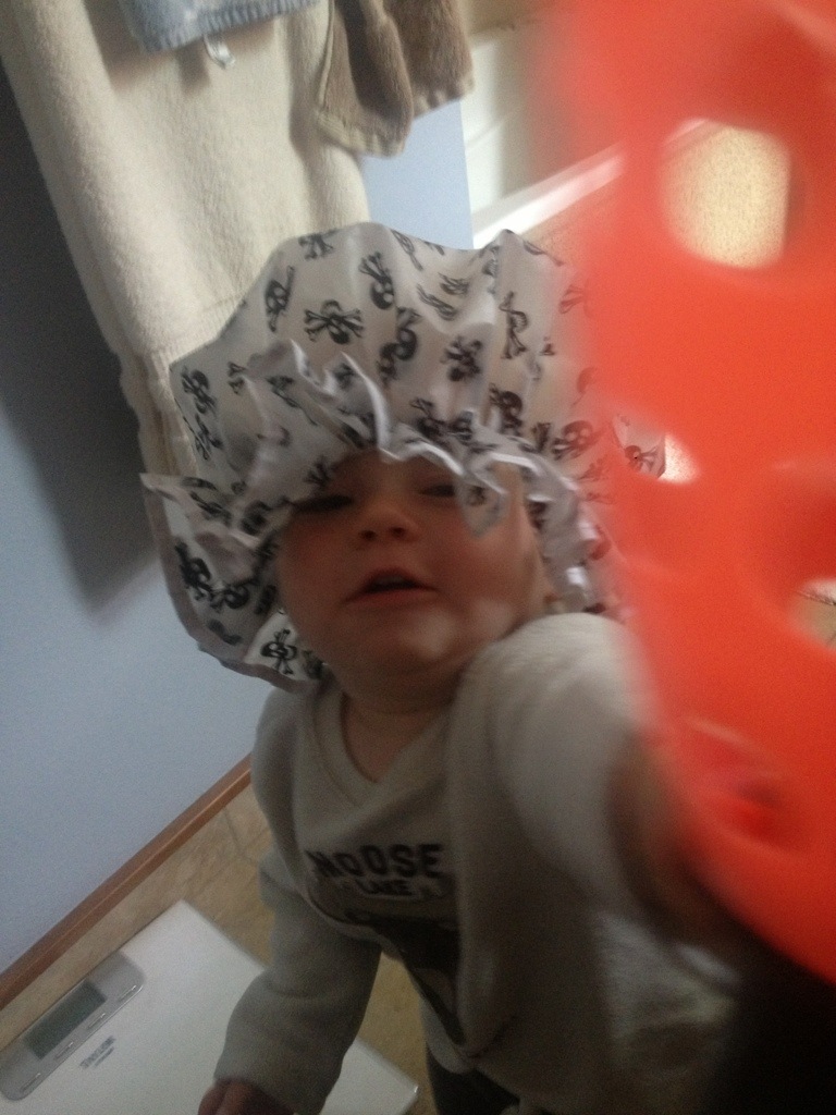 This entry was posted in Uncategorized and tagged 17 months old, baby, funny, hat, one year old, shower cap, silly, toddler. Bookmark the permalink.