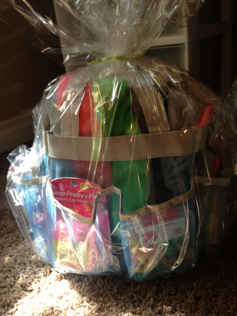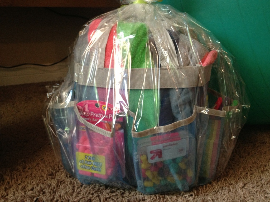 These are great kits–the idea is so cute and unique, and best of all USEFUL! Both Brittany and Dillon commented on some of the items and the fact that they never would have thought about bringing them, but they were thrilled to have them. This gift is very adaptable because you can execute it on any gift budget. If you wanted to spend a larger amount of money, you can include gift cards to Target, Amazon, local eateries, a bookstore, or even iTunes in this package. You could throw in an iPod or other pricey item. At its most minimal, this can be made as a cute, low-cost gift with a small selection of the items I will list.