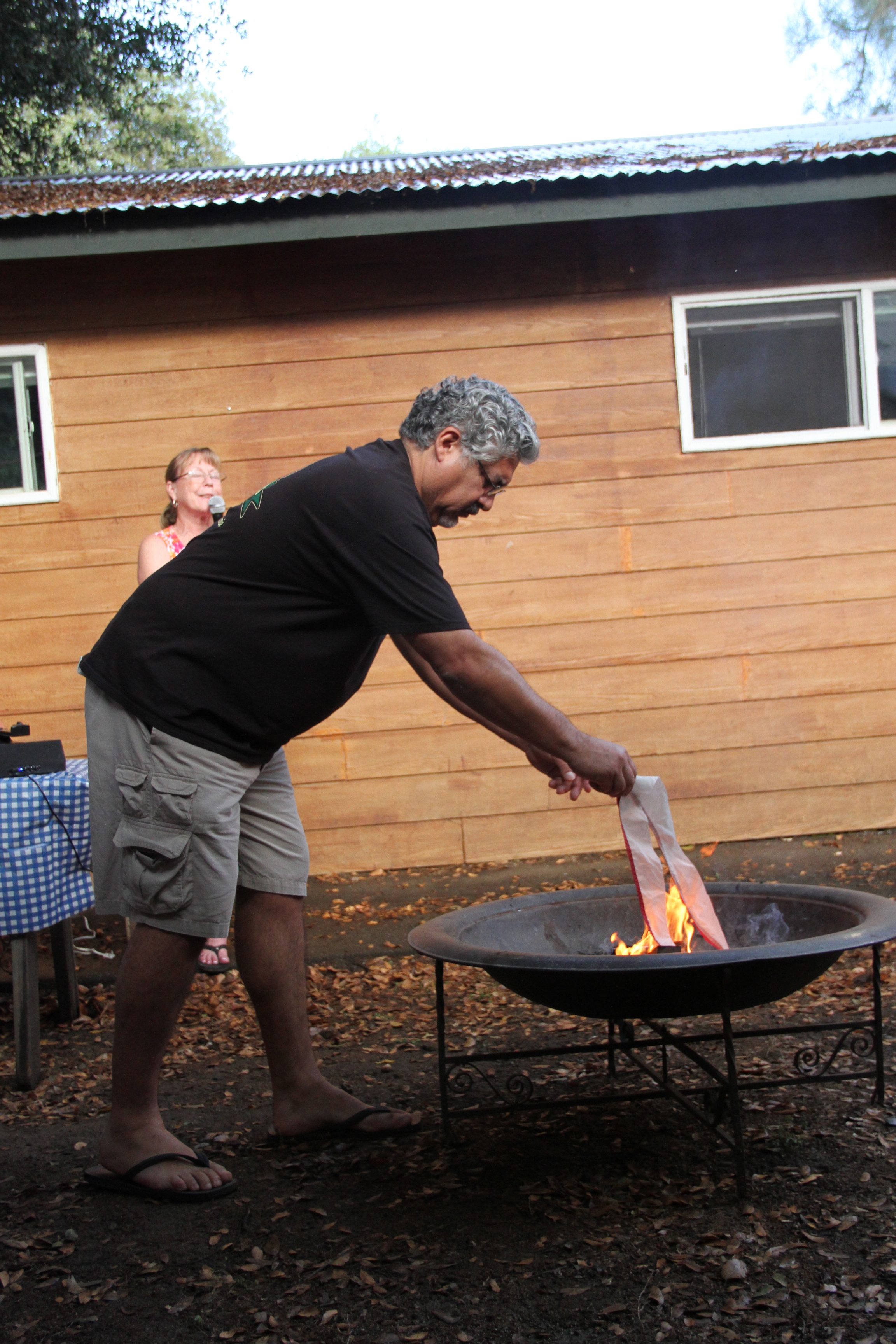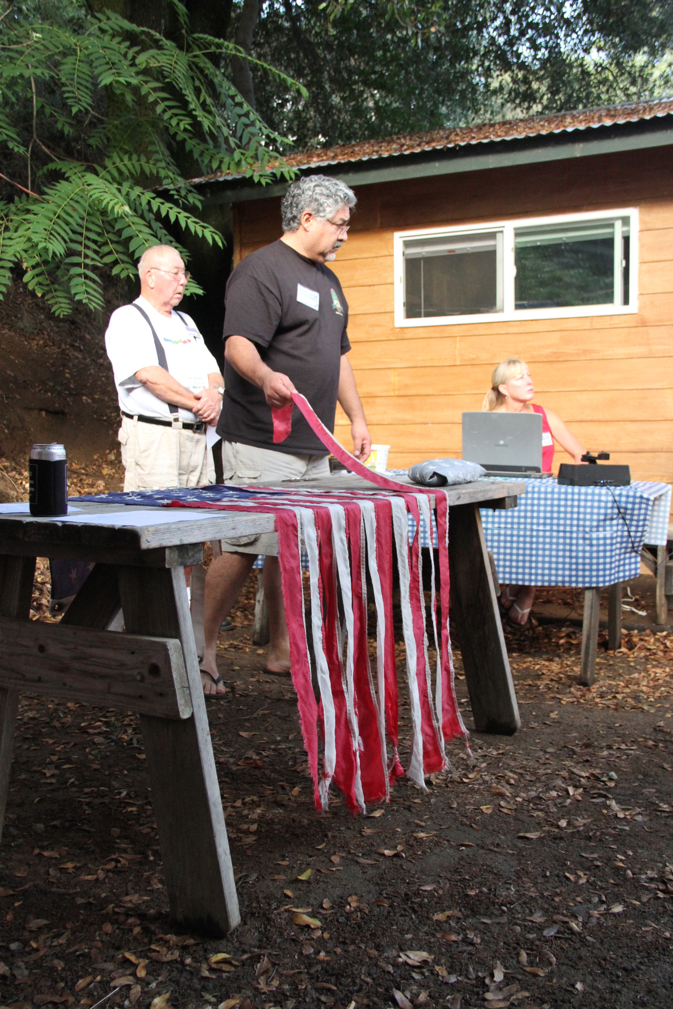 Josh’s Aunt Shelly and Uncle Luis are performing a flag retirement ceremony. It’s a really neat thing to experience if you haven’t. A worn and battered flag is ceremoniously turned over to the flames. The ashes of the flag are buried in a special spot as well, so that every bit of the flag’s life is full of respect.