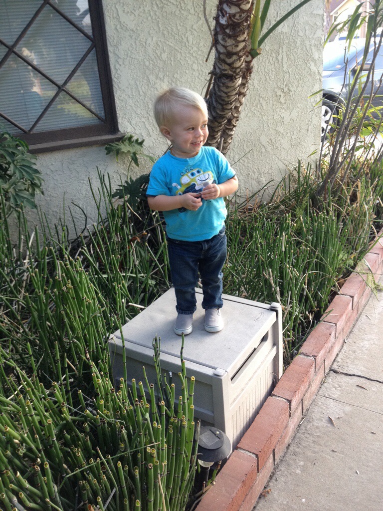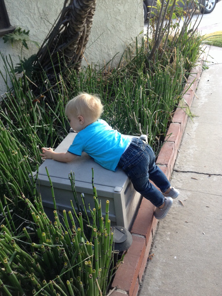 This entry was posted in daily baby and tagged baby, climbing, cute, front yard, hose box, toddler. Bookmark the permalink.