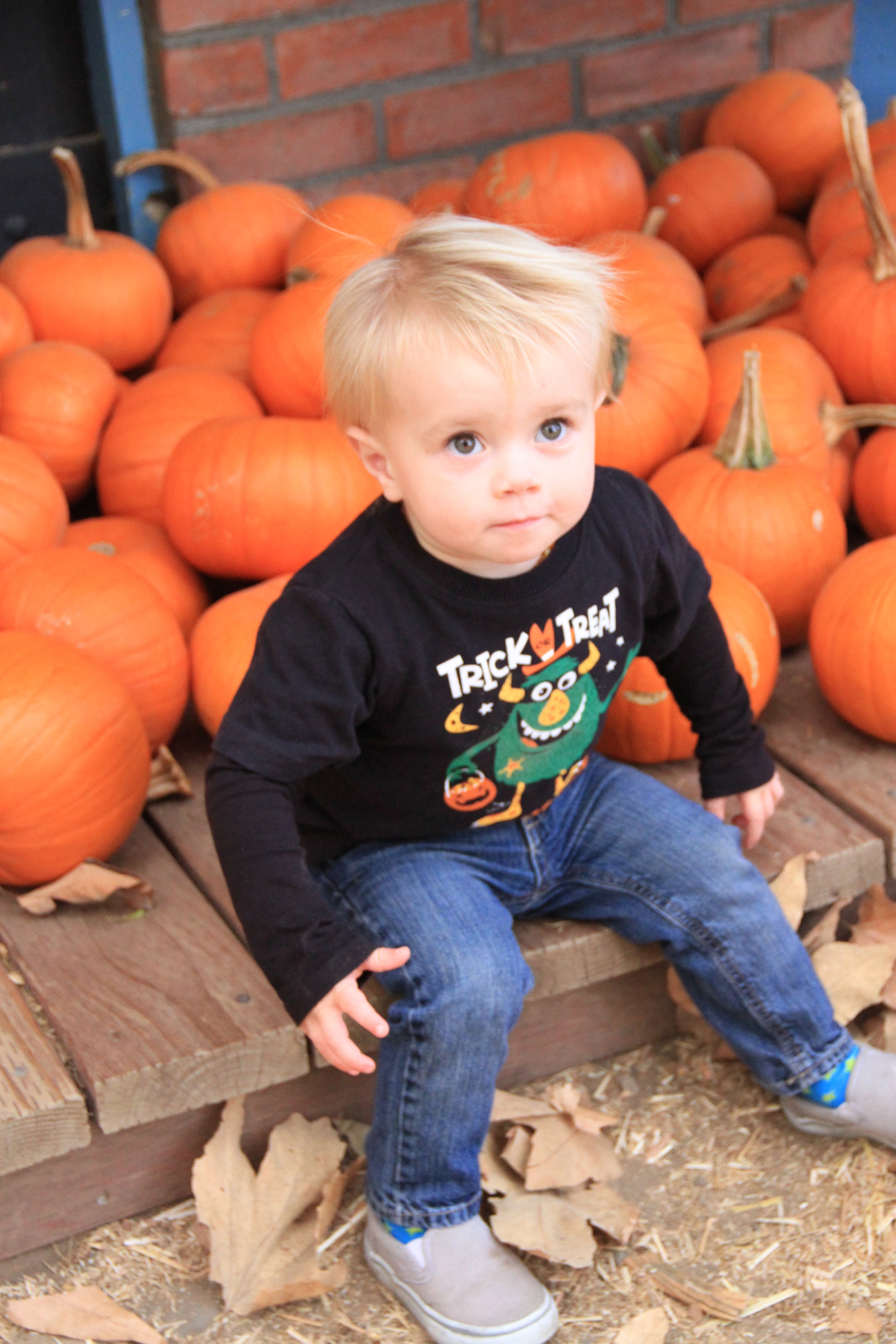 As you all know, Halloween is my favorite holiday. Although I’m warming up to Christmas…but anyway…I have been way too busy to really prepare like I normally would for this great holiday, and we barely made it to the pumpkin patch! So sad! So to start your day off right, here is our trip to the pumpkin patch with the little monster.