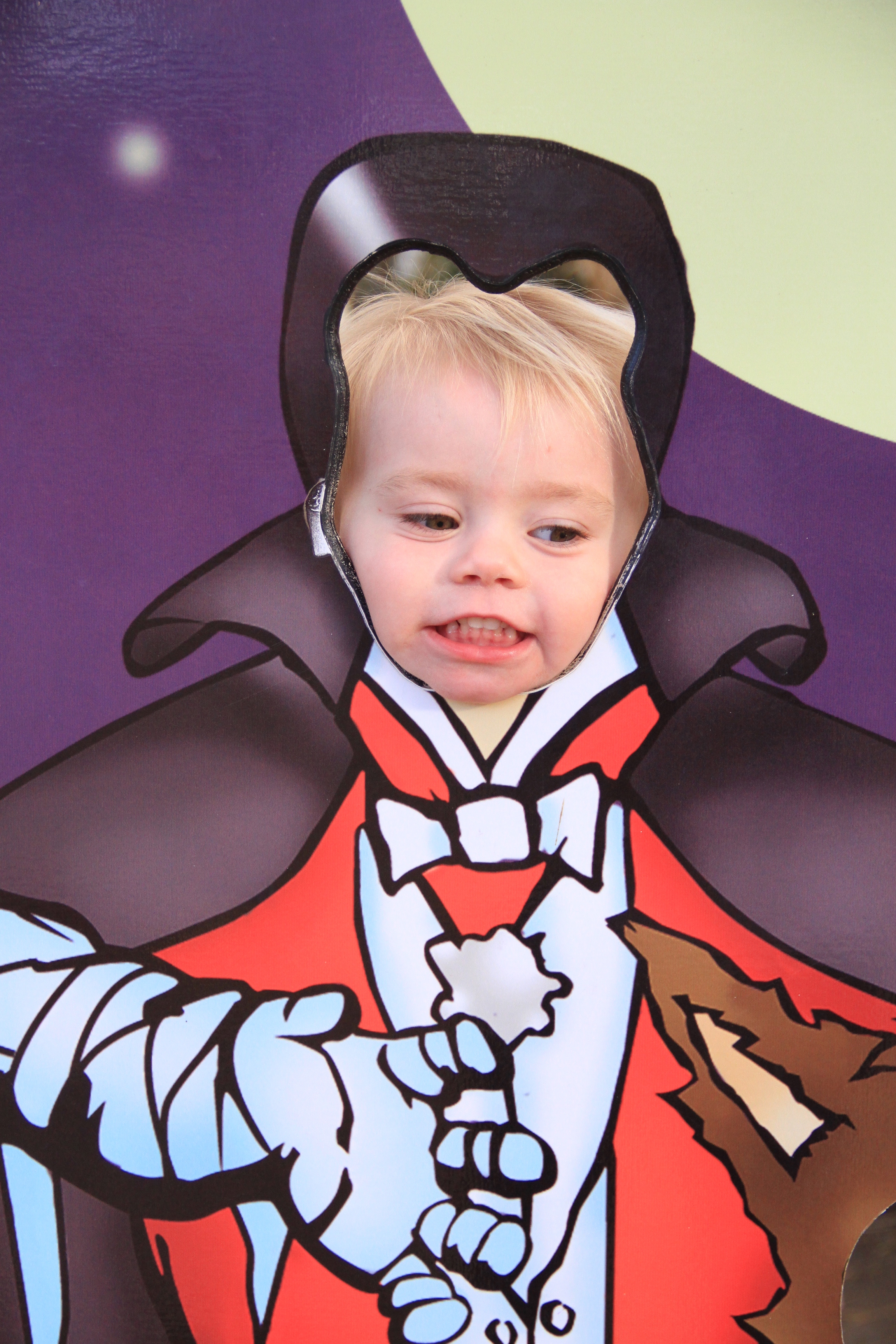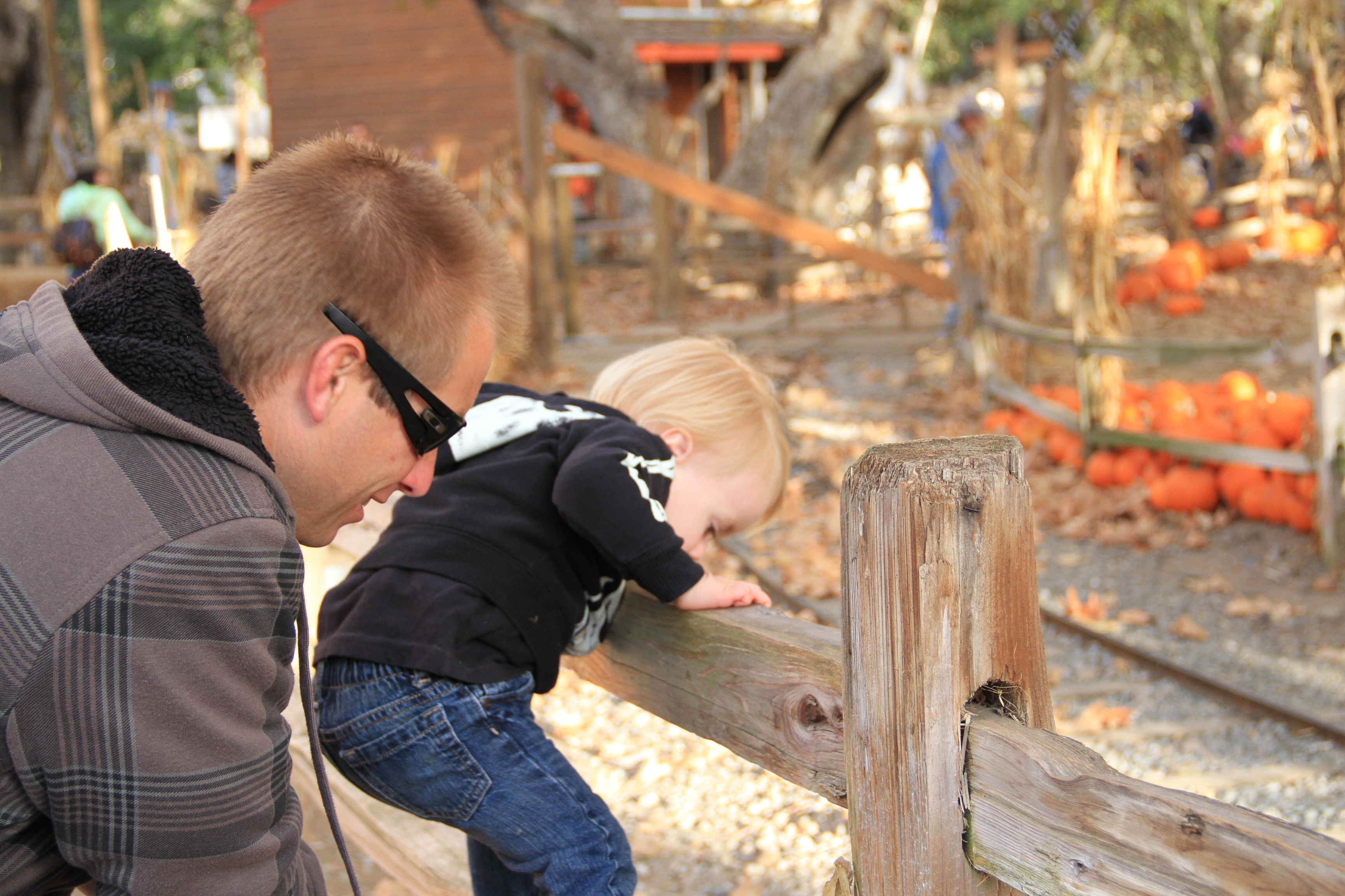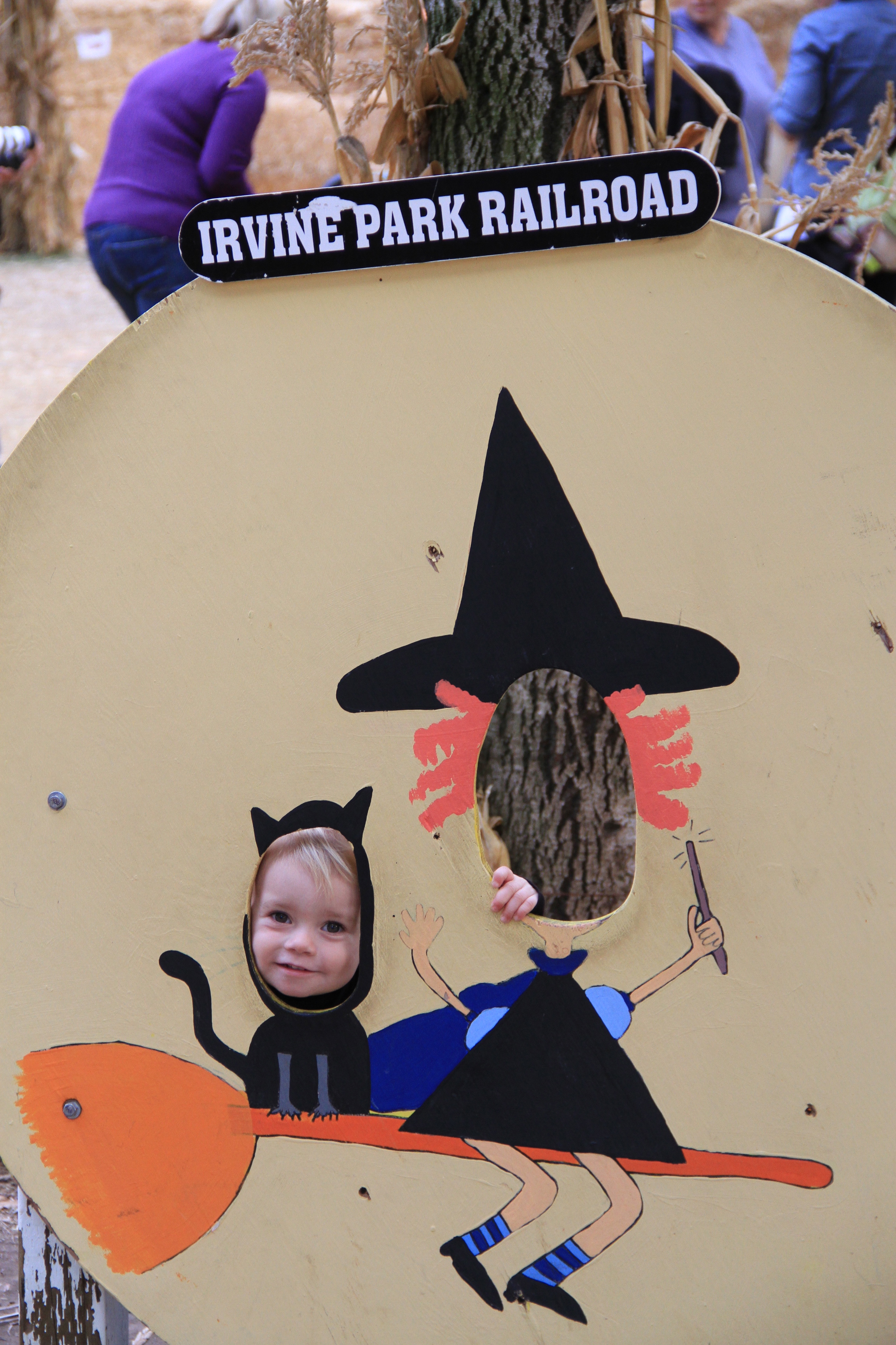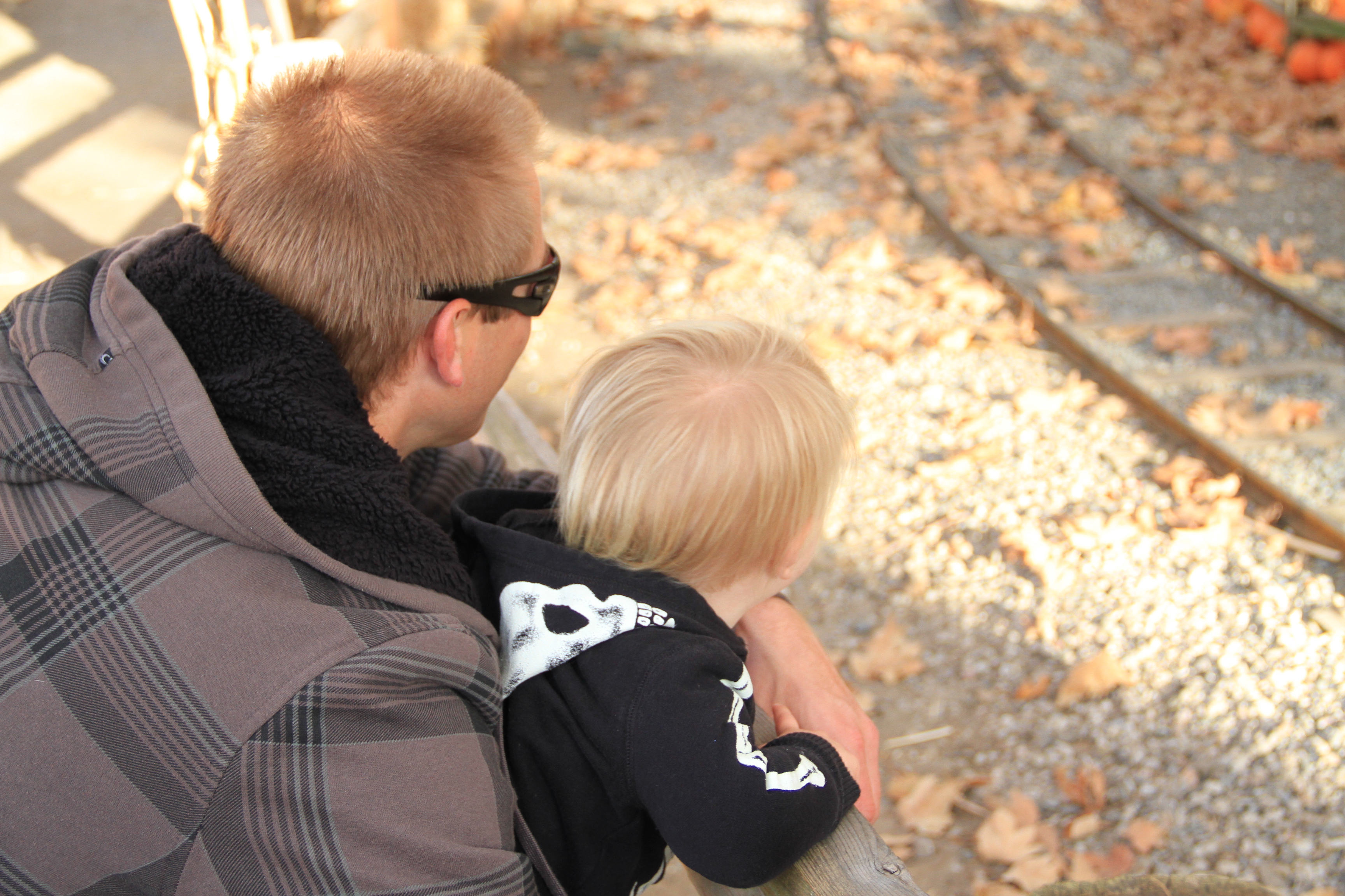 We visited this pumpkin patch last year as well. Click here to see those photos. It was a very different experience this year. Last year our bald baby was crawling, not walking, and was not very interested in the pumpkin patch. This year, Jacob was running and yelling “pumkys!” He liked picking them up and moving them together (naturally, as he is Josh’s child, he would organize them). He LOVED putting his face in the holes of the wooden picture spots (what are those called?). He would run enthusiastically to them and stick his little face in whichever he could reach. He climbed on hay stacks, he yelled enthusiastically for the train, even saying “alllll aboard!”