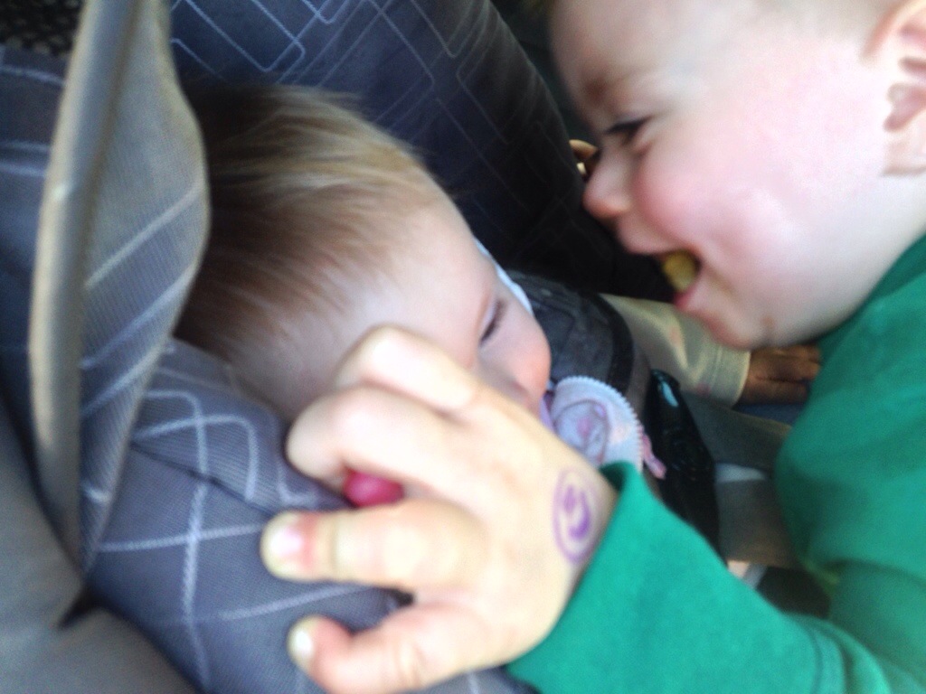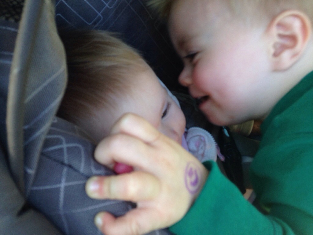 Jacob loves his cousin Alexis, and it’s a beautiful sight. Here he is kissing her with a candy corn in his mouth, which then dropped onto Alexis.
