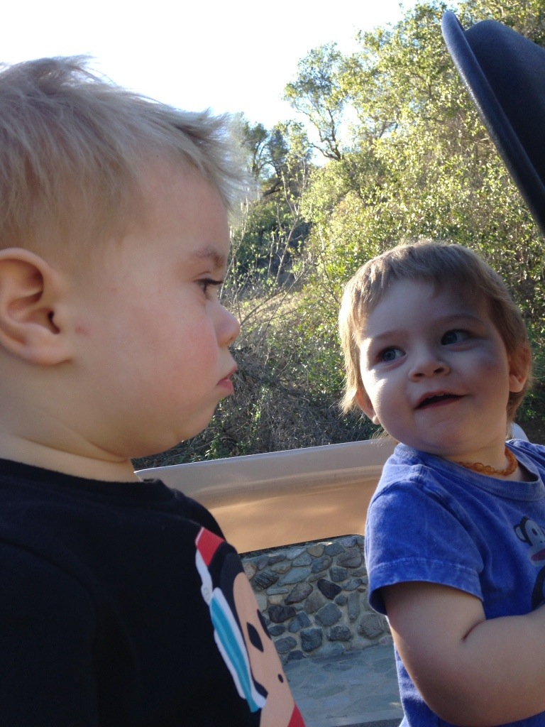 Hiking and then park time on a very warm, very windy January day.