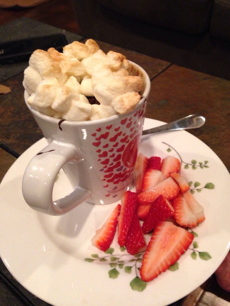 And for dessert, hot chocolate cake served in a mug with marshmallows of course! (This was basically a flourless