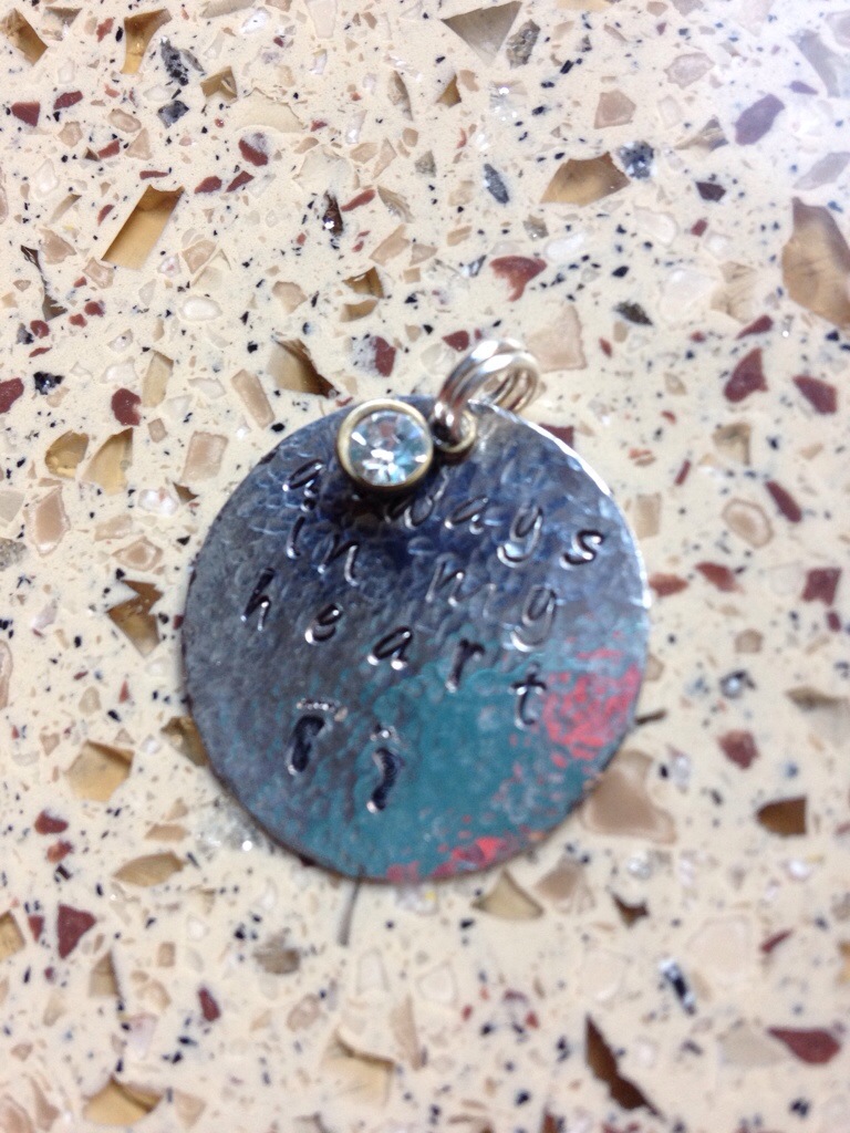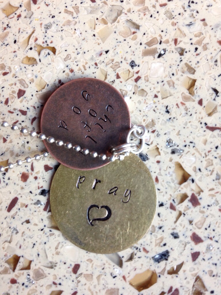 As you can see, my “child of God” message was part of the learning process, as parts of the letters are almost too faint to read. Thankfully, I think it goes with the overall distressed look of the metal and doesn’t bother me.
