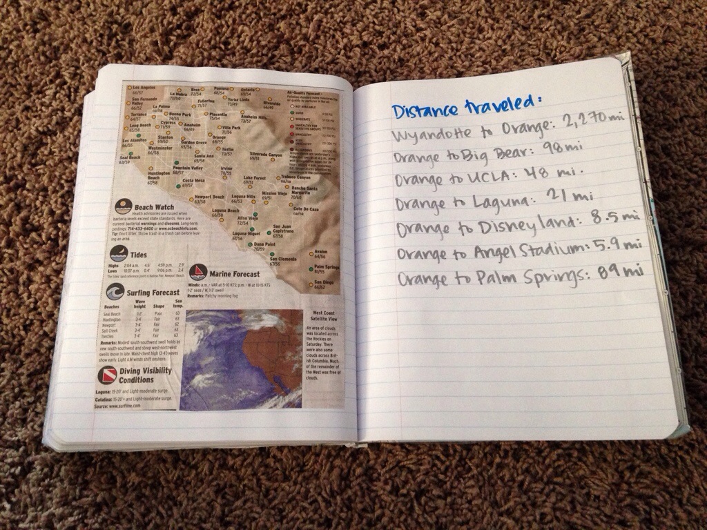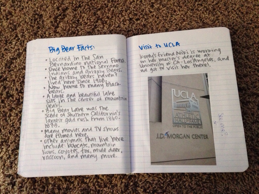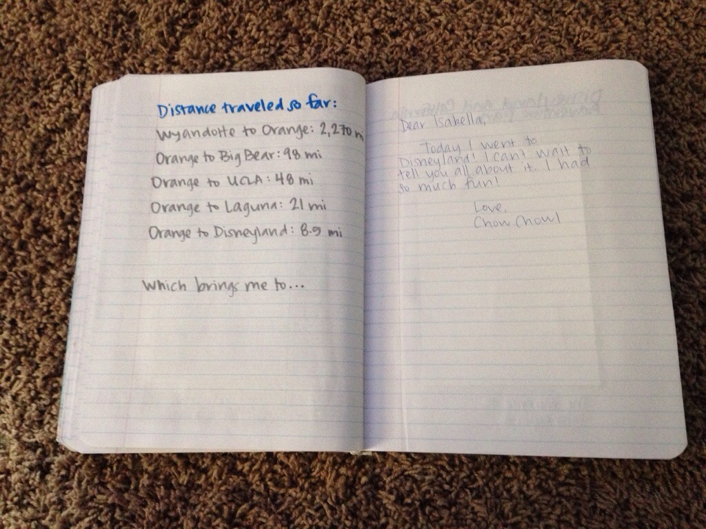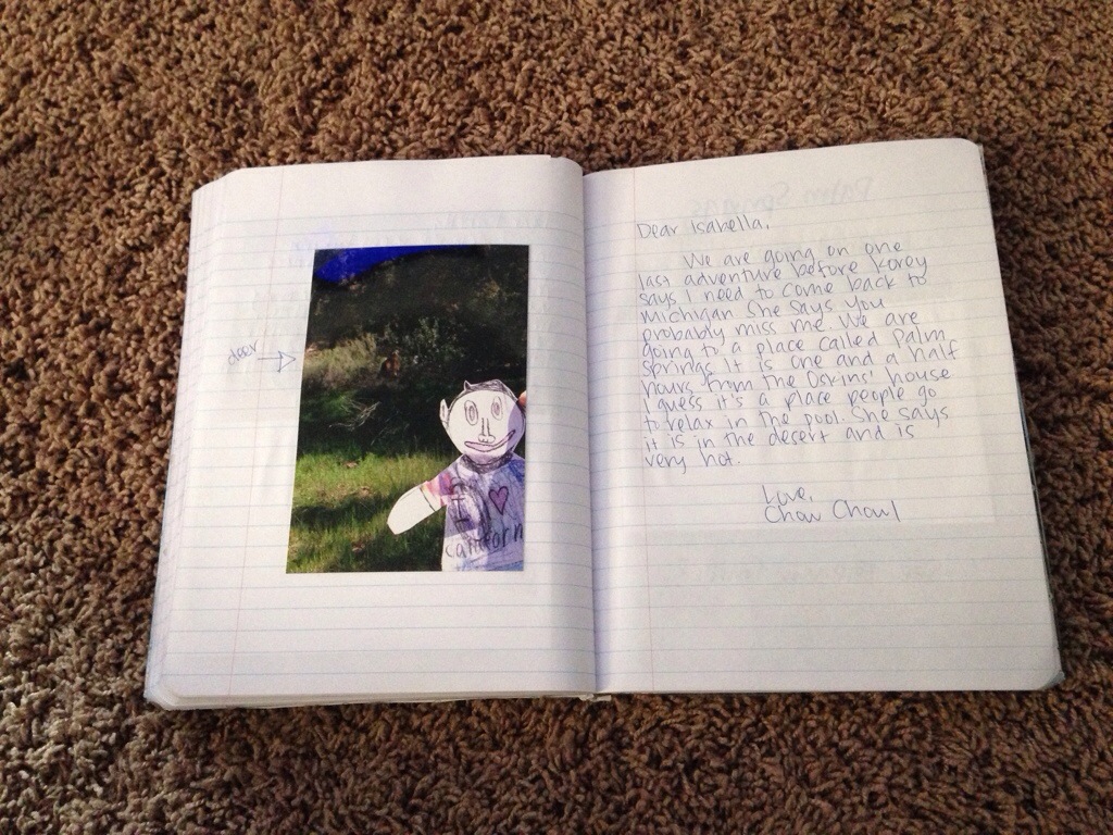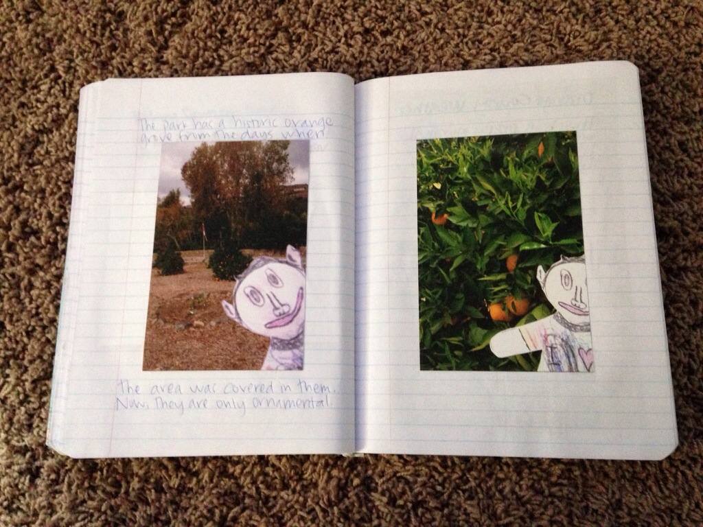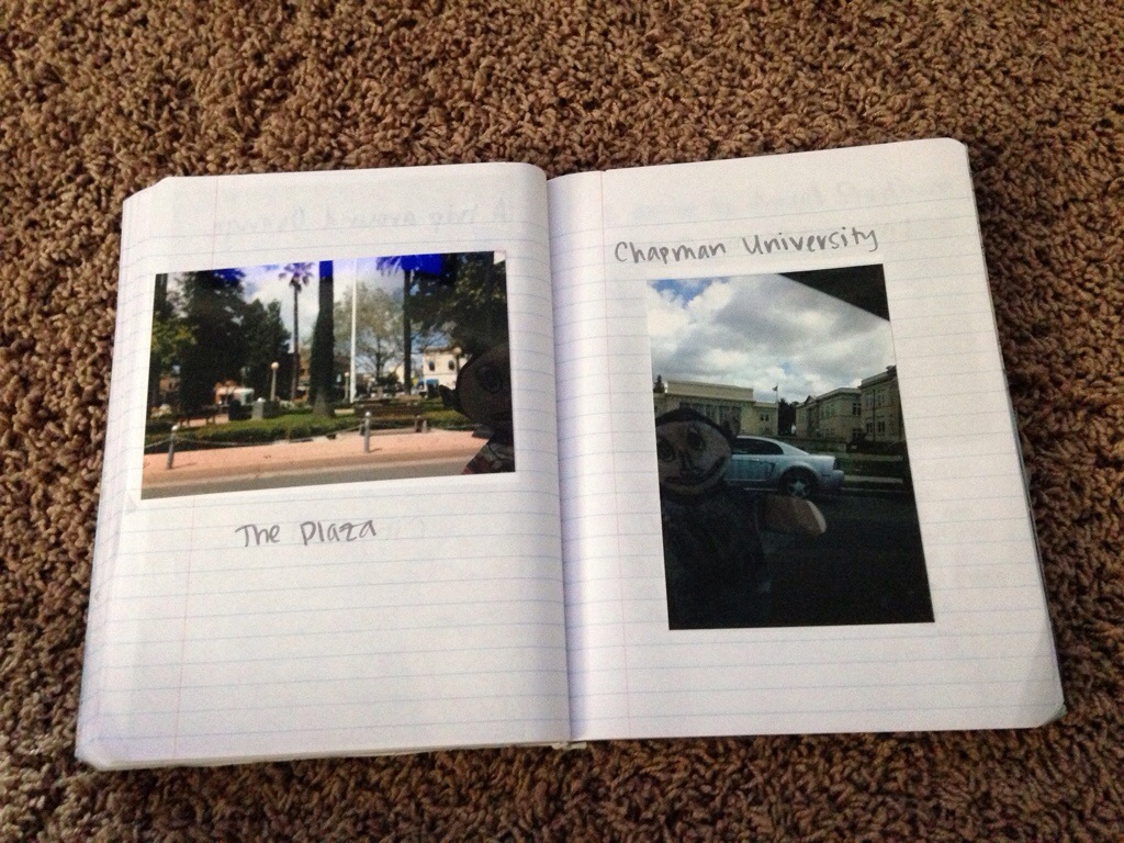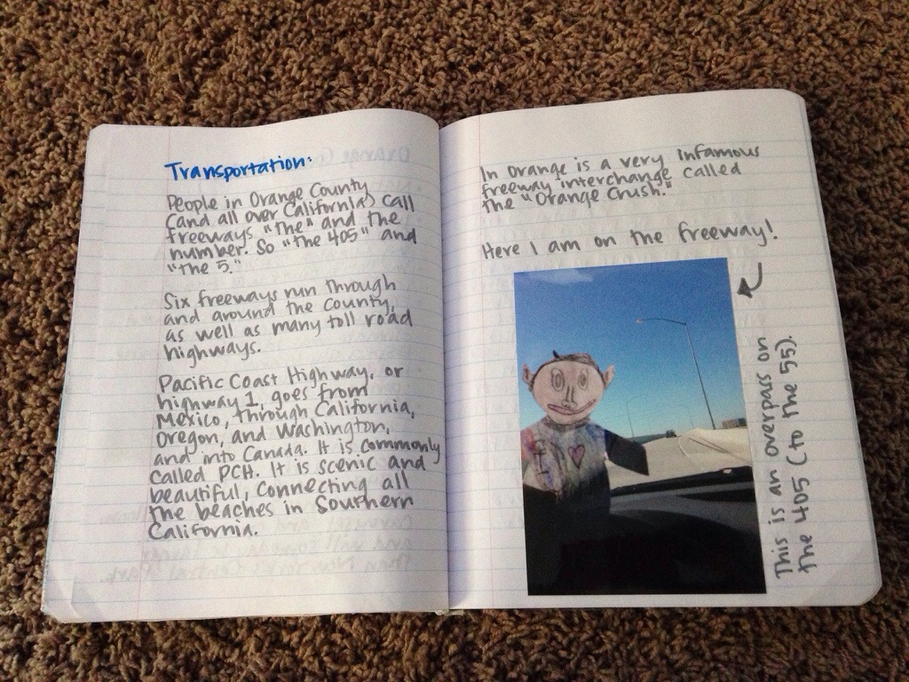 My advice: make several copies of Stanley as he gets pretty abused along the way. I had four Stanleys. 🙂 Buy a composition book to make the journal. I wrapped mine with a “recycled” map of California. Make yourself a kit for Stanley: place him in a sandwich bag along with a roll of scotch tape. That way he can be stuck to things. He will move quite a bit in the wind, so tape can help him stick to your hand also.