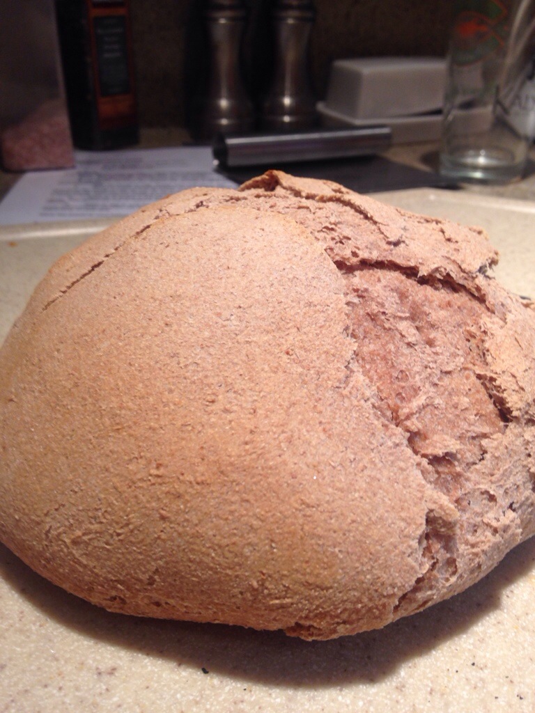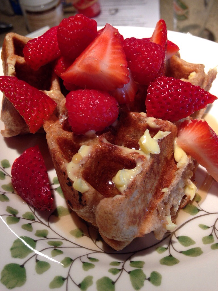 Oh, and sourdough starter. Which is flour and water…and yeast. The invisible ingredient you can get from the sky. My friend and neighbor Breanne gave me some of her starter, which is made from sprouted grain flour. Sprouted grain flour is very low in gluten and is basically a vegetable since it is made from grain that has been sprouted to become tiny plants, then ground into flour. I fed the starter for three days before making bread, and used the leftover starter to make the waffle shown above. It was the most delicious thing I’ve ever eaten!! So delicious!! I had really high hopes for the bread after that (I was initially worried because I usually eat white flour sourdough.) The bread turned out, but it was very sour and very…just different tasting. I think I would have to get accustomed to it.