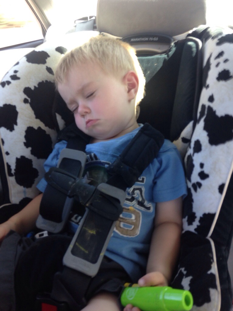 On Friday, Jacob and I were driving and he fell asleep with a bottle of water in his hand. He dropped it in his sleep, and was startled awake for a minute–just long enough to make a very sad expression and and fall back asleep with that look on his face. So, so sad. 🙂