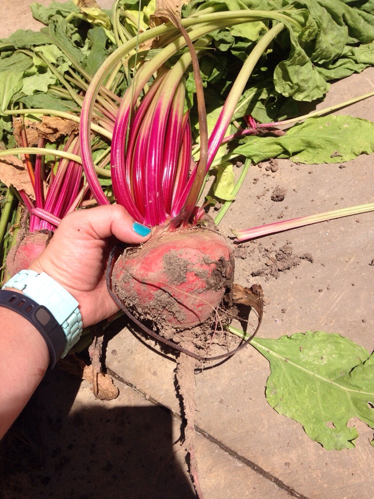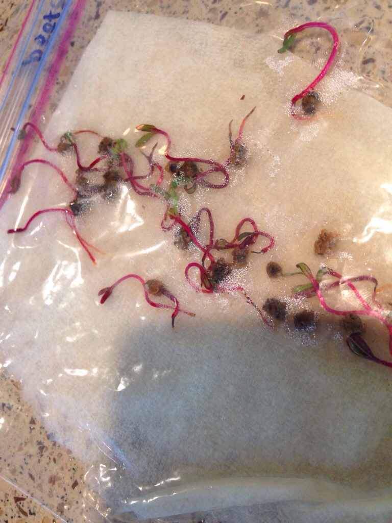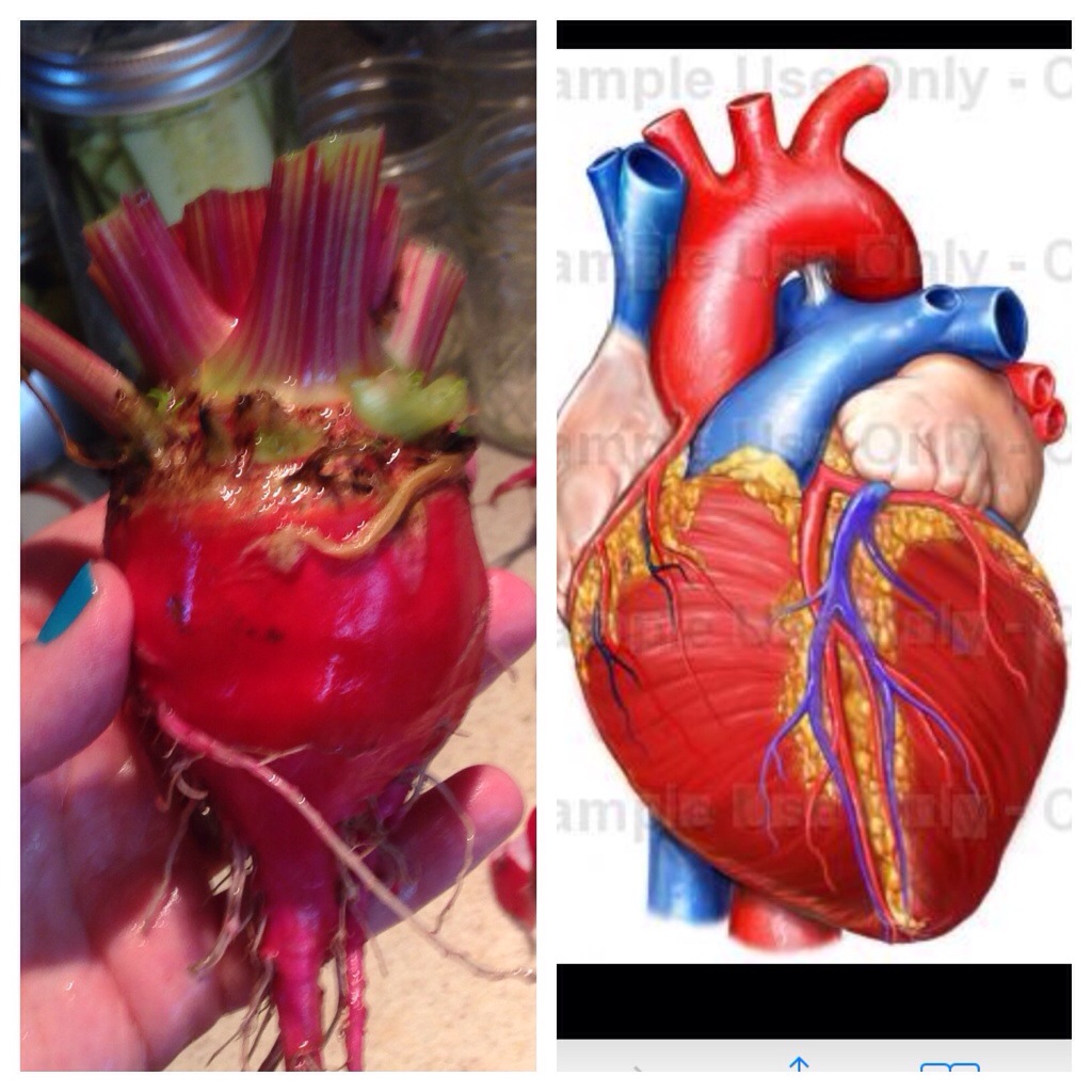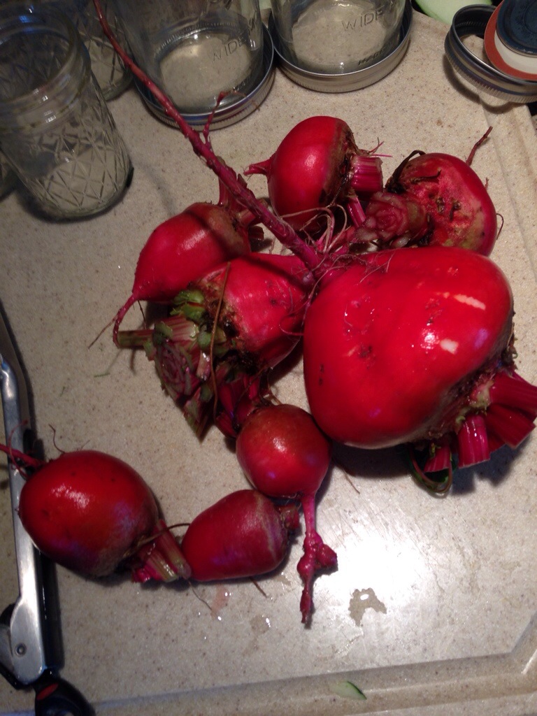 Beets are good for your heart, and you can tell because they look like your heart. Freaky! This is the beet life cycle at my house: from germinating seed to plant, washed and trimmed, to pickled. Yum!