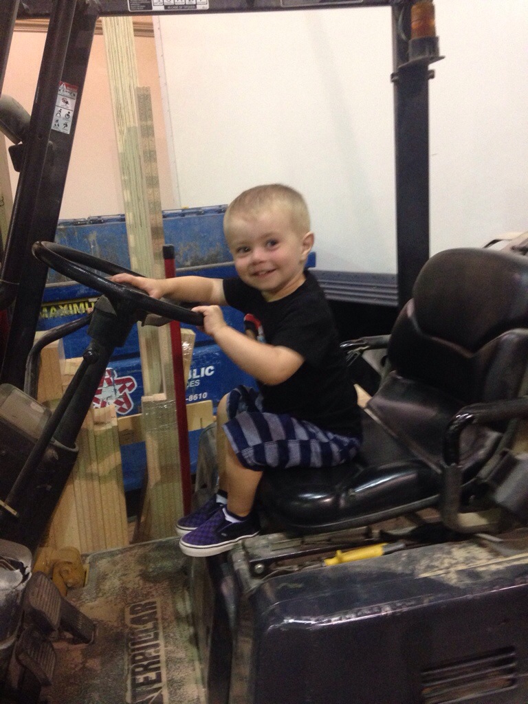 I’ve been wanting to make these for a while, but boy were they difficult! My helpful assistants, Josh and Jacob, helped me flatten the spoons with a forklift!