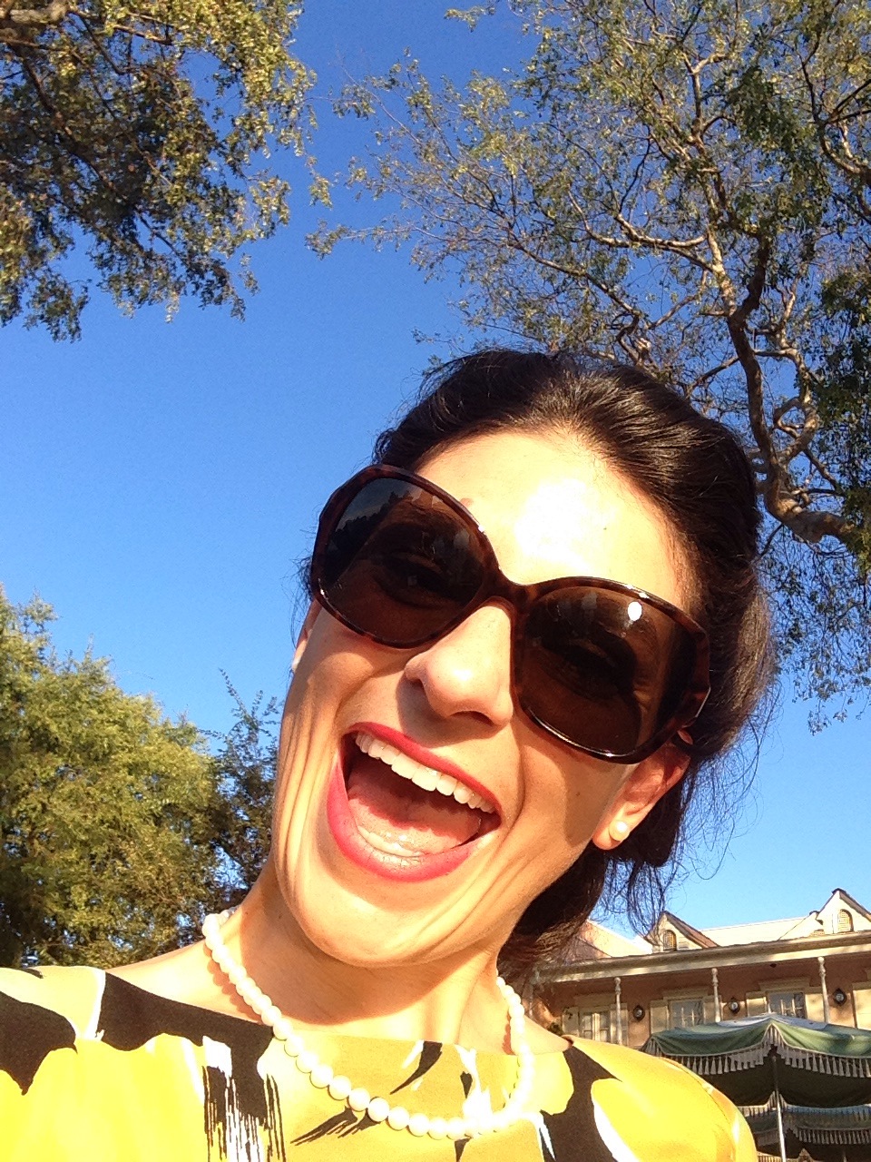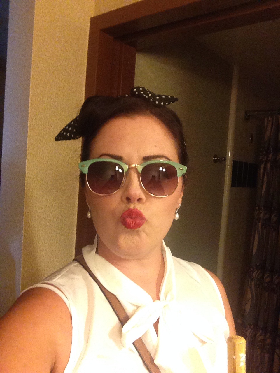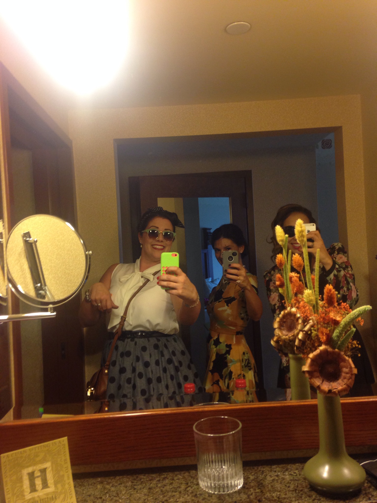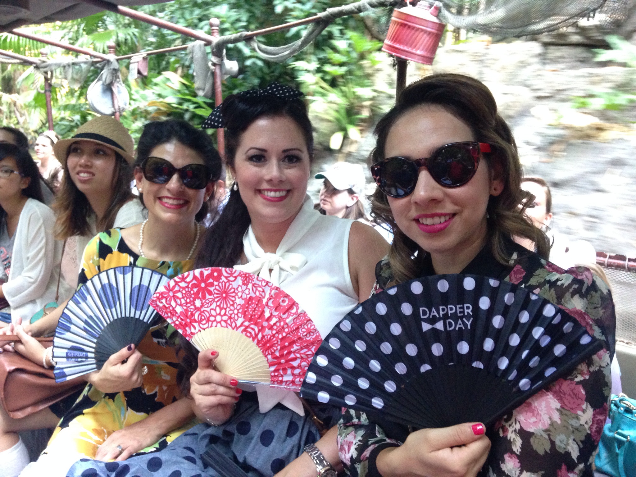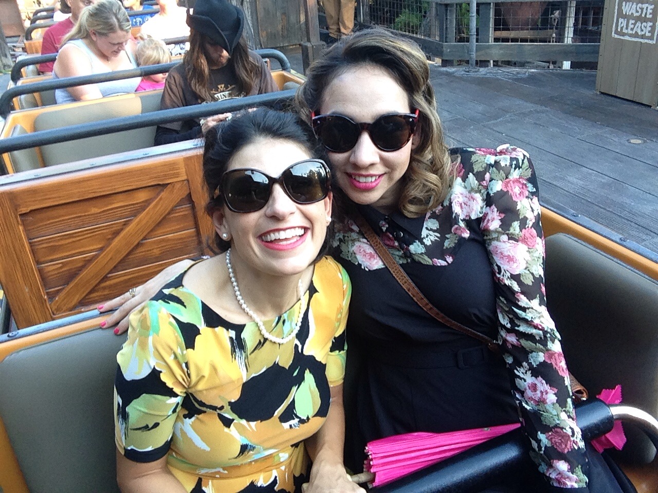 Dapper Day is an unofficial Disneyland celebration day in which people dress up, usually vintage, and go to the park. It started to honor Walt Disney’s original concept drawings of Disneyland and how he imagined guests dressing. It has expanded into anything dressy/and era of vintage/Disneybounding. Disneybounding is where you dress in something inspired by a character, but more of an homage, not the costume per say. So maybe you wear a blue skirt and white top that any contemporary store would sell with white knee socks and a black headband as a sort of tribute to Alice in Wonderland. Anyway, last year was my first foray into the wonderful holiday and I loved it. (It’s twice a year at Disneyland, but my pass is only valid Monday through Friday, so I cannot attend the spring event which is on a Sunday.) The September event is an evening one, and it is so fun and cute! I went with buddies Samantha and Kasi and we stayed at the Grand Californian hotel. The hotel had fun Dapper events like a vintage pop-up shop and artists making beautiful fashion sketches of you in your attire. It seemed like half the park was dressed up this year! It was really fun. We were stopped a few times by people asking what in the world was going on with the clothes. 🙂