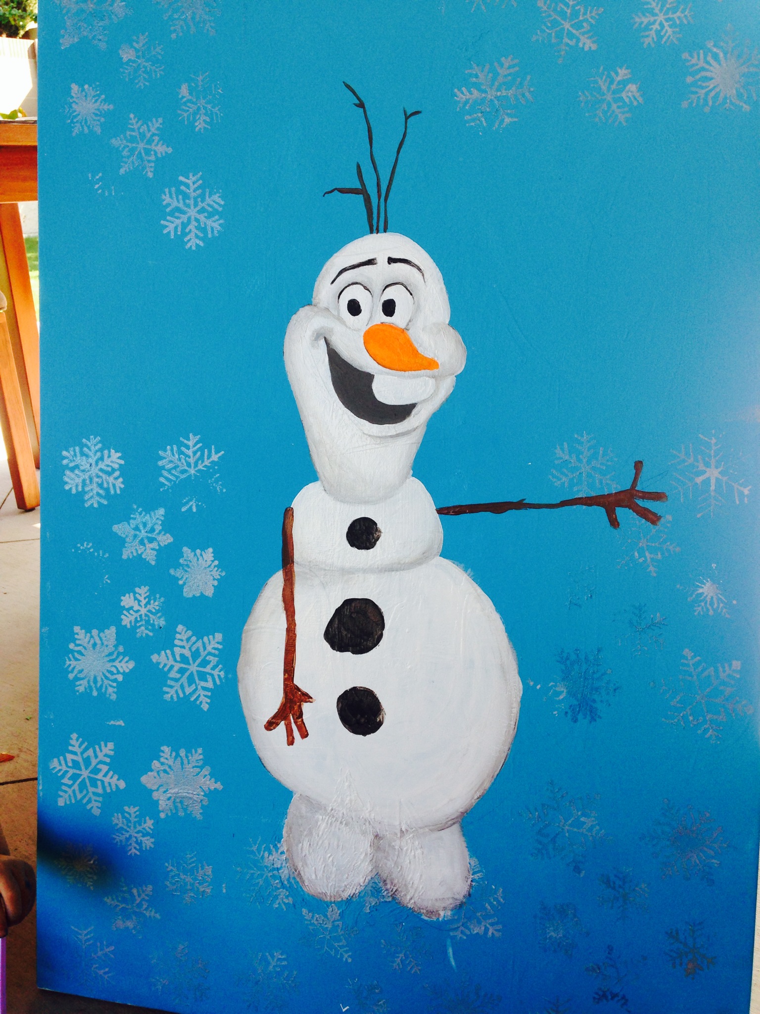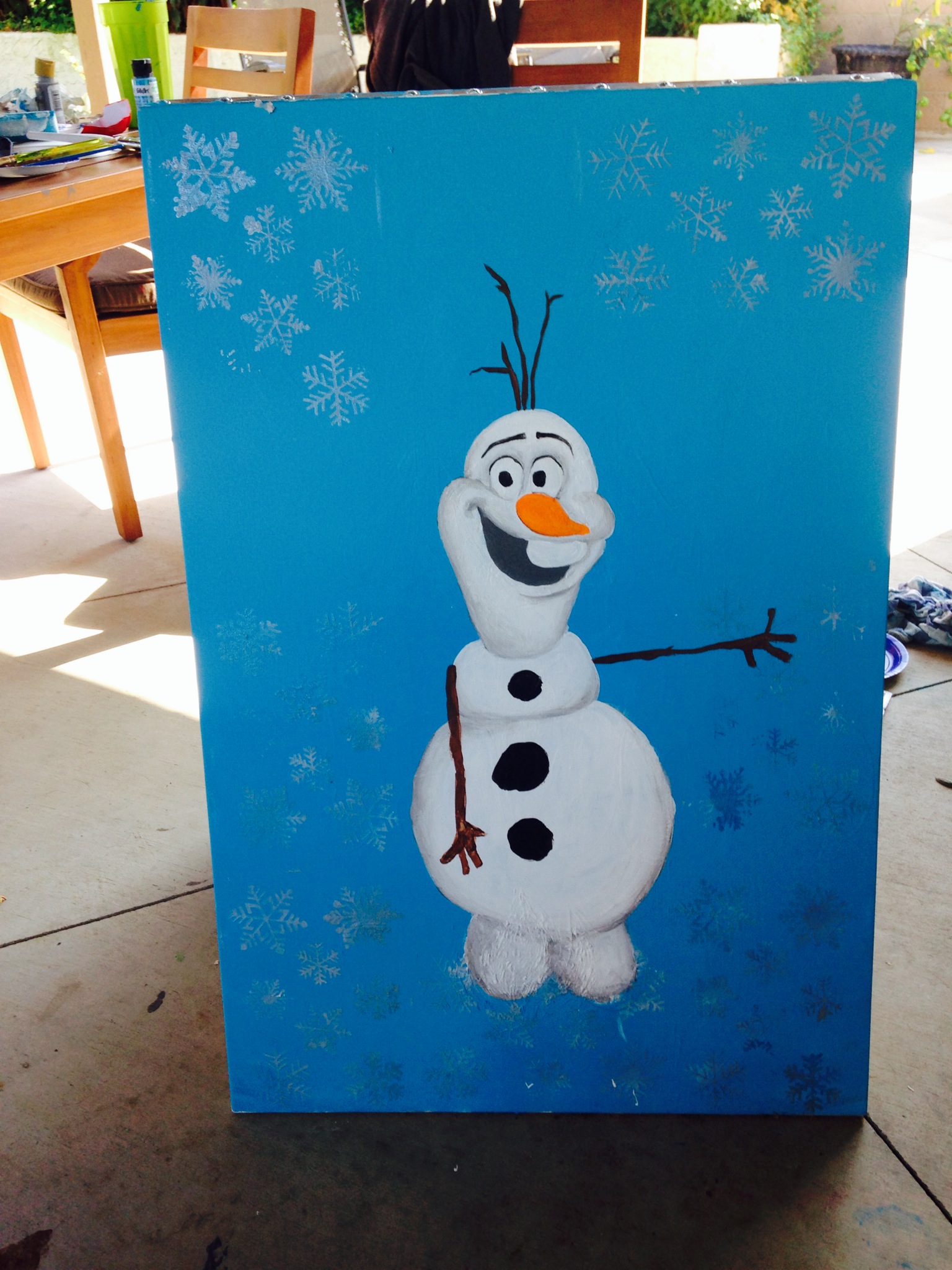 My friend Lisa and I like to decorate this entrance sign for each other’s parties. Last year she did such a great job for Jacob’s camping party. For Cassidy’s third birthday, I transformed it into a Frozen sign, adorned with Olaf (“Snowlof” to Jacob).