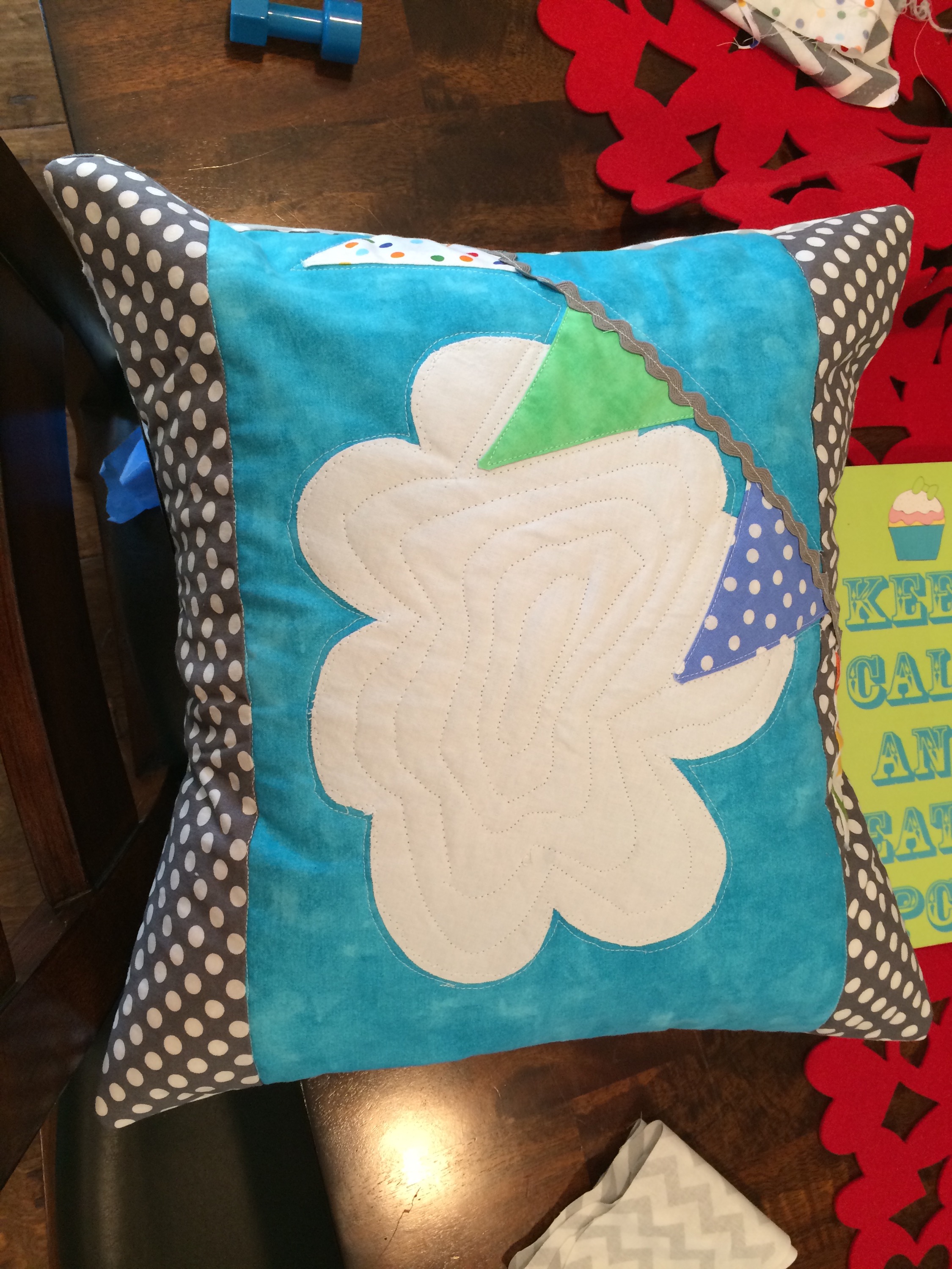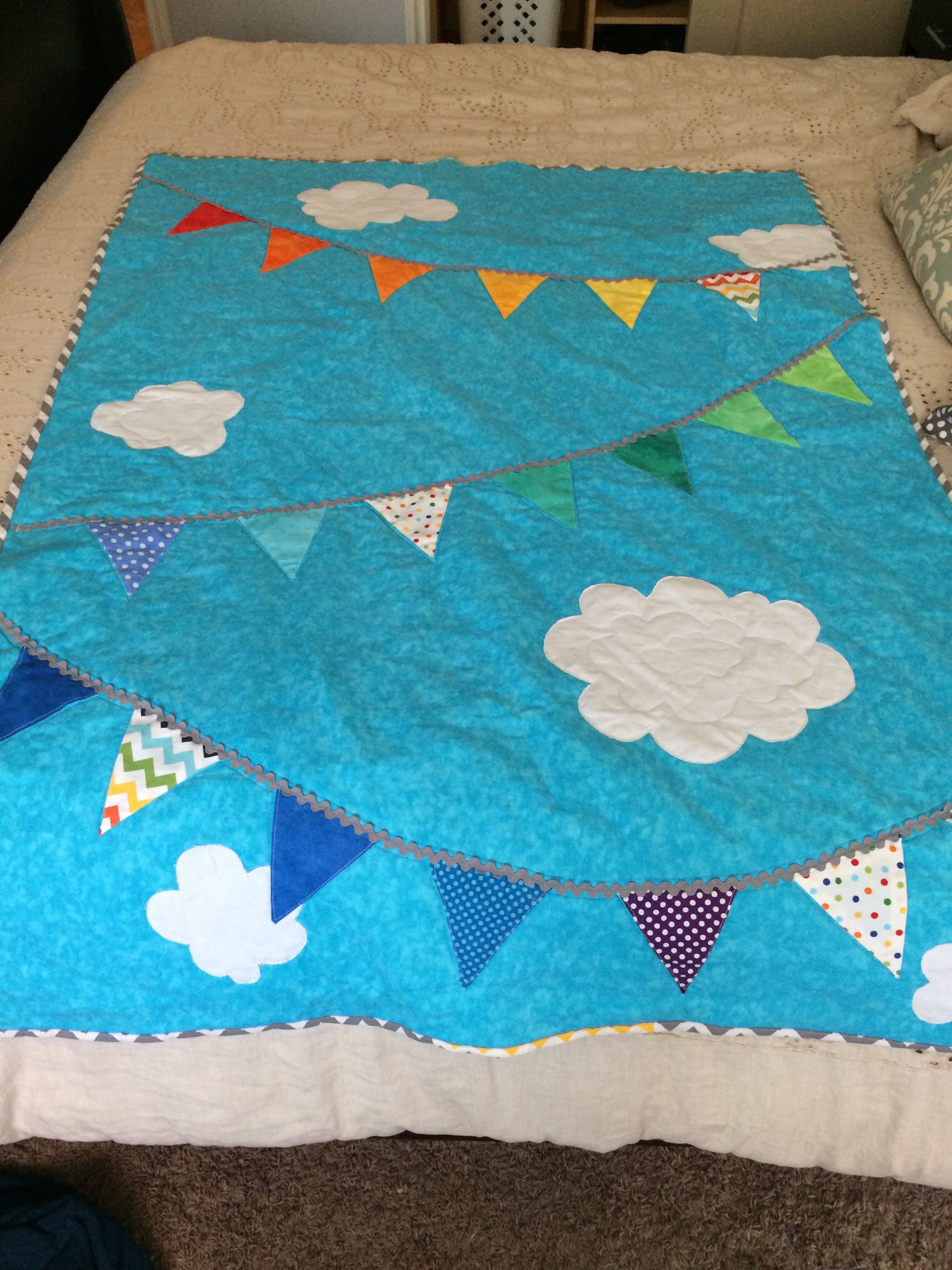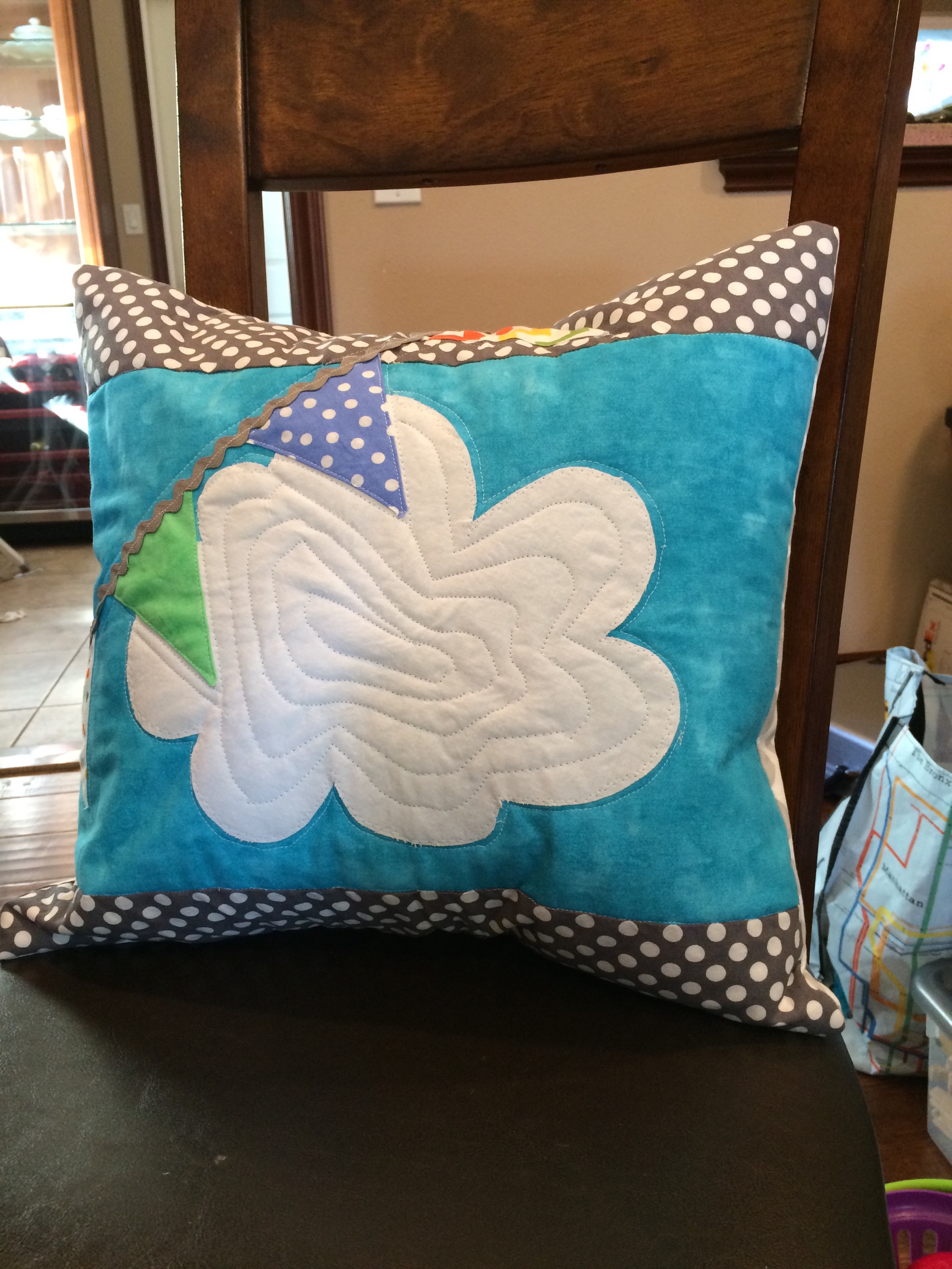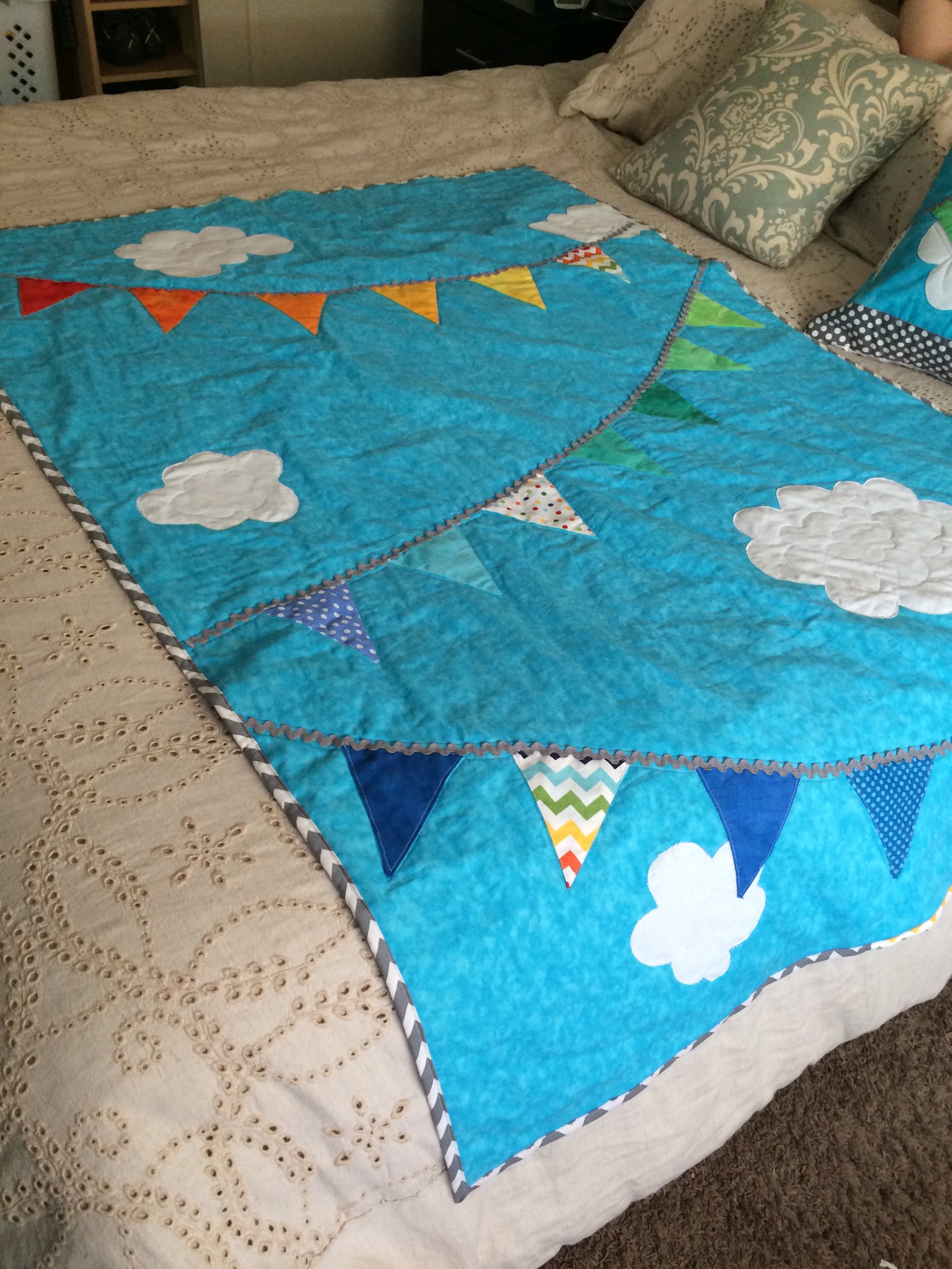 Baby O2’s quilt and matching pillow are done! I’ll try to take some nicer pictures, but here’s what I have for now.