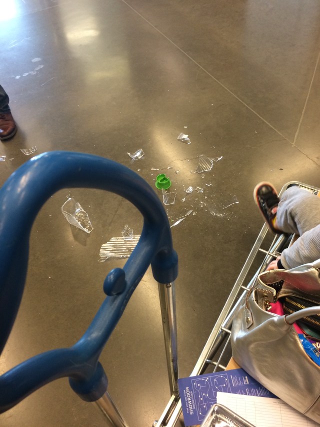 Of course, nothing is ever easy. Right after I took this picture, he knocked over the glass pitcher that I had bought for iced tea (great because it’s square–how handy is that in the fridge??) and it broke all over the ground.
