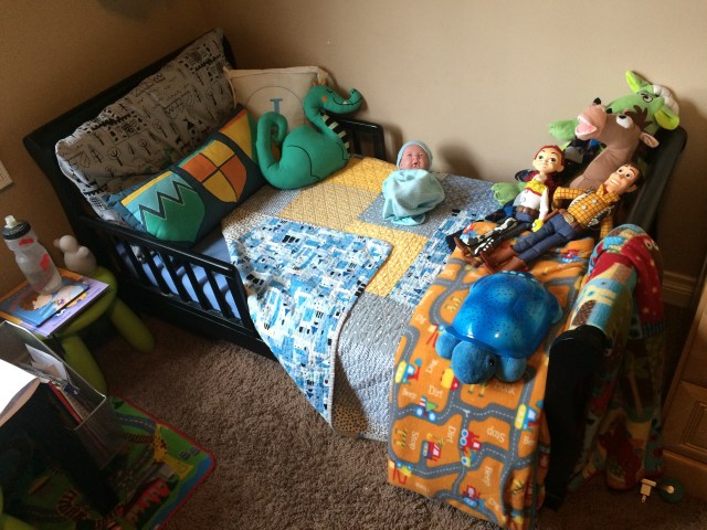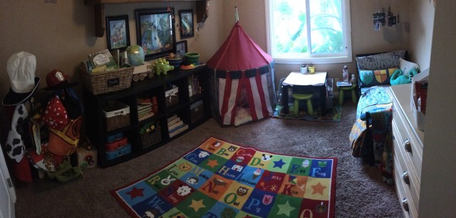 It has been a while since the last update to Jacob’s room, and the storage situation just wasn’t working out for us. Today, while josh had a bike race, Jacob and I transformed his room yet again.