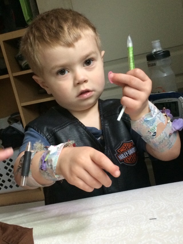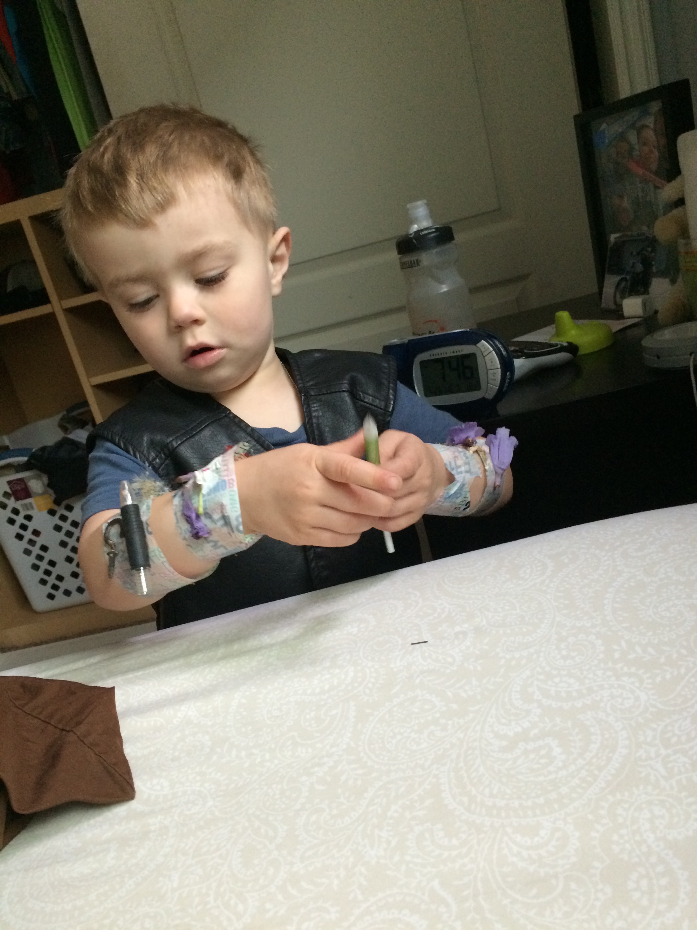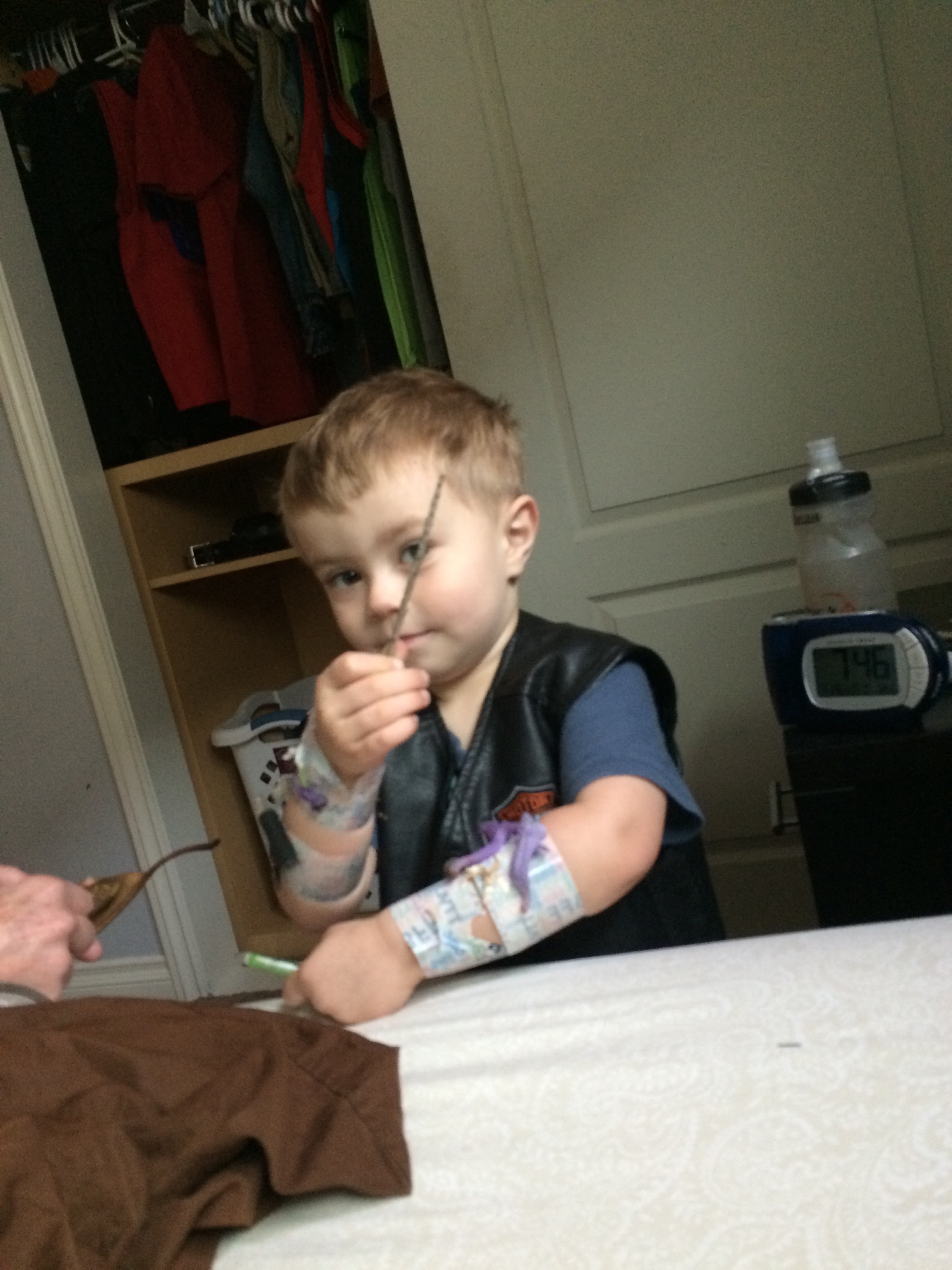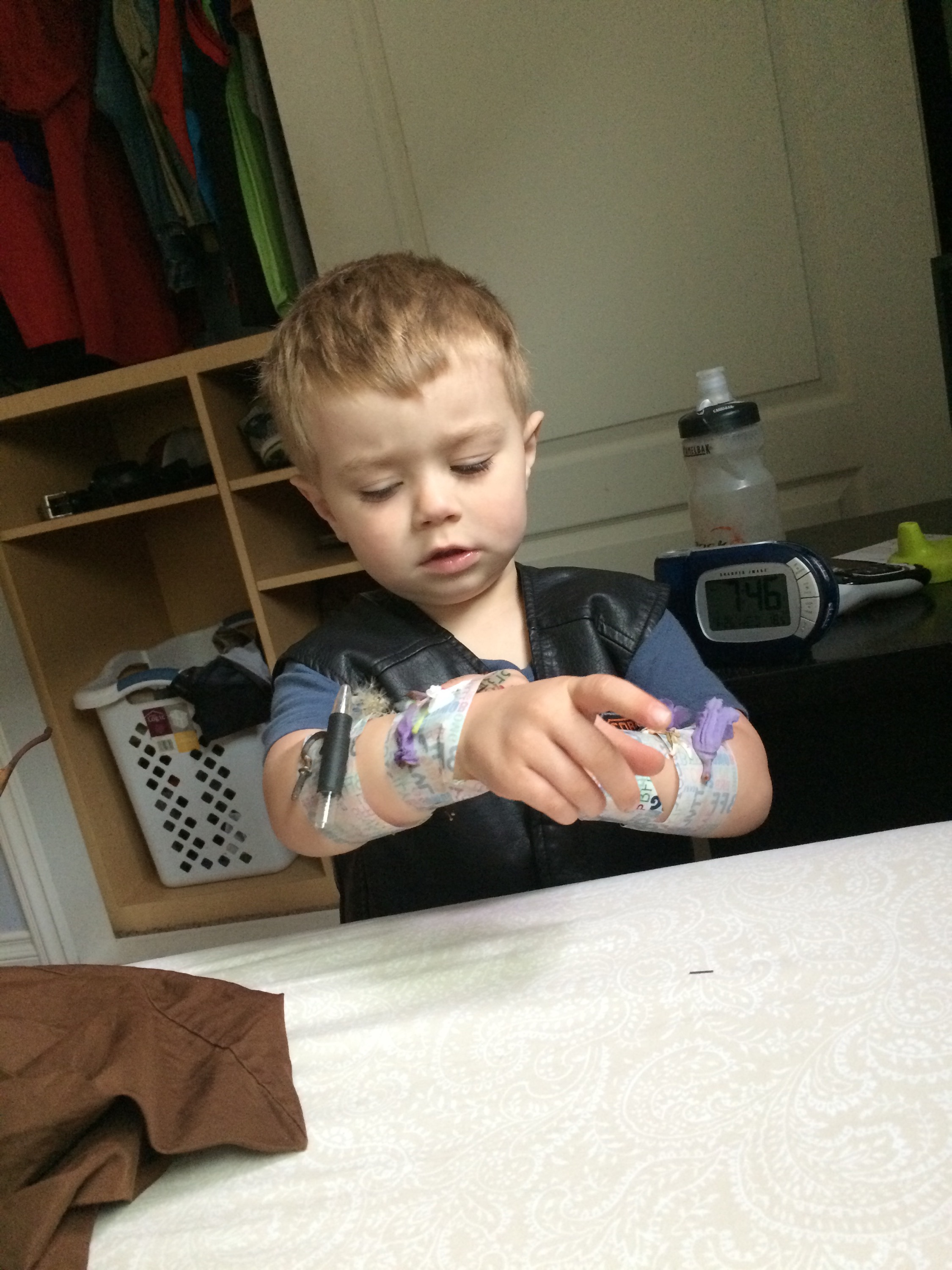 Jacob had a fun “gaventure” yesterday with Grammie! She had this wonderful idea to make sticky bracelets (tape turned right-side in) for Jacob to stick his treasures to. If you don’t know any three-year-olds right now, every wall is a treasure hunt, and treasures are anything interesting you find on the ground. Things you and I (“gadults”) would pay no mind to. It’s so fascinating to see the wonder in these everyday items.