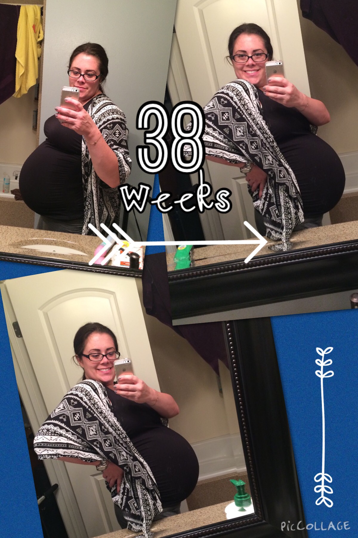 Friday was the 38 week mark! I’m never sure how to say in months how pregnant I am, because 40 weeks is 10 months. I think I’m now 9.5 months, and then people think I am overdue. Anyway, I think it’s pretty easy to see that 38 weeks is the end end end. March of Dimes says that babies should be born ideally after 39 weeks and I am really close. Of course, if you’ve talked to me lately, you know I want baby to stay in for a few more weeks–as many possible! My doctor, along with everyone I talk to, laughs that I am the only pregnant woman to want more time being pregnant. I just want to be walking!!