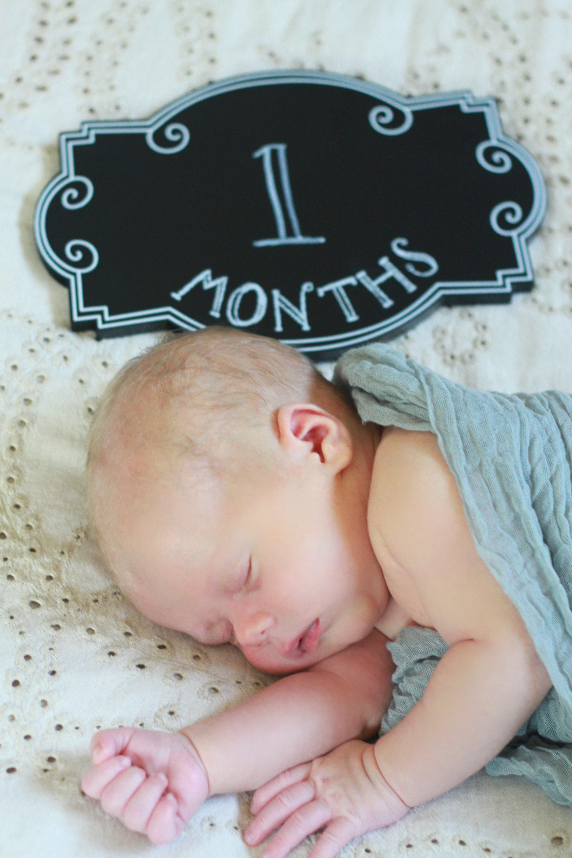 Can you believe a month has gone by? I can’t. While he’s still itty-bitty and new, I am very conscious of the time slipping through the hourglass right now. They grow so fast. We all know it, but it’s never been more true than in the first year with your baby. I clutch desperately at it, trying to hold onto whatever little scrap of the here and now that I can, but time marches on without me. I capture pictures, probably even more than the average parent, I take video, and I focus my eyes on this little one and try to will my brain to remember it all. His smell, his sweet sounds, the feel of his small body curled on my chest, his tiny fingers grasping at my skin…but I know that there is only so much my brain can hold. I want to bottle him up, every ounce of his sweetness, to pull it out later and just bask in it, but I know I can’t, and that is what makes this time so special. It is precious and fleeting. Each day brings changes and growth, which is beautiful and bittersweet.