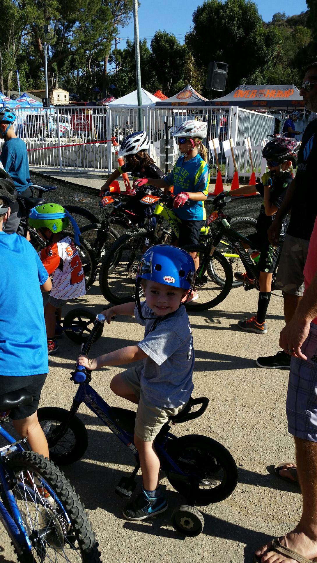 Jacob raced in his first ever bike race on Tuesday’s Over the Hump at Irvine Lake. He was so cute and focused. You could tell he was concentrating, but when he heard me yell his name, he looked at me and smiled. I loved seeing the different types of bikes and cute helmets the kids were sporting. His category is 2-5 years old.