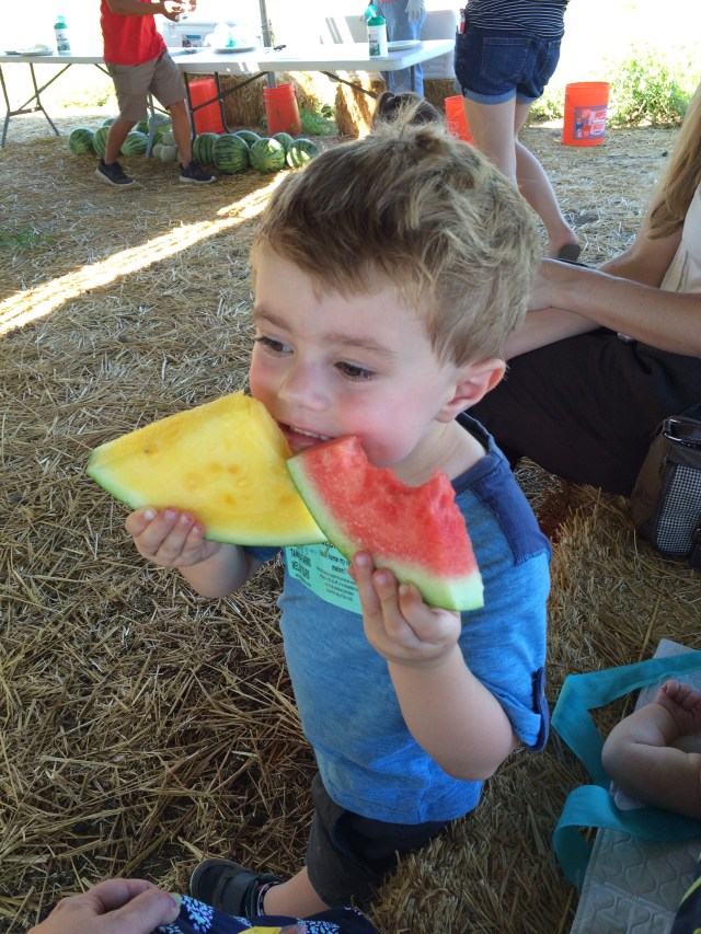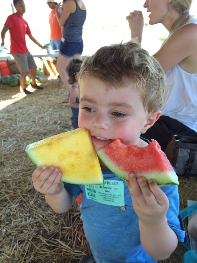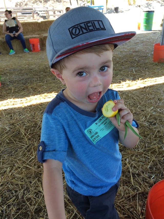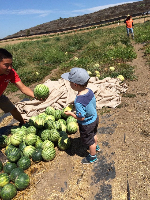 We toured Tanaka Farms in Irvine, CA for their annual Watermelon Tour. Jacob loved it! He has been really excited about growing vegetables in our yard, and seeing things like bell pepper plants and rows of carrots was exciting to him it was a fun time, and I definitely recommend a visit, especially with kids!