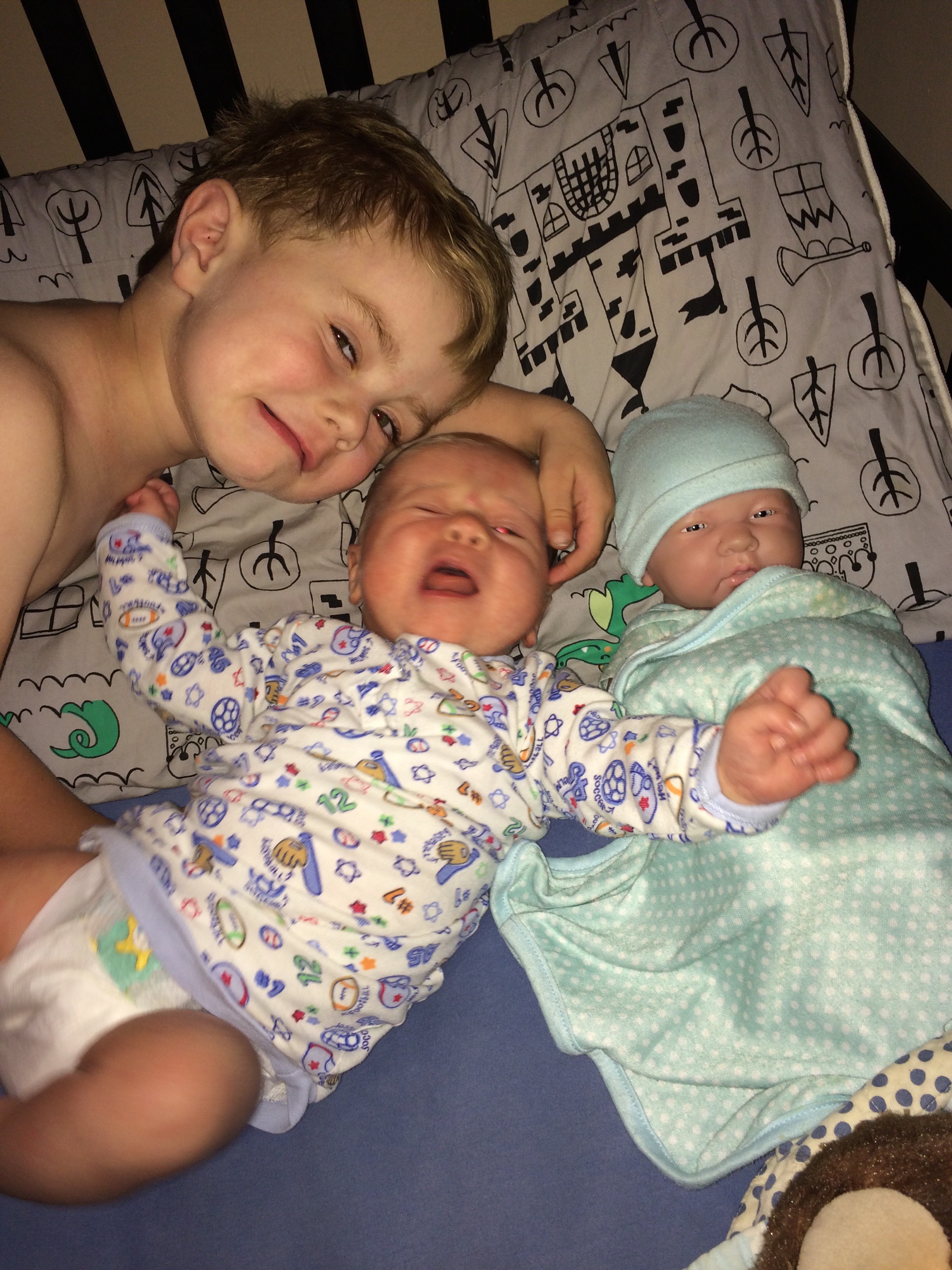 jackson tried out bug brother’s bed. He looked a lot like Jacob’s “baby brother doll” — but he didn’t enjoy snuggling as much as the doll…