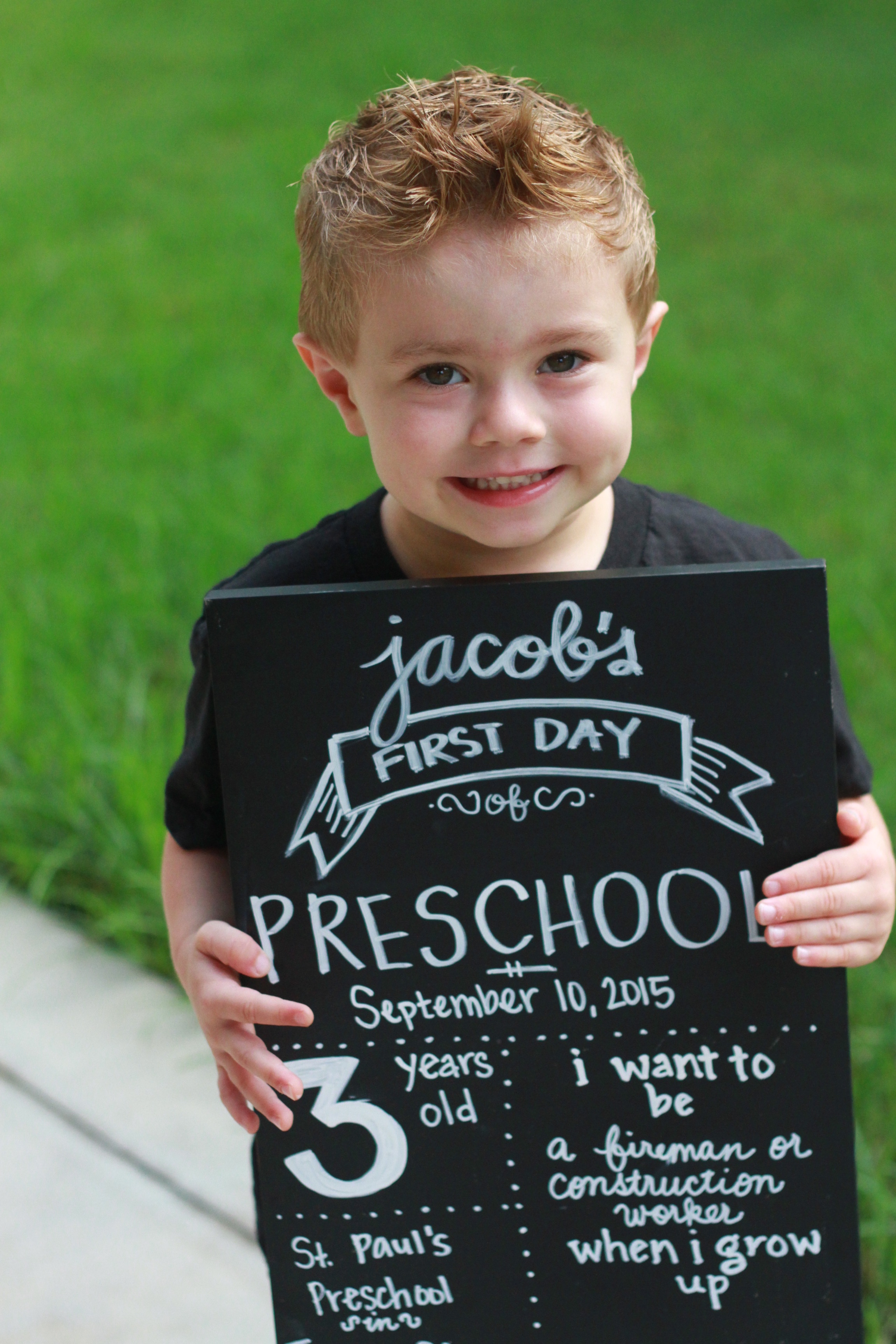 My little boy started school–real school! He goes Tuesdays and Thursdays to St. Paul’s Episcopalian Preschool. It’s the same school we attended last year for parent-and-me, but now he goes all by himself!