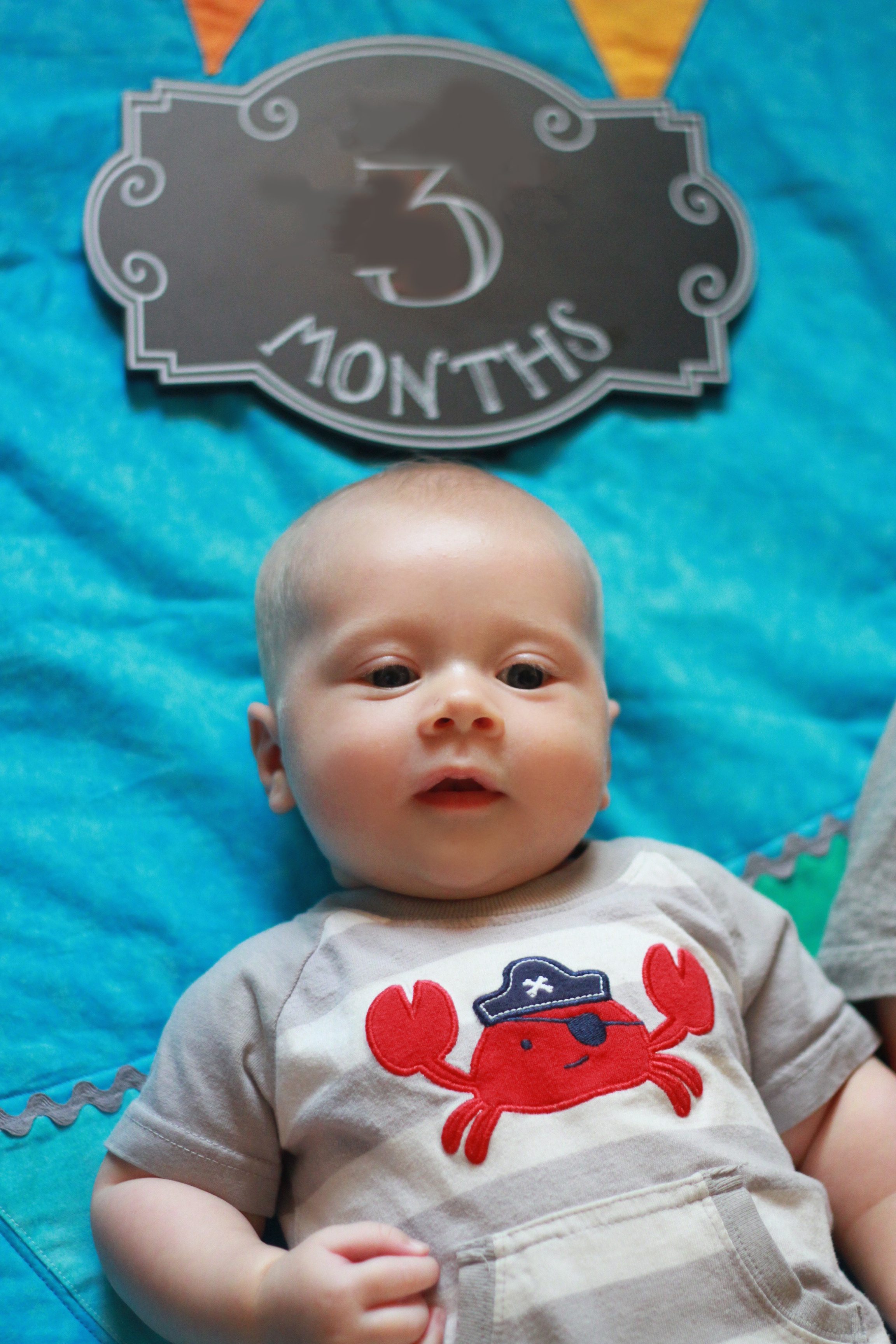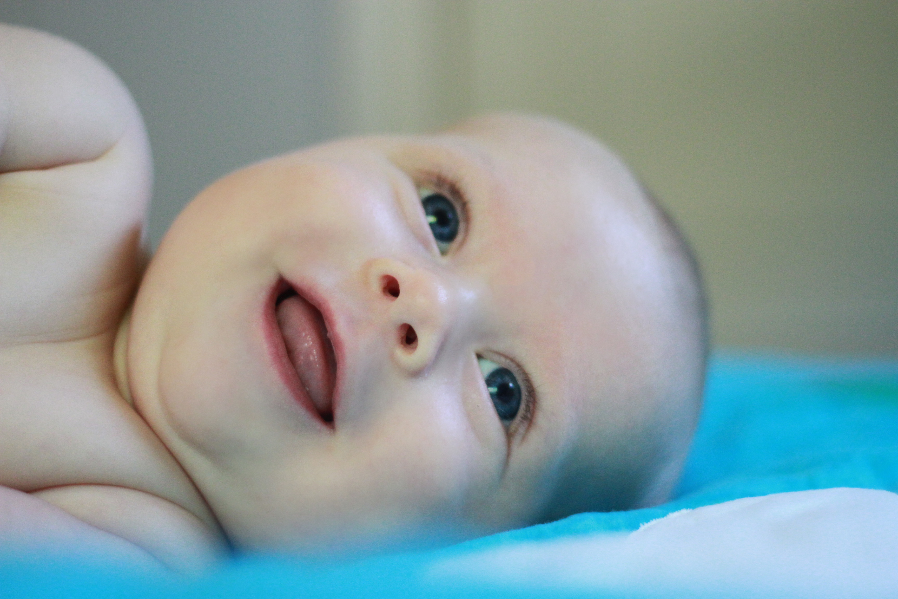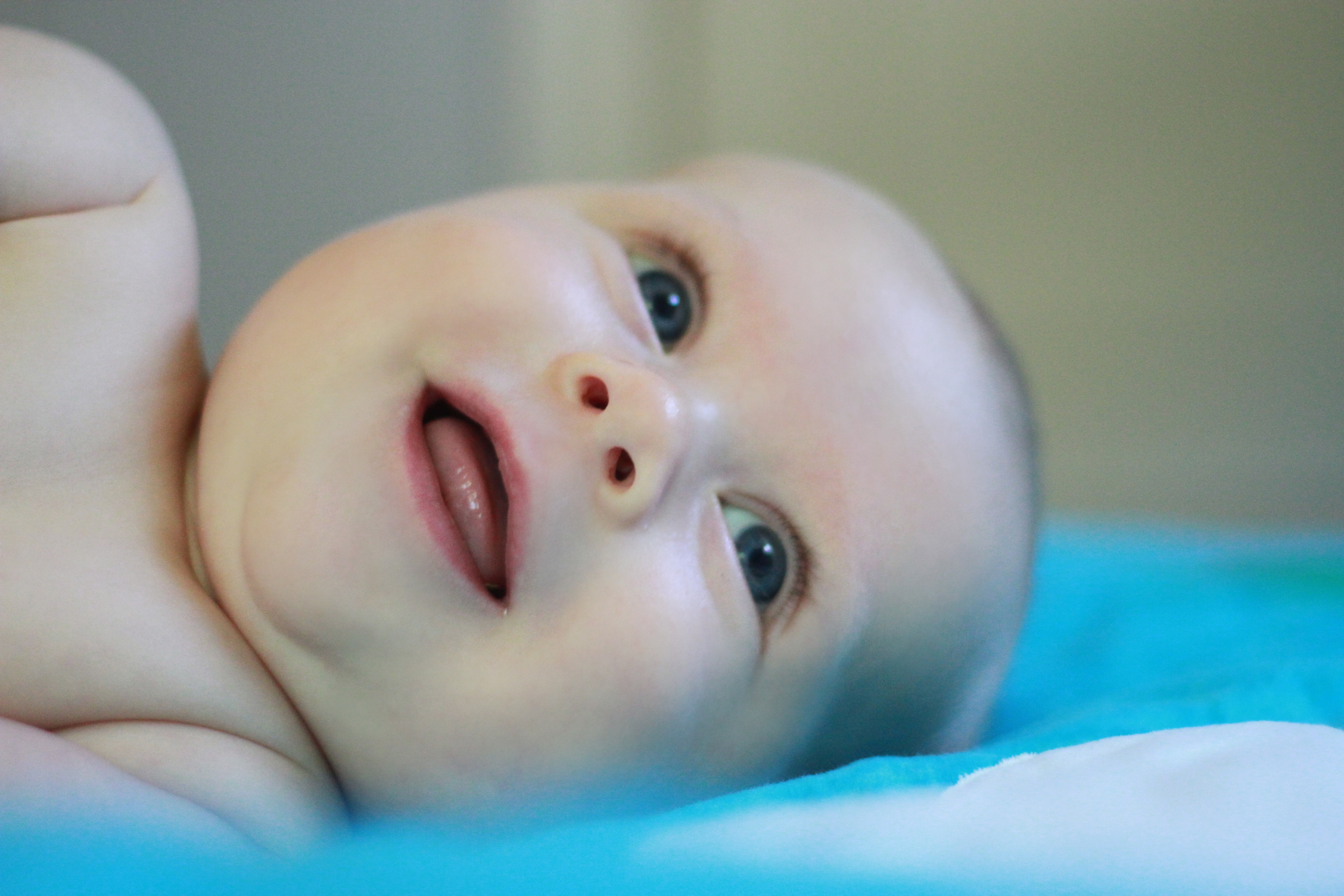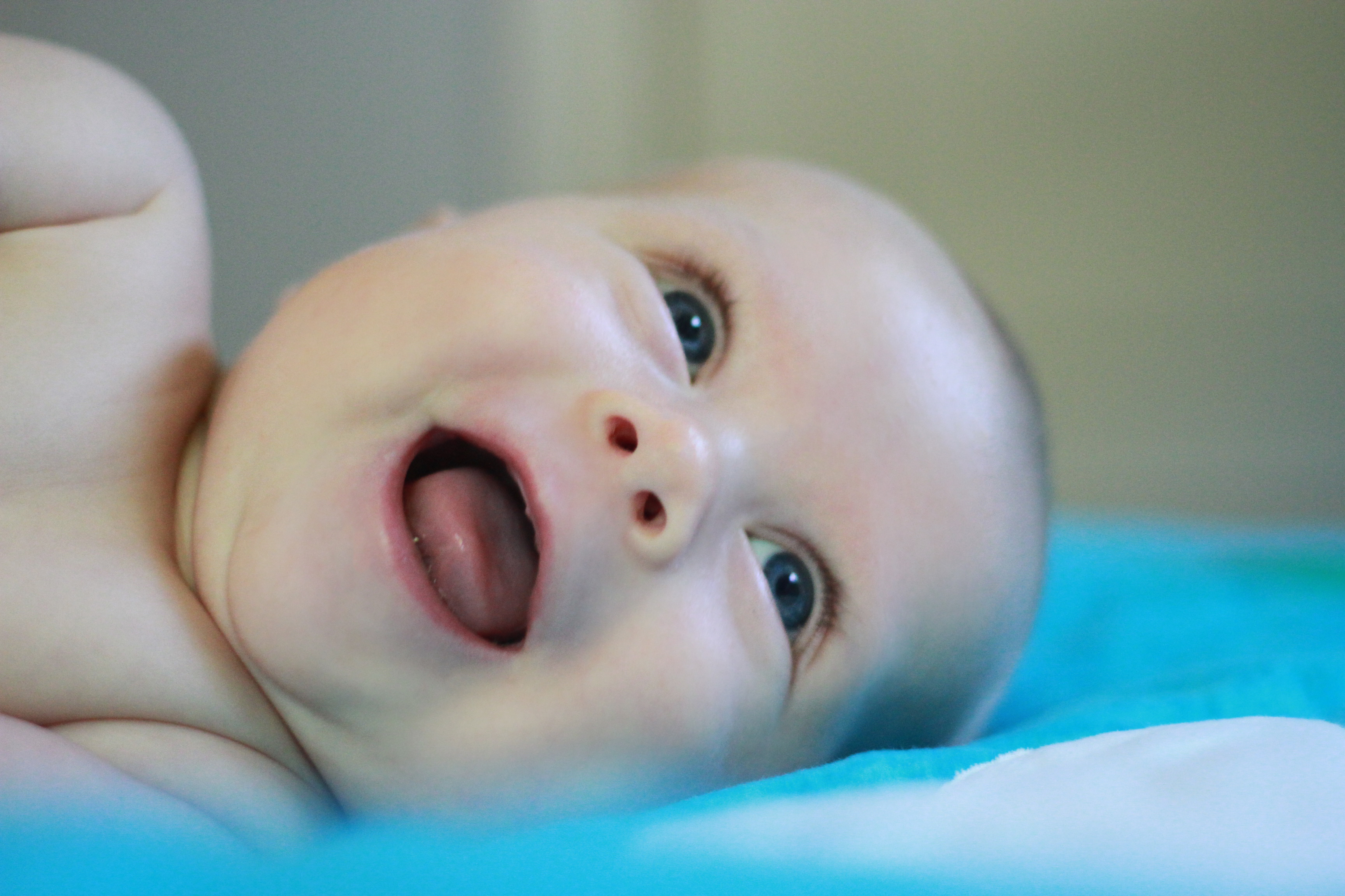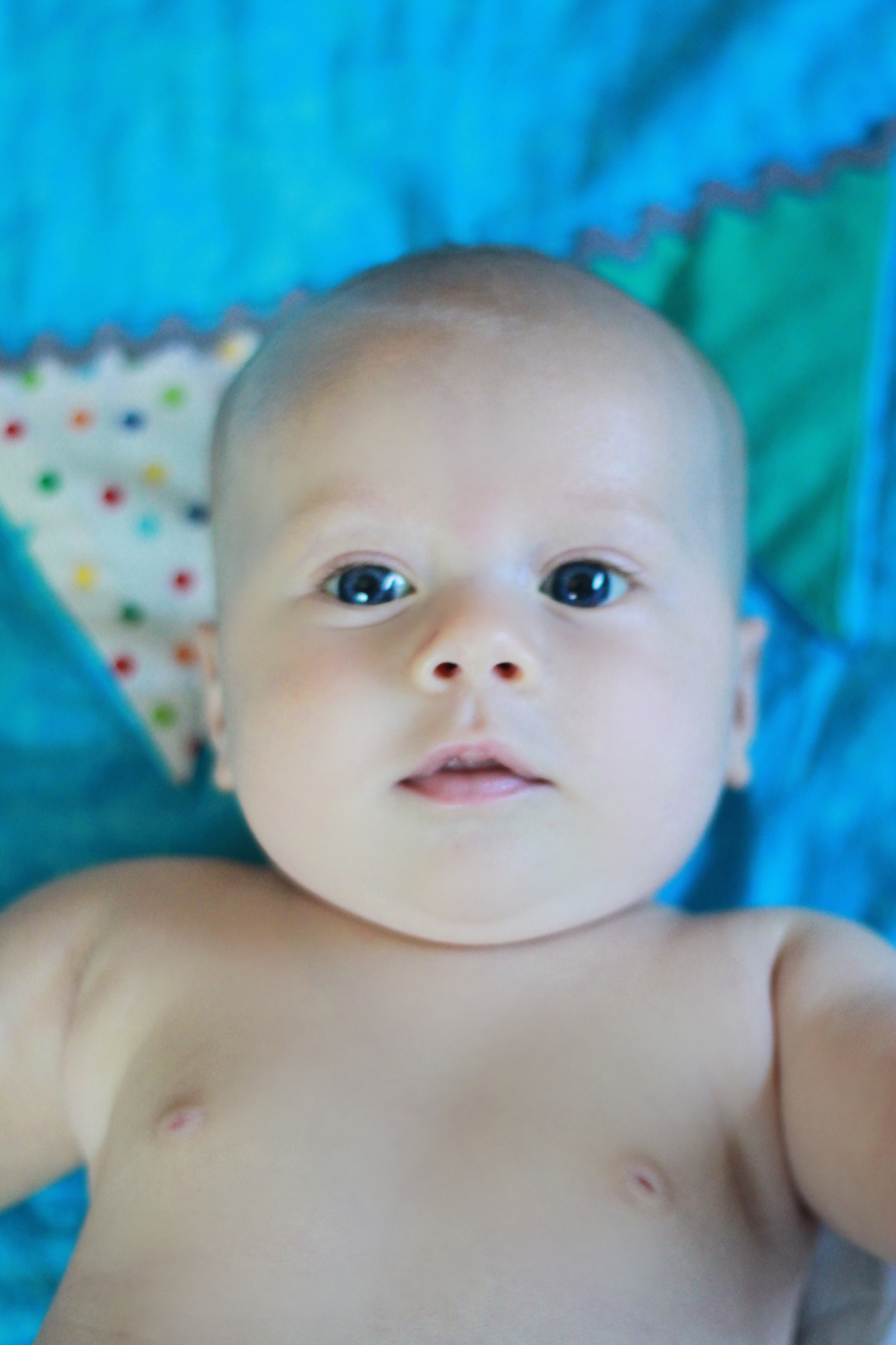 My big boy weighs over 15 pounds (so he has more than doubled), and no longer fits in most of the 3 month clothes we have, much to my chagrin. It’s all going too fast! (Said every mom, ever). He is strong, and his kicking legs hurt if they make contact. He will whip his head away from your shoulder to look around. He can roll from his stomach to his back and his back to his stomach, although that one is hard for him, and on hard surfaces he only makes it to his side.