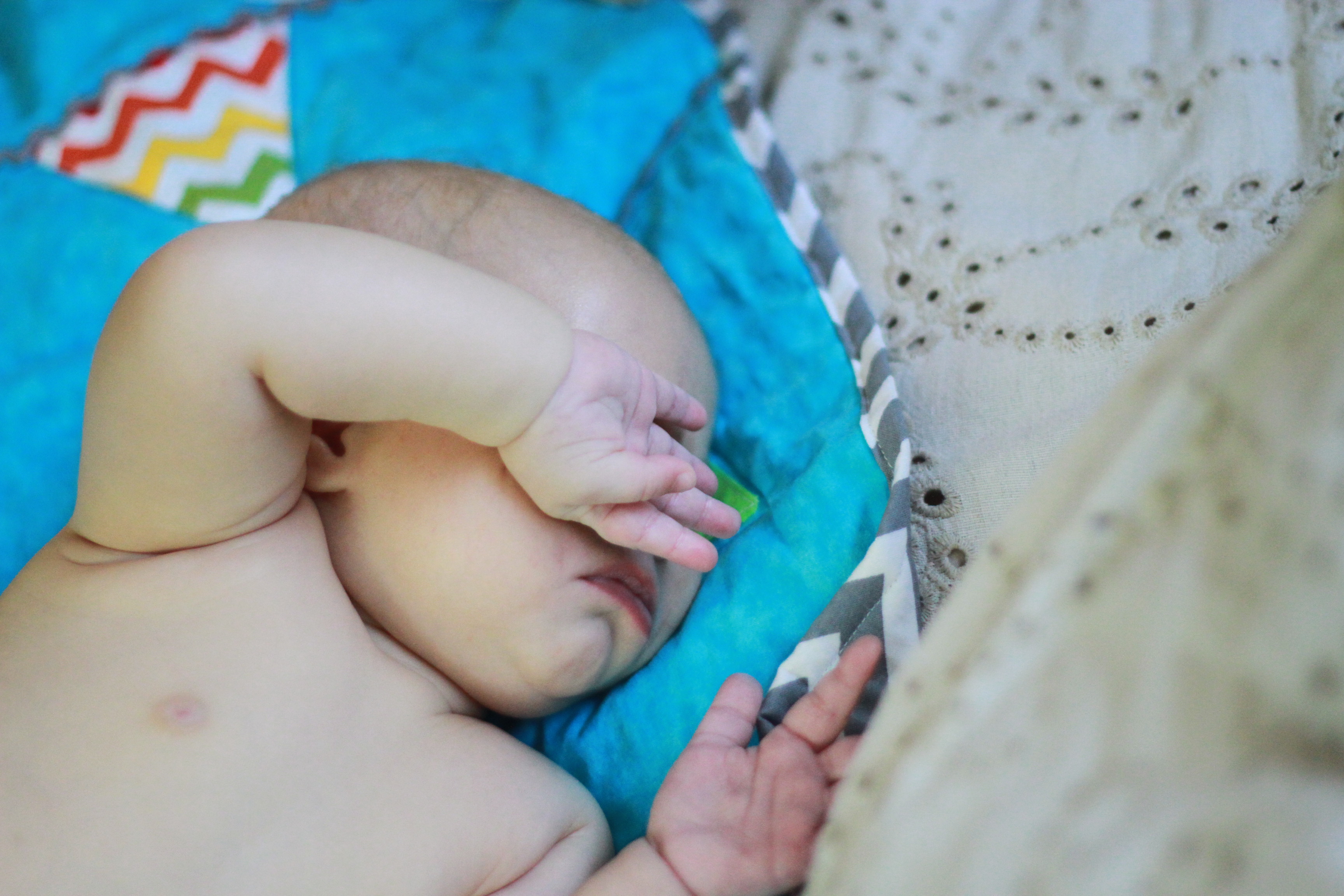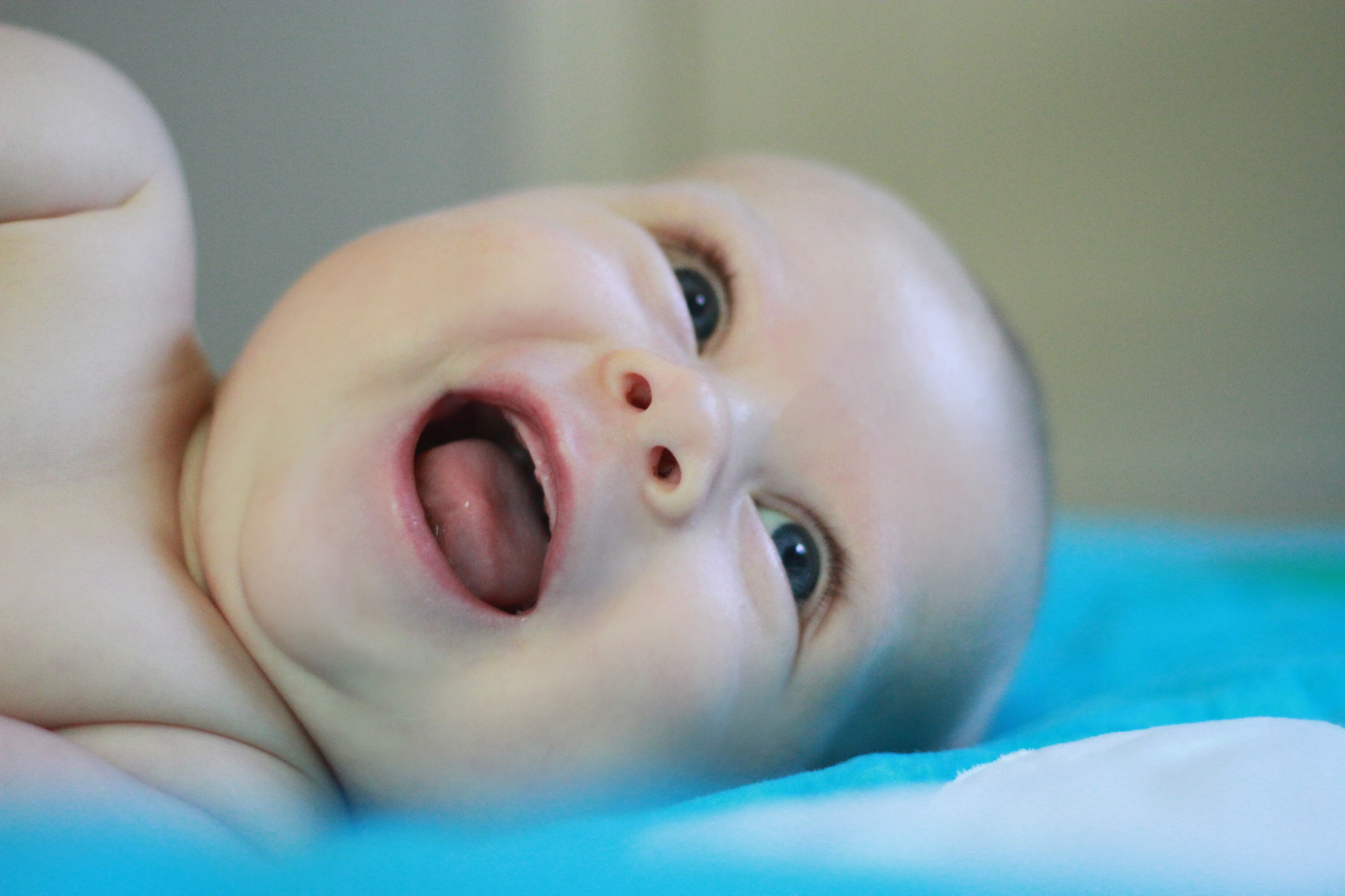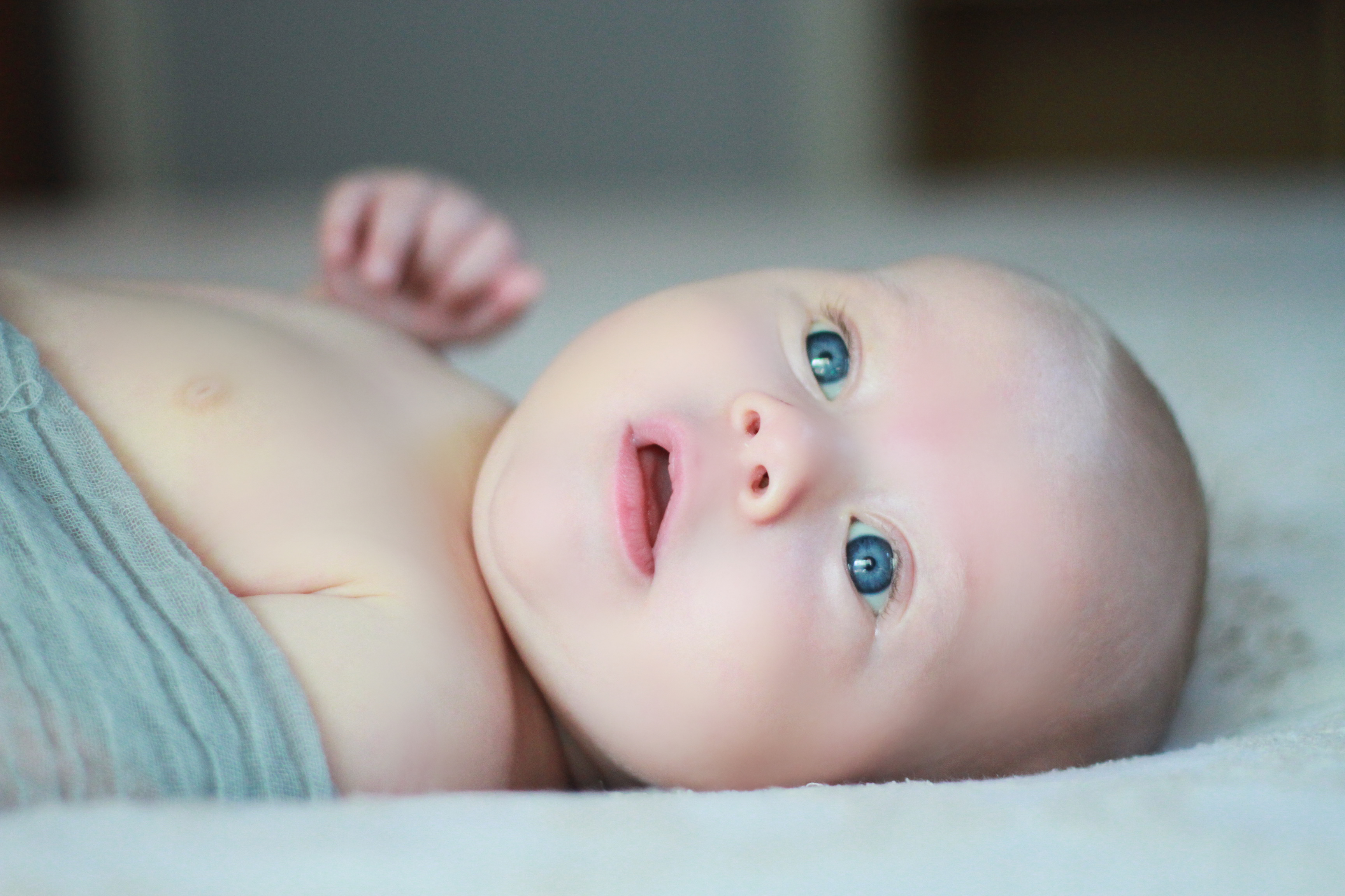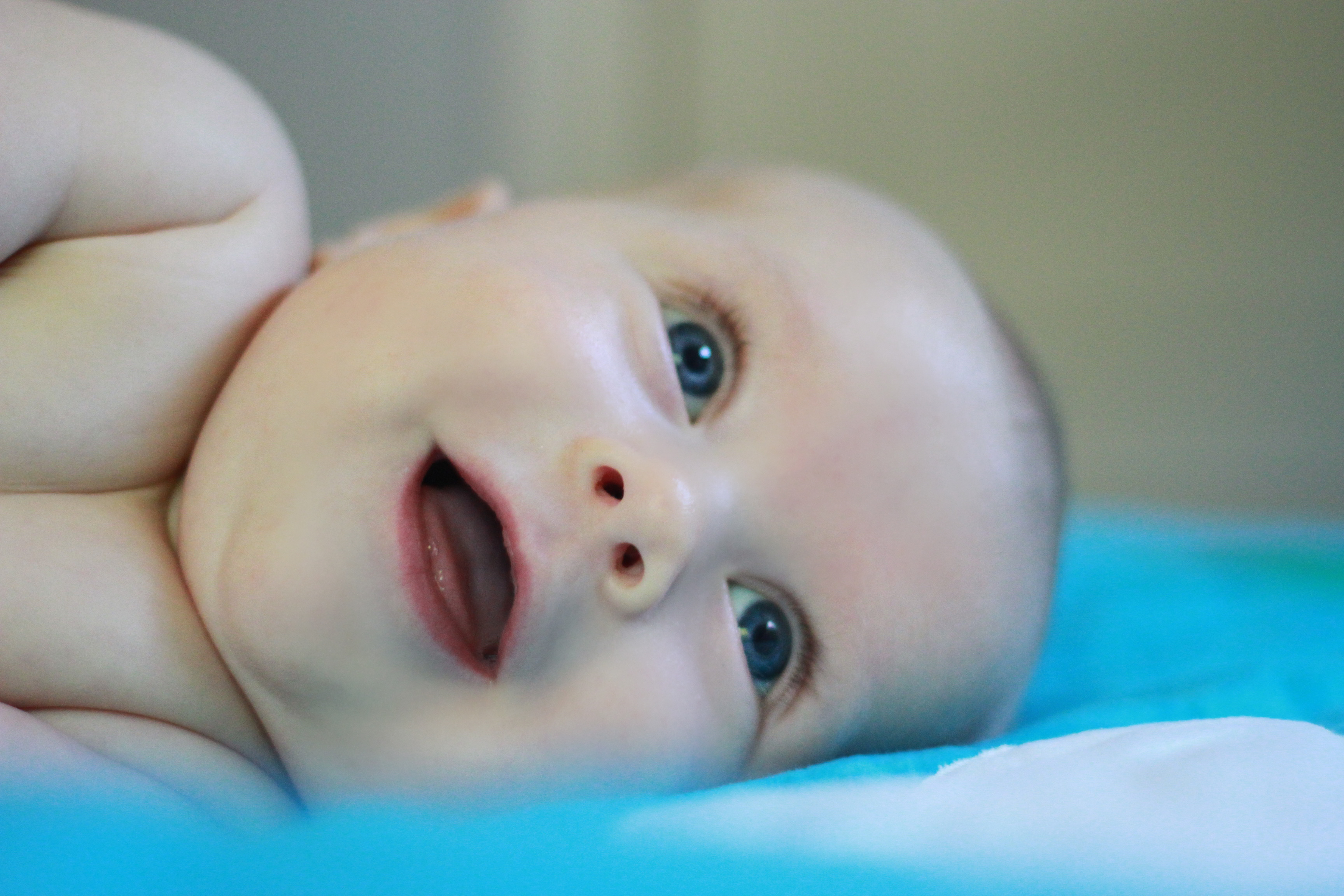My big boy weighs over 15 pounds (so he has more than doubled), and no longer fits in most of the 3 month clothes we have, much to my chagrin. It’s all going too fast! (Said every mom, ever). He is strong, and his kicking legs hurt if they make contact. He will whip his head away from your shoulder to look around. He can roll from his stomach to his back and his back to his stomach, although that one is hard for him, and on hard surfaces he only makes it to his side.