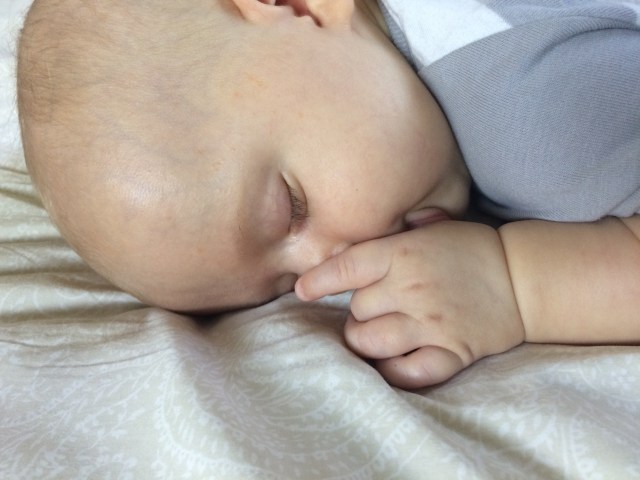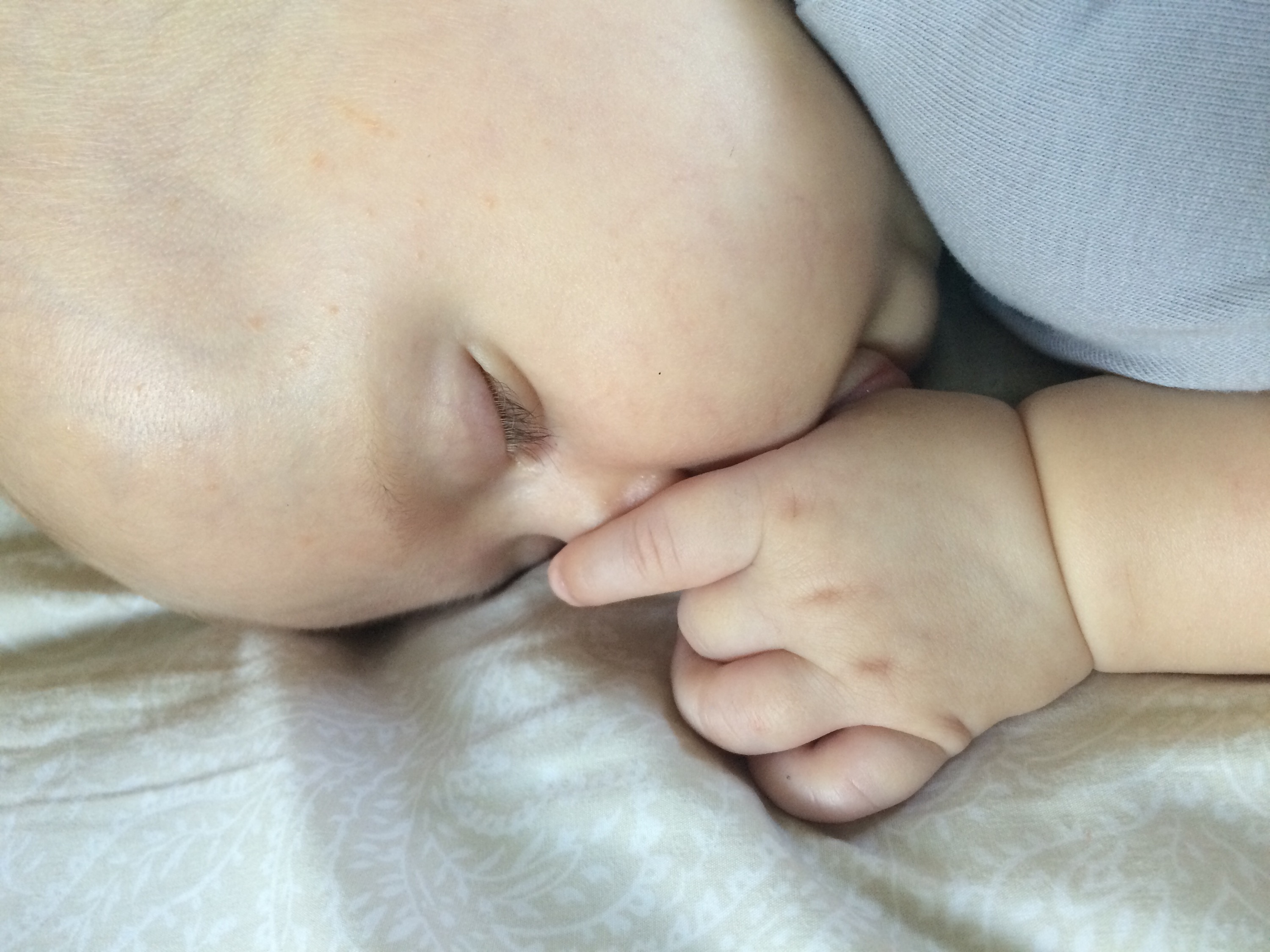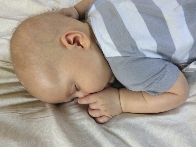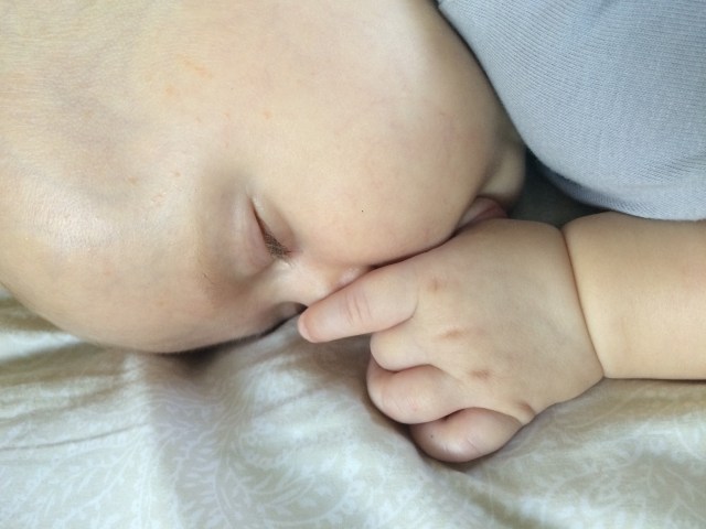 Jackson has been sucking his thumb. My mom sucked her thumb and is scared that his teeth will pay the price, as hers did. I think it’s just what he manages to get in his mouth right now, and I’m not too worried. Sometimes it’s his first three fingers.