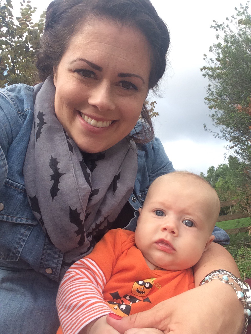 While I wait, I’ll snuggle this baby and sweat in my Halloween scarf, pining for cooler weather.