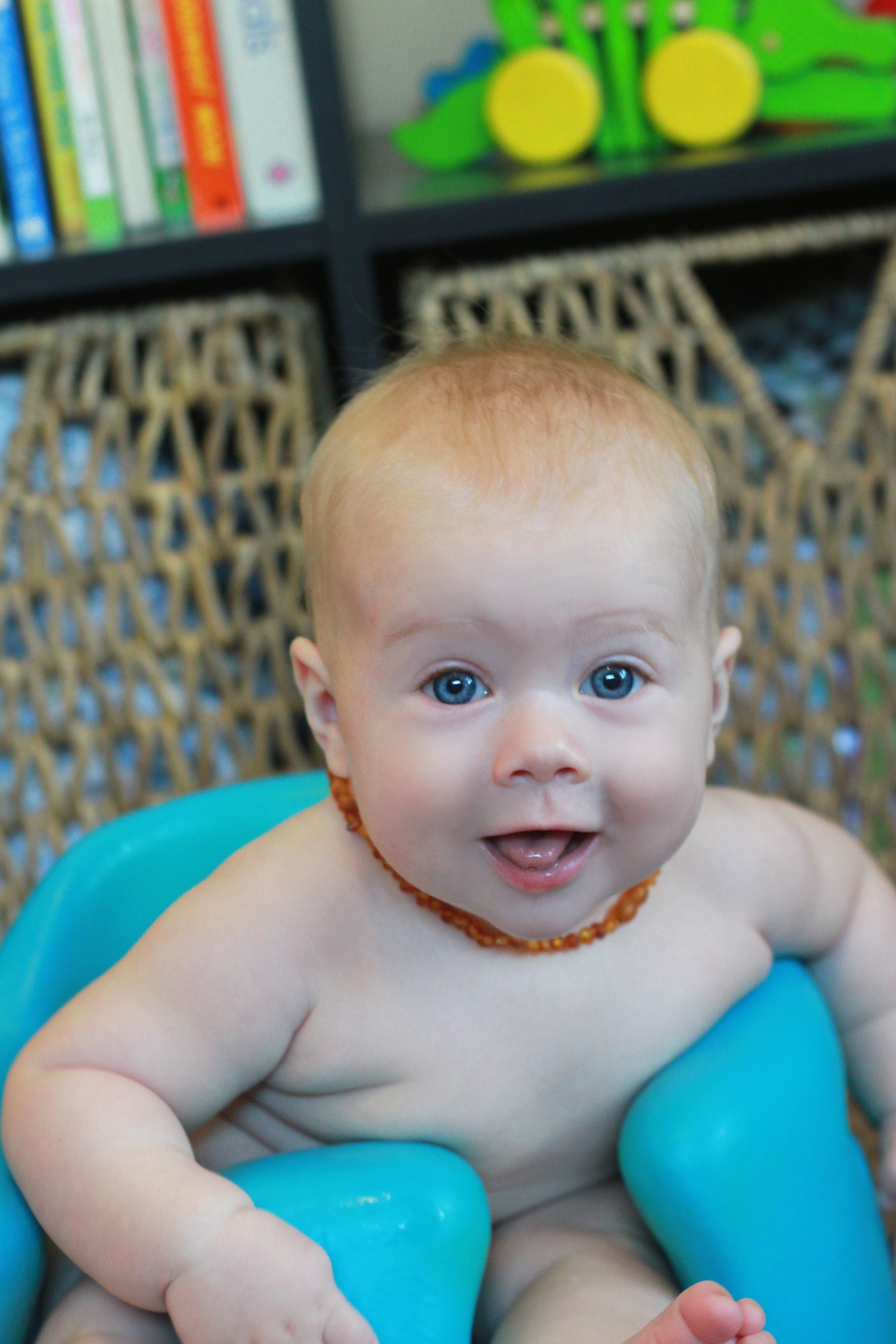 He loves to wrap his little hands around anything he can reach, grabbing for my hair, kitchen utensils, his brother’s nose…and he gets MAD when things fall from his reach. It’s quite funny because he’s such a happy creature that when he gets mad it’s as if a storm cloud has passed over his sunny face. He will YELL his frustration and he sounds quite pitiful. 🙂
