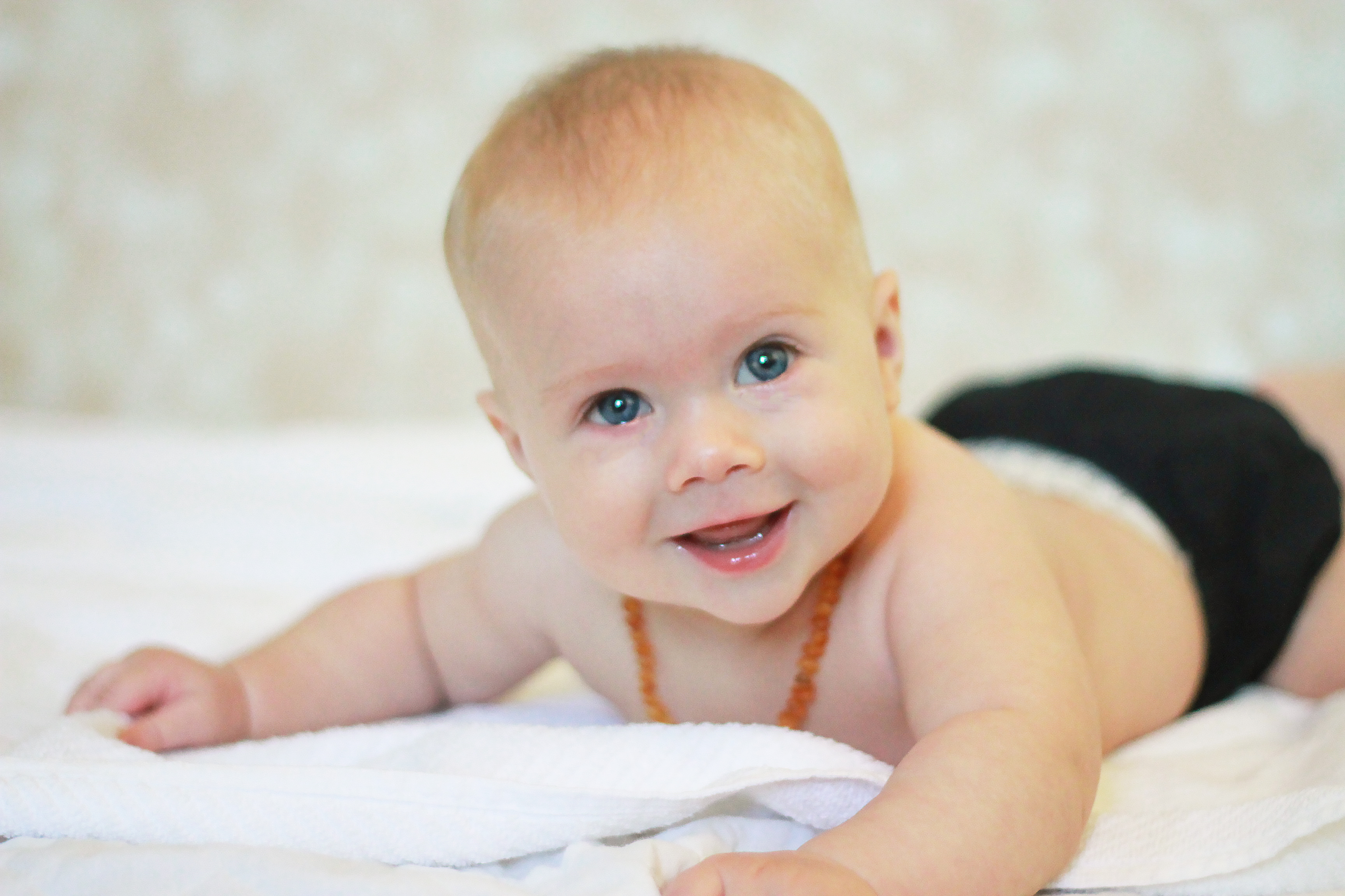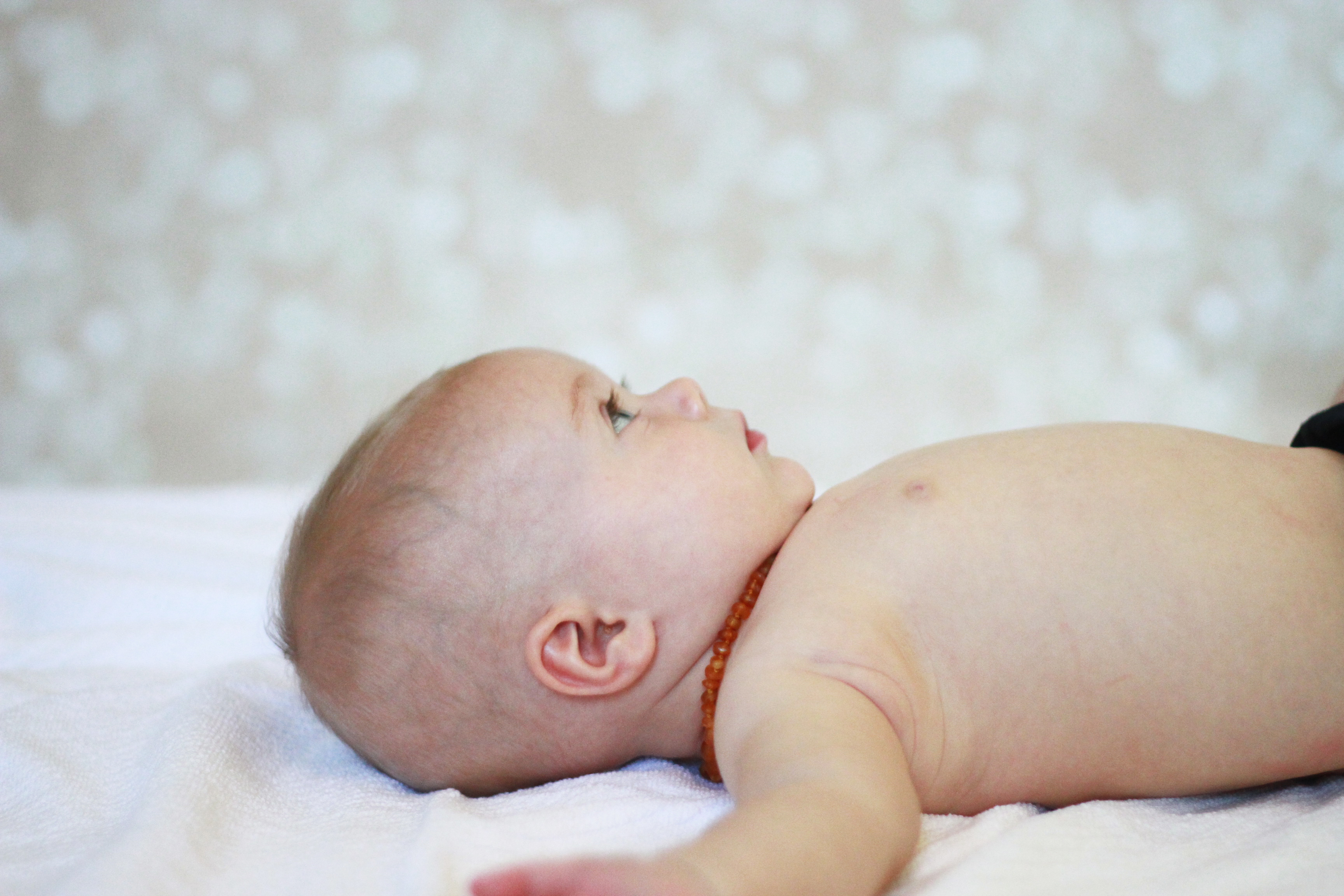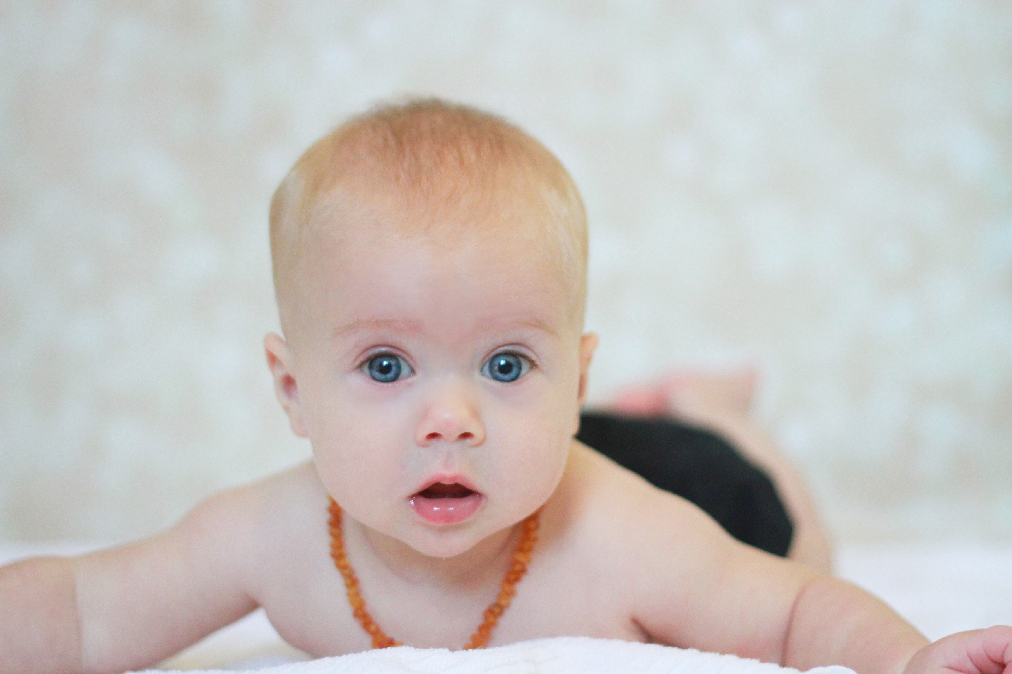 As you can see in these pictures, he is quite comfortable on his stomach, and will roll over instantly and push himself up like this. He’s quite proud of this skill as well. He is very strong and when he’s excited his little arms and legs start to move wildly. When he wants to stand up, he does, and you cannot bend him in half and hold him in the cradle hold.