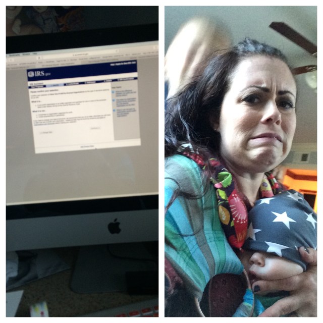 It doesn’t work. Unfortunately for me, Jackson isn’t interested in sleeping without me, so I carry him around the house, picking up with my free hand and putting things away. I heat up my neck heat pack because my neck has been bothering me (maybe it’s the constant baby carrying and one-handed housework?) I give Jackson a couple of toys and get on the computer. I’ve been trying to get on the IRS website to get an EIN number assigned to our LLL group so that we can open a bank account and set up a square card reader (to accept credit cards). We are hoping this will make fundraising easier, and that it will help us stay on top of memberships. Jackson doesn’t last long, and soon I’m holding a fussy baby and bouncing on my stability ball/desk chair while attempting to type with one hand. Just as I’m about to finish that process, Jacob is awake and comes bounding into the room. An entire house and yard, 1,750 square feet of space, and all three humans are within 3 square feet of it.