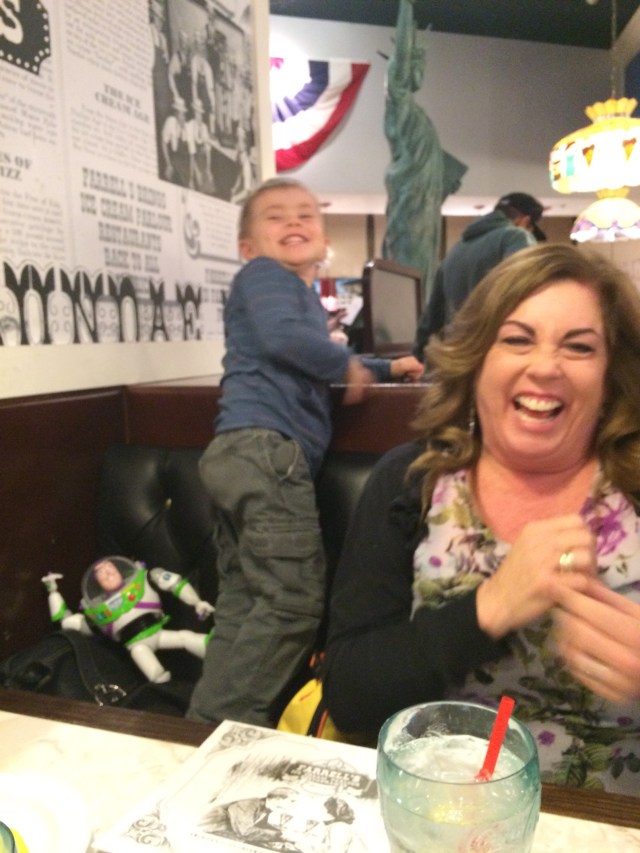 Mimi, Bop, and Carlee meet us there. It seems we are the only table NOT celebrating a birthday. The servers are really fun and Jacob is loving it. When they take out the drum he asks where he can get one like that (no way.) He is fascinated by the birthday songs, and dances along.