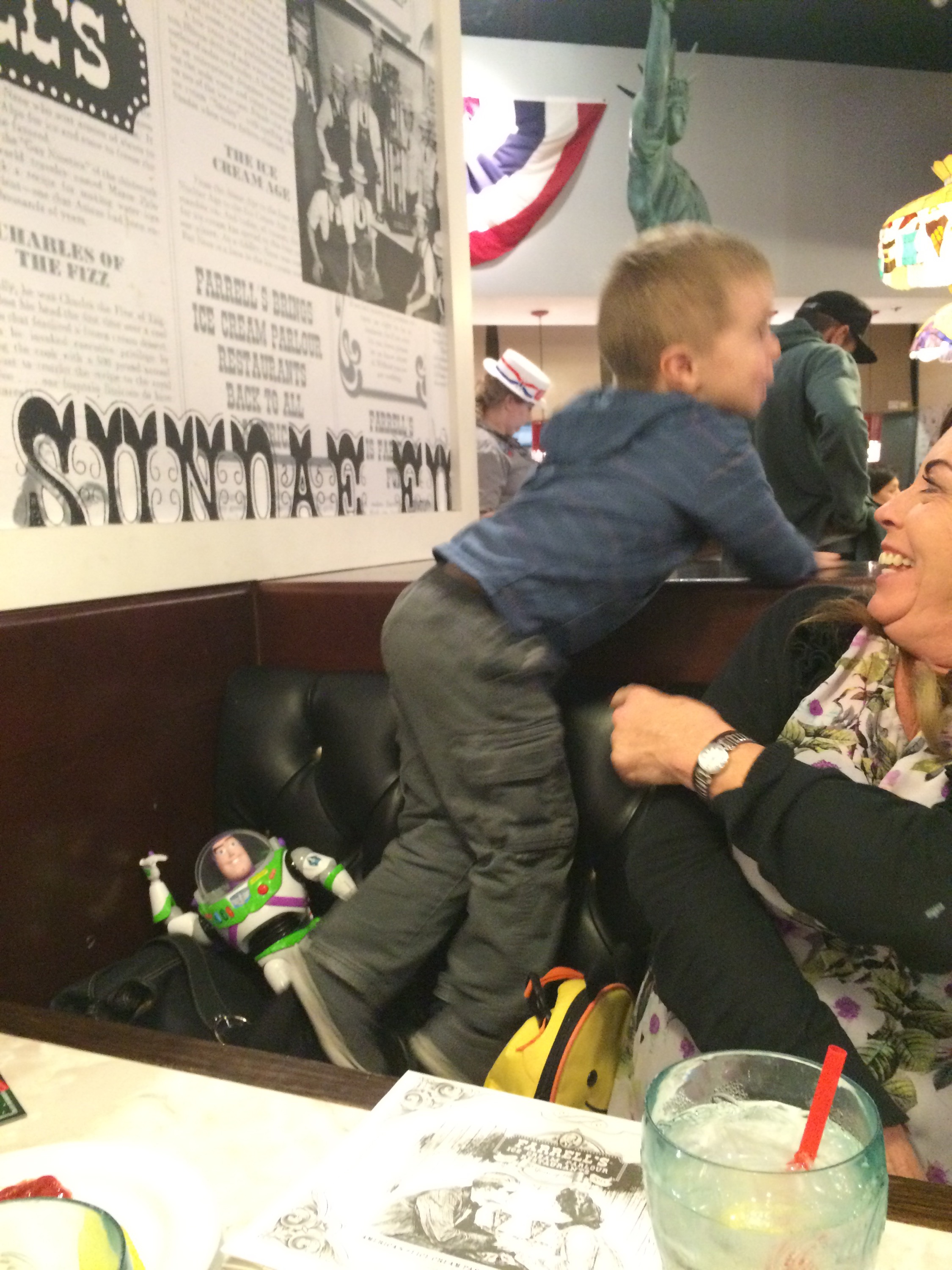 OT stops by for a round of pool. I gather up the necessities for both boys and we are out the door again, heading to Farrell’s for dinner.