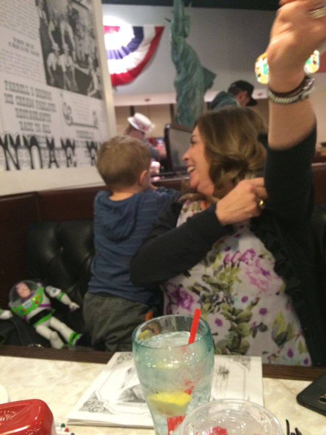 We have a pretty good turnout for a holiday week with several regulars and two brand new moms. The meeting is lovely. Lots of support and information is shared. After we lock up the studio, we return home. Mimi and Bop have picked up Jacob from school and taken him to lunch. Bop is reading to Jacob (about 15 books.) They brought me two tacos, which I scarf down. Nap time! Bop and Mimi leave, and everyone lays down for a nap.