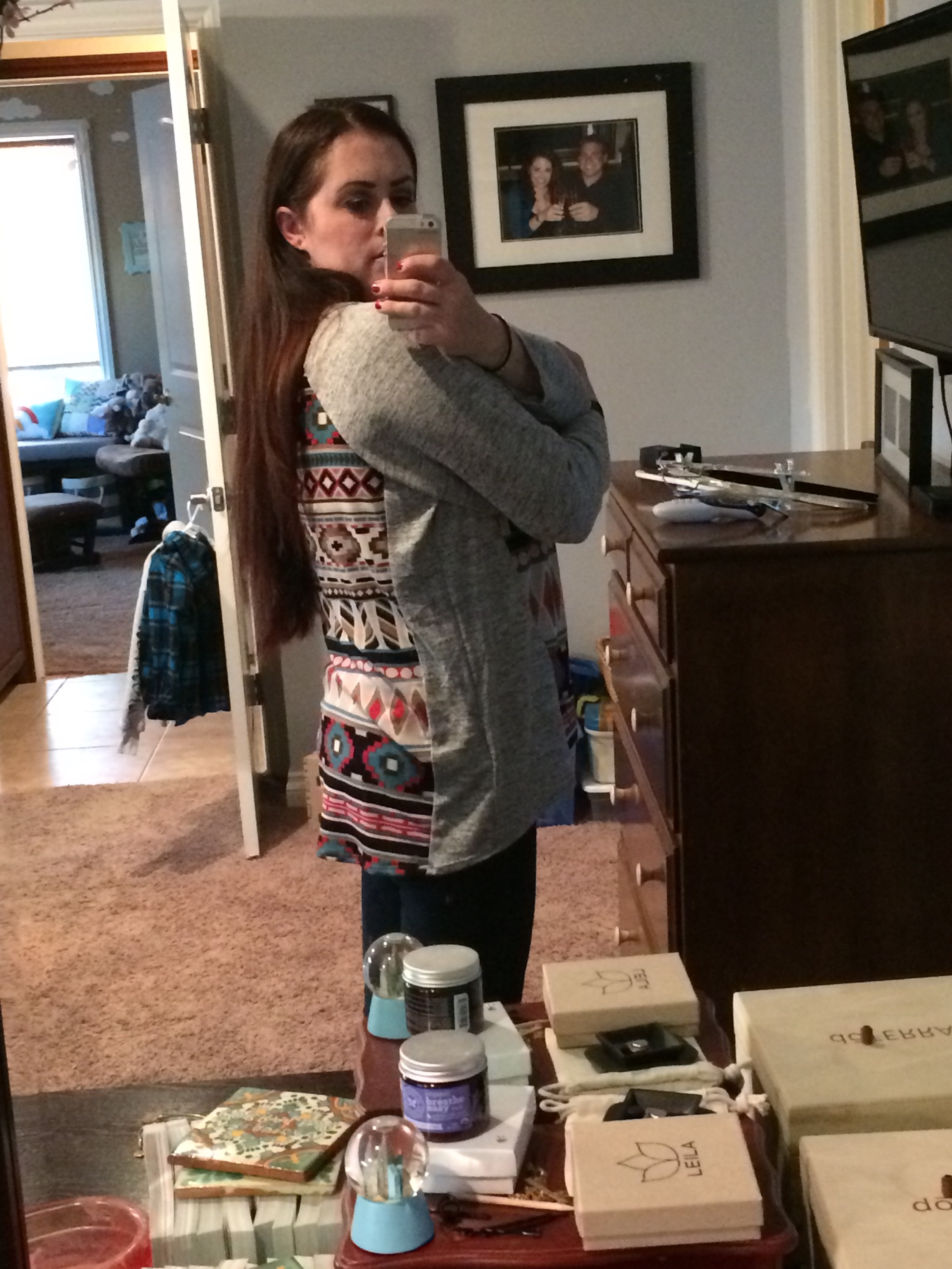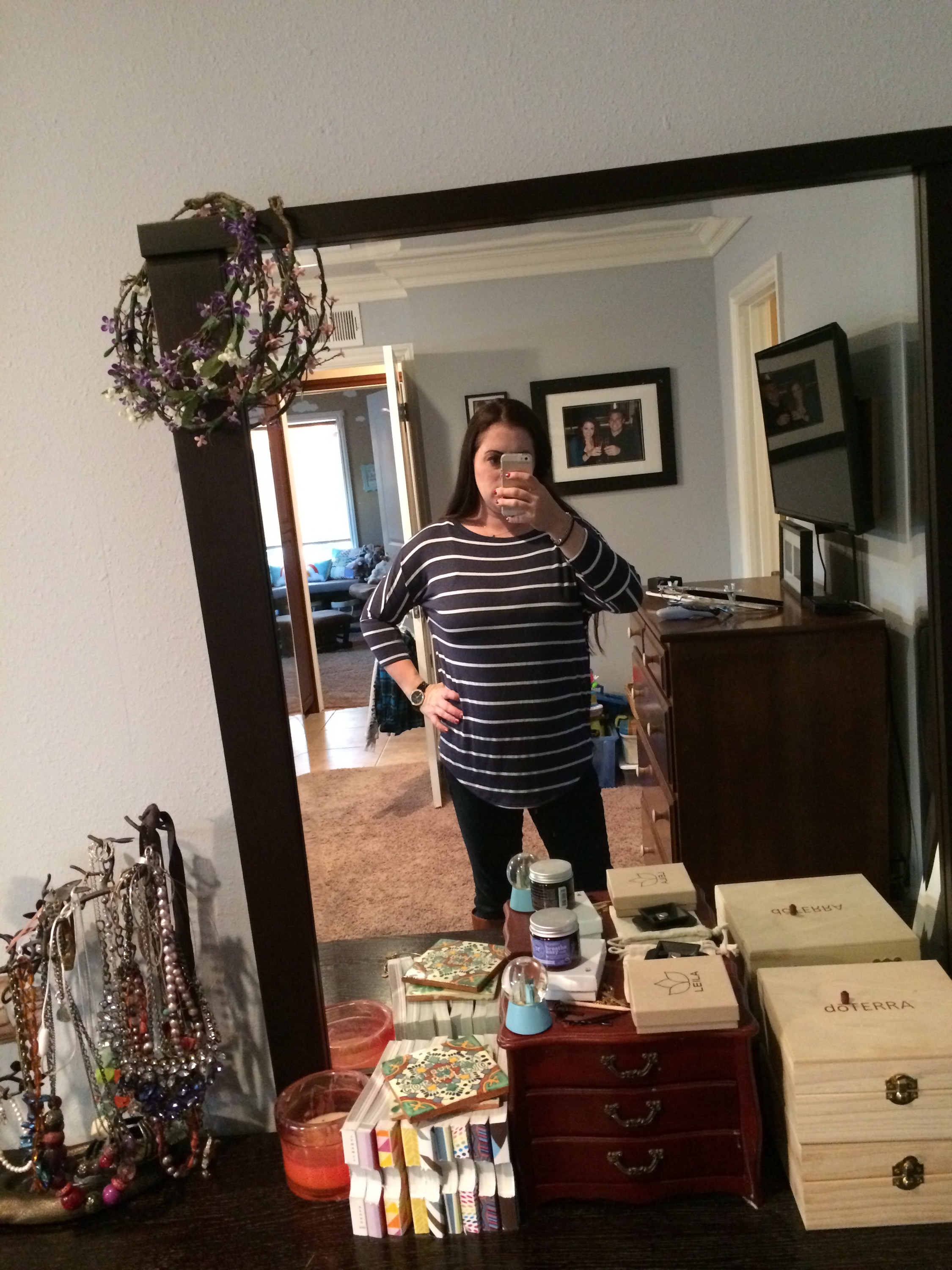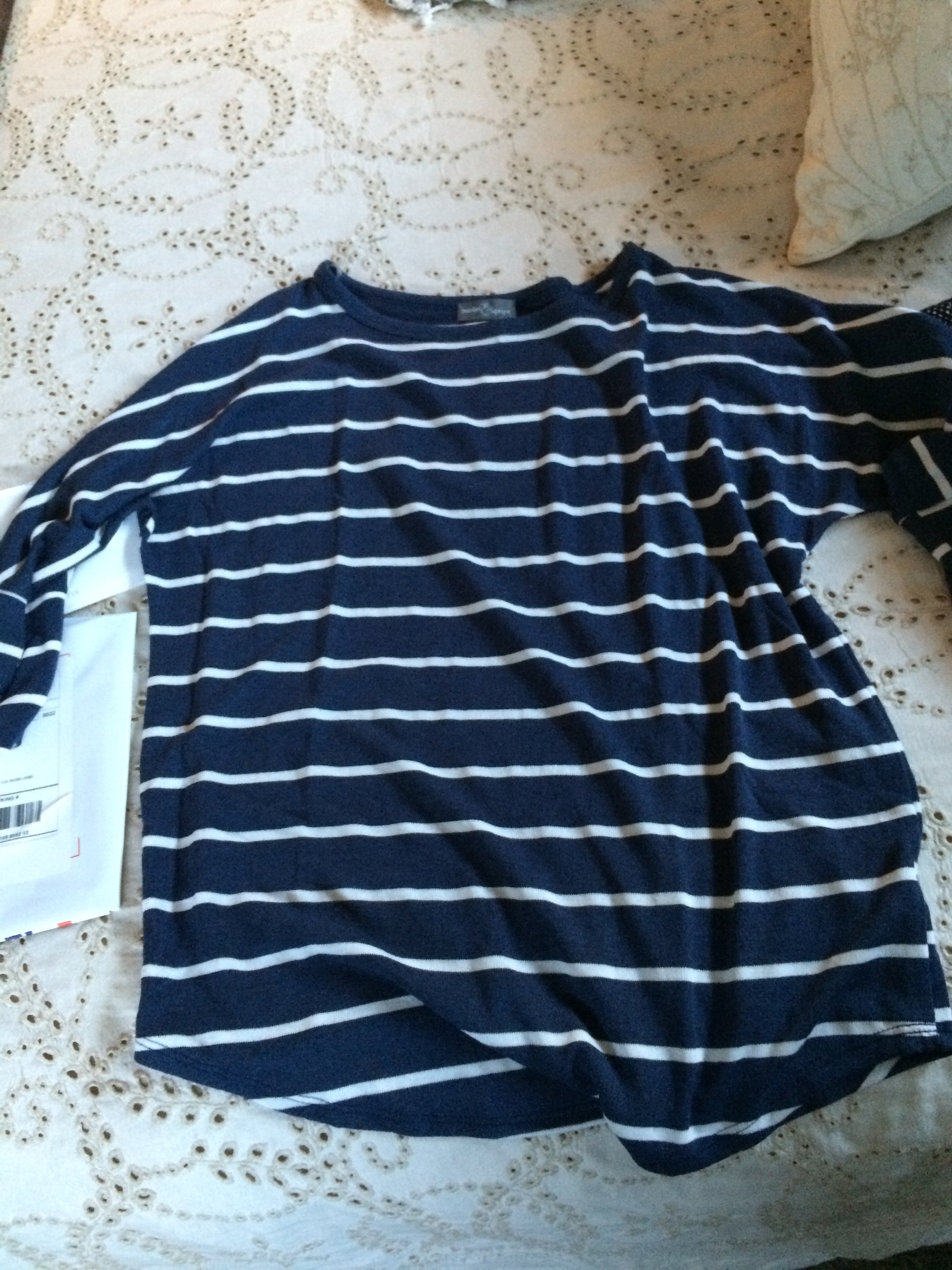 How it works: you take a style quiz, upload photos, and send sizes/preferences/types of clothing you are looking for, and you get a personal stylist. The styling fee is $20. You will get a box with five items shipped to your house on a date you choose. It could be anything from clothes to jewelry or purses. You receive styling cards with two outfit suggestions per item in the box. If you buy anything, the $20 styling fee is credited from your order. If you purchase all five items, you get 25% off the whole box. Whatever you decide against goes into the included prepaid shipping bag and onto your doorstep. It’s that easy! I first tried it maybe two years ago, and I’ve done it on and off since. It’s especially helpful when I need specific items, like jeans. I have zero time to shlep myself and my two little ones all over a mall trying on jeans. I’ve gotten three pairs of jeans and they have all been a perfect fit. You can tell the stylist your price preference, but be prepared that it’s not Target prices. That being said, they have some cute stuff and some great prices, and the discount for buying everything is really great. The best part, though, is getting things picked for you and sent right to your door. My last fix was awesome. My preferences were: tops, specifically things I can nurse in, that hide my belly. Here’s what I got.