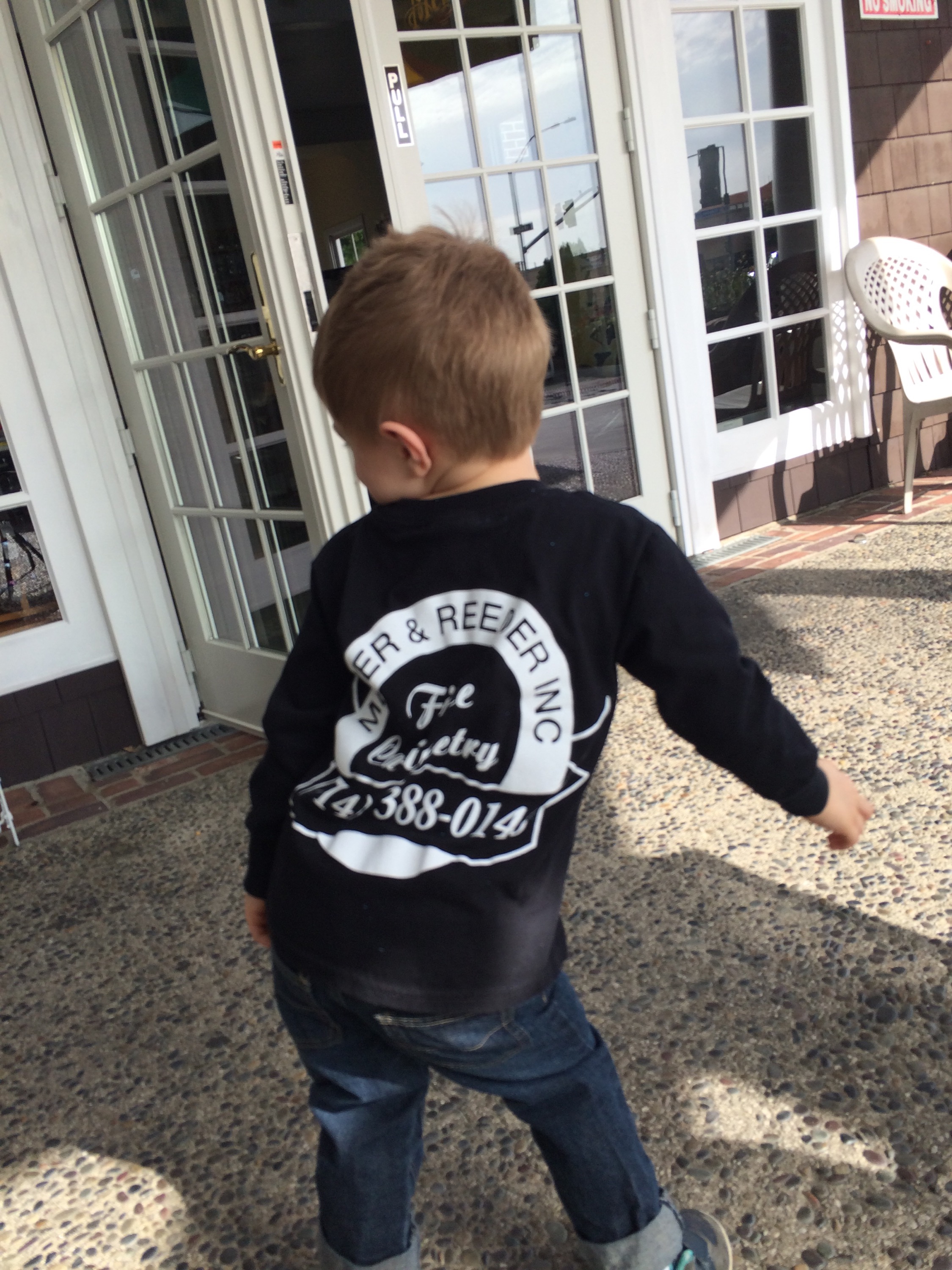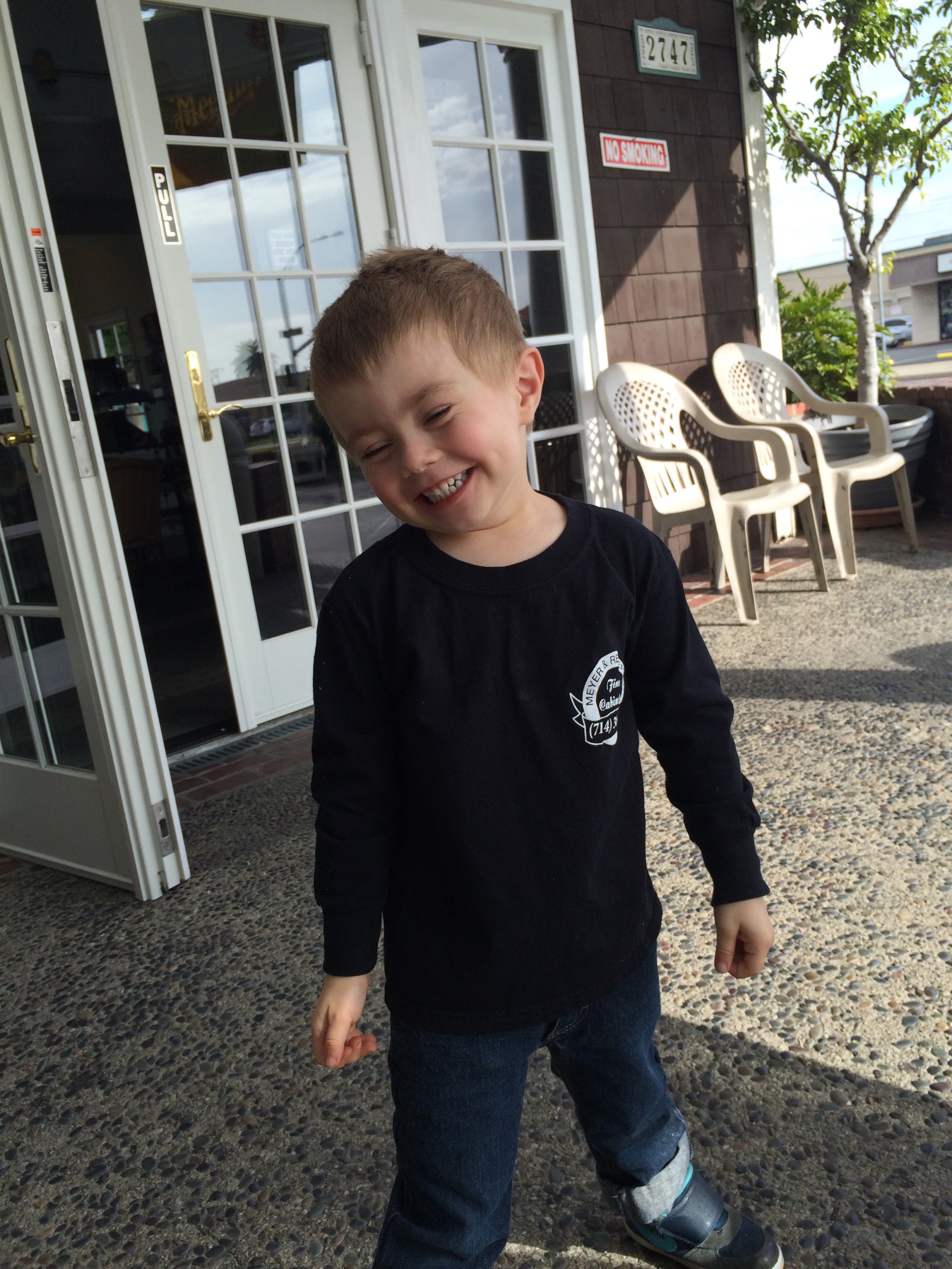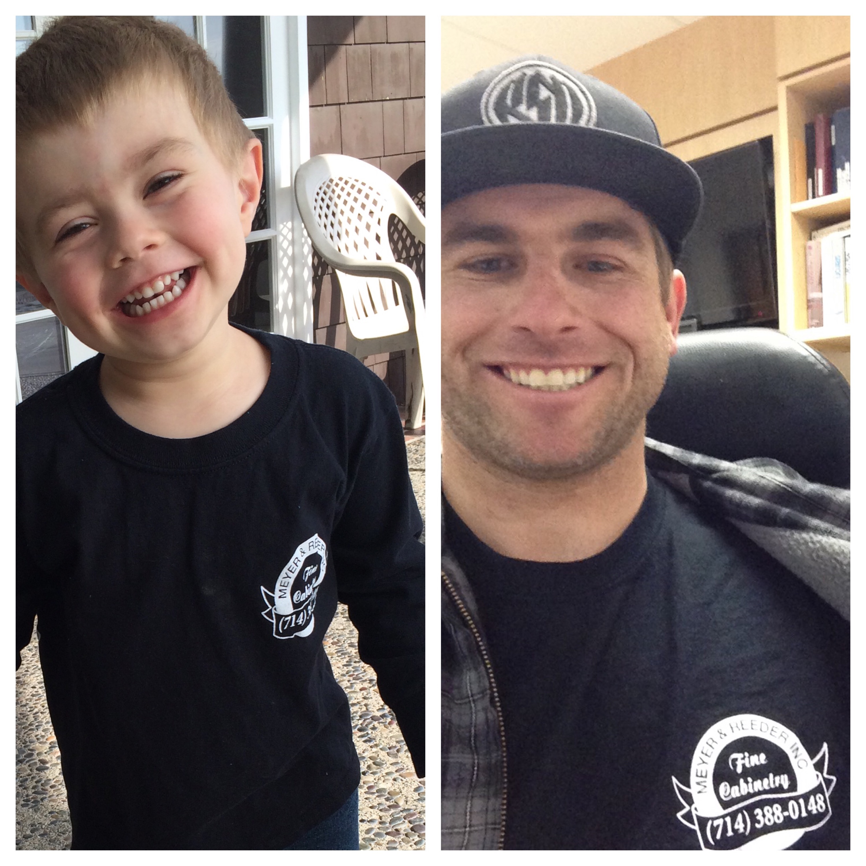 Also, look how cute–we sent daddy a picture of Jacob in his “daddy work shurt” and it turns out that daddy was wearing the same shirt!