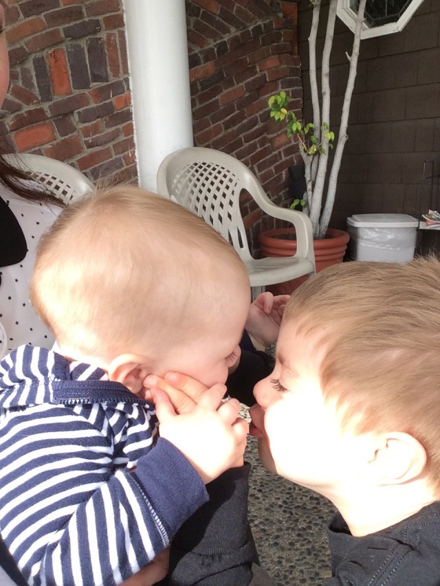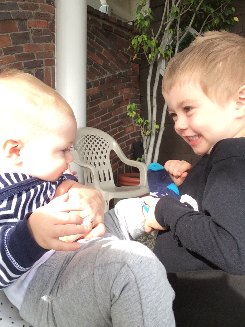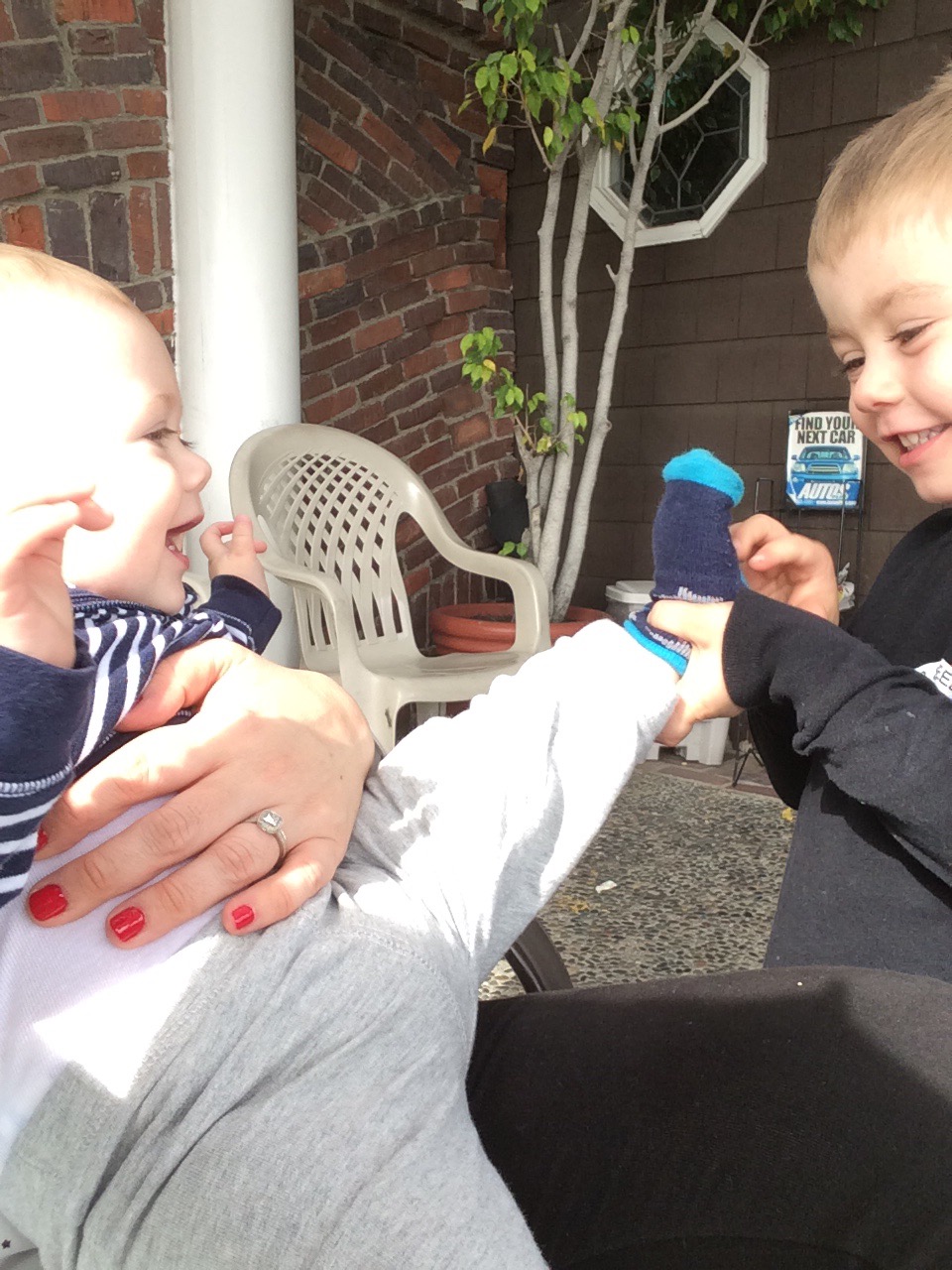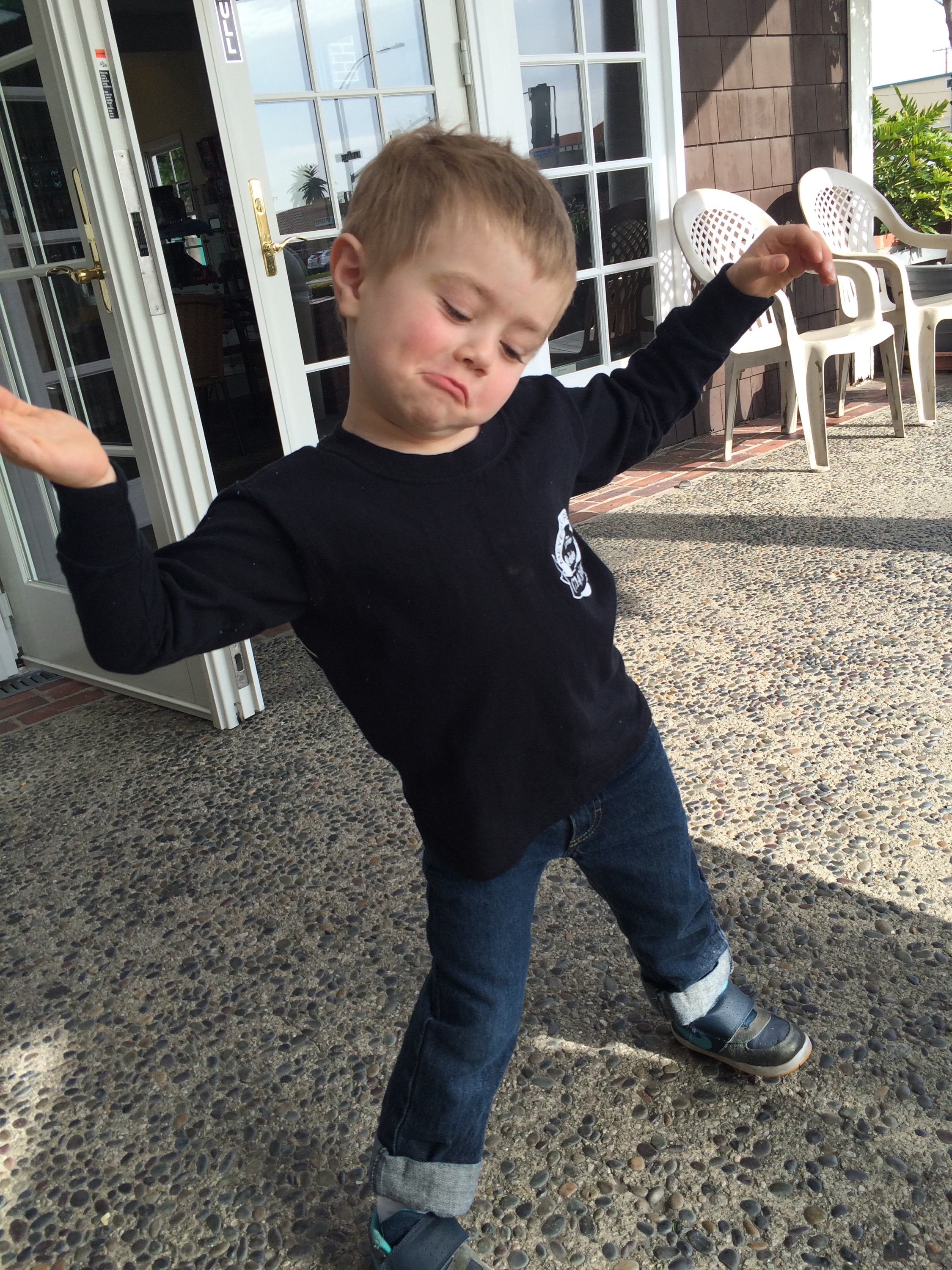 Also, look how cute–we sent daddy a picture of Jacob in his “daddy work shurt” and it turns out that daddy was wearing the same shirt!