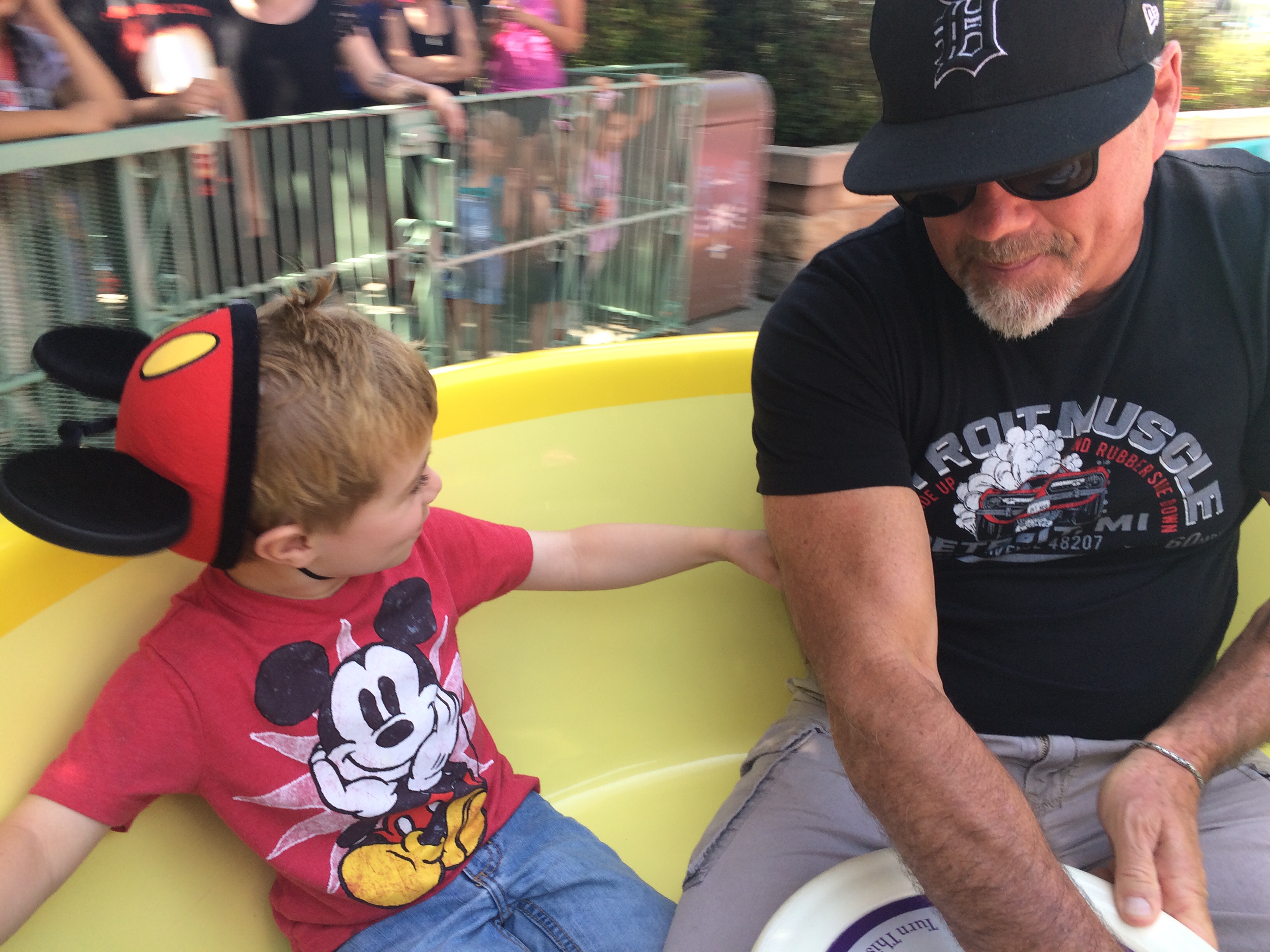 Lucky Jacob got to go on Radiator Springs Racers twice because we did a parent switch. He looked really scared the whole timeline, but he loved it and was thrilled to ride it again.