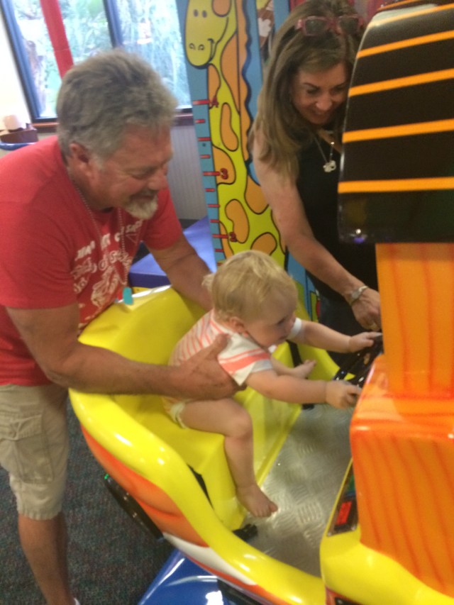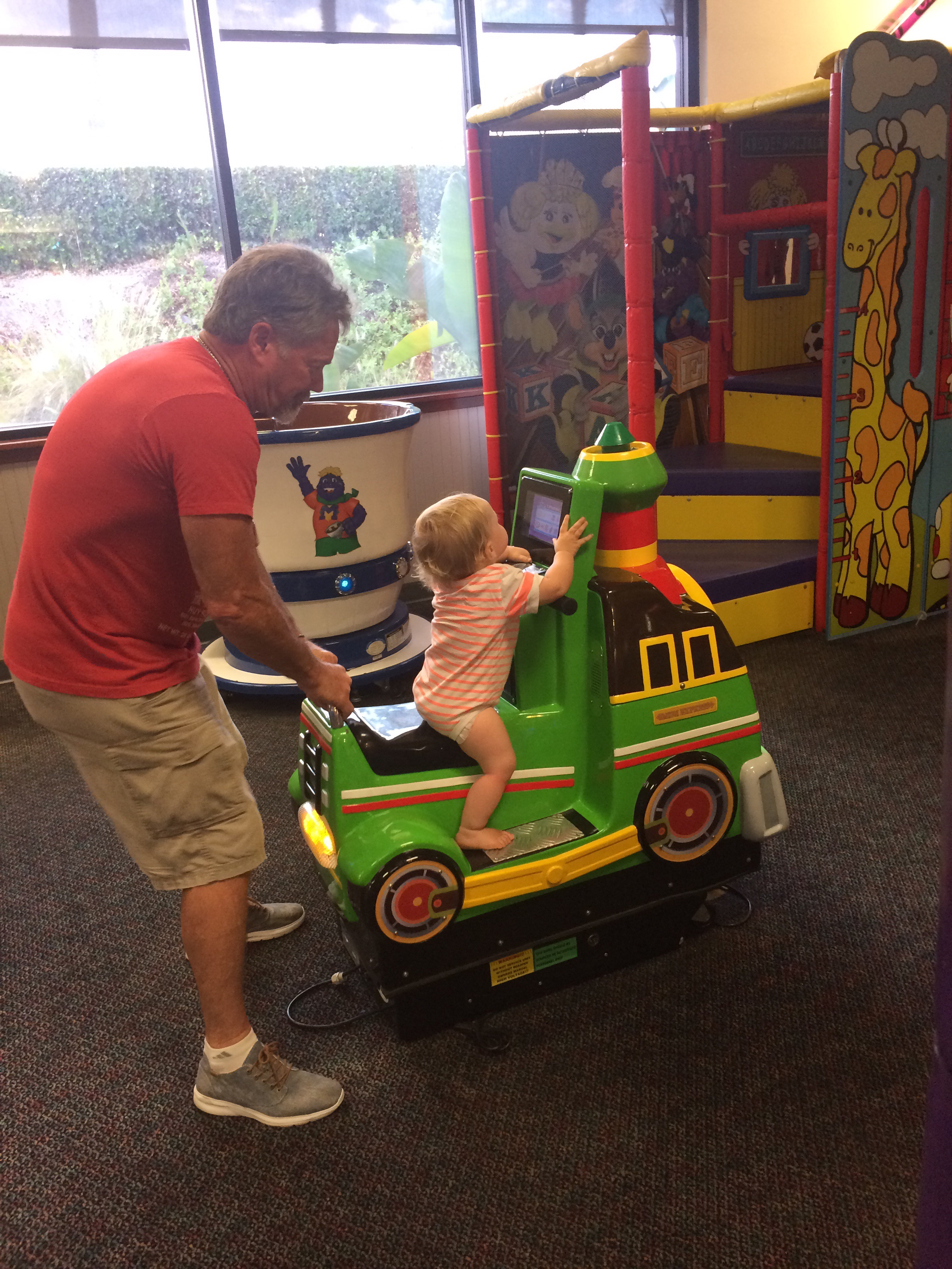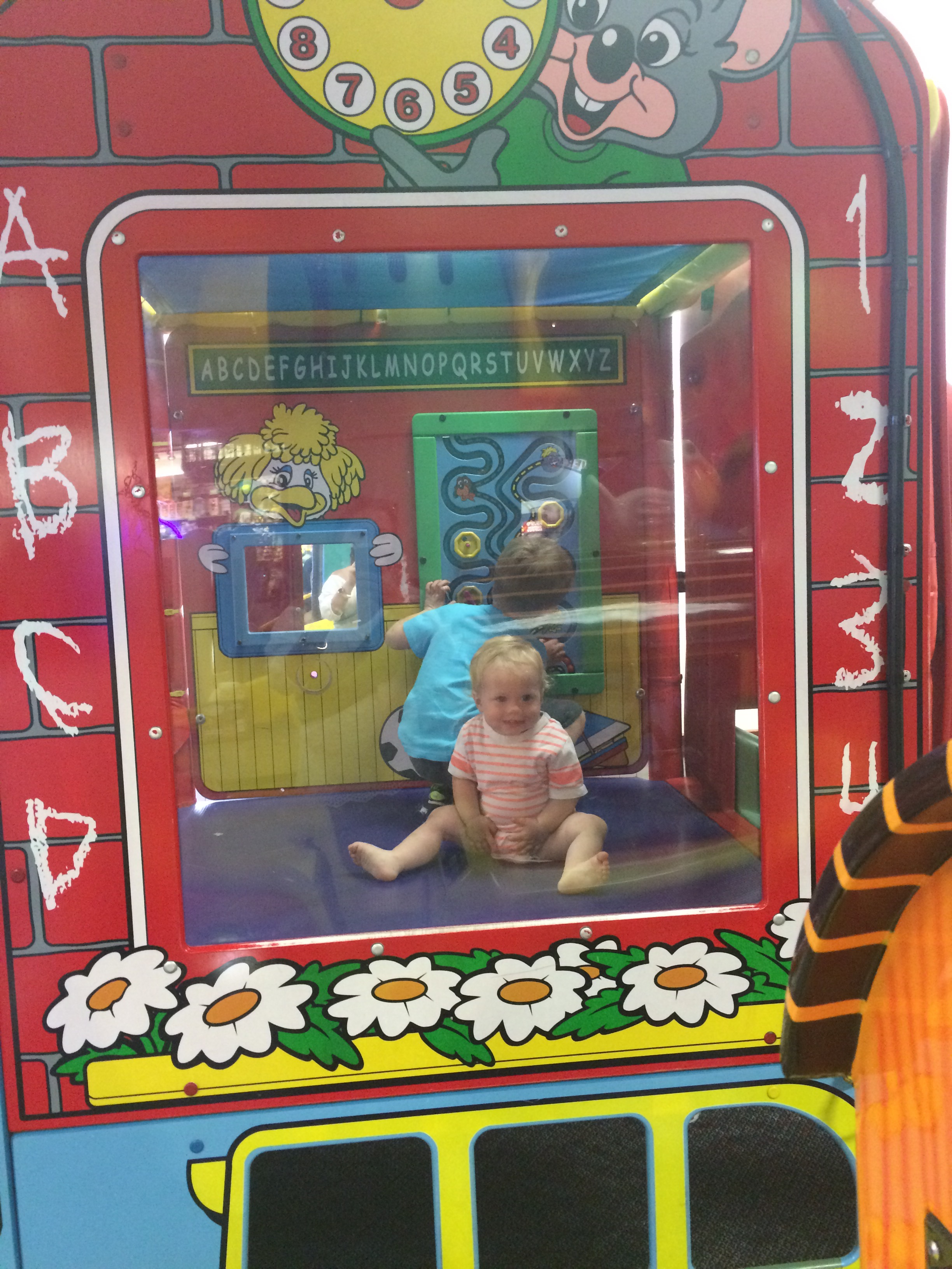 When we got to Chuck E Cheese, there was a car show in the parking lot.