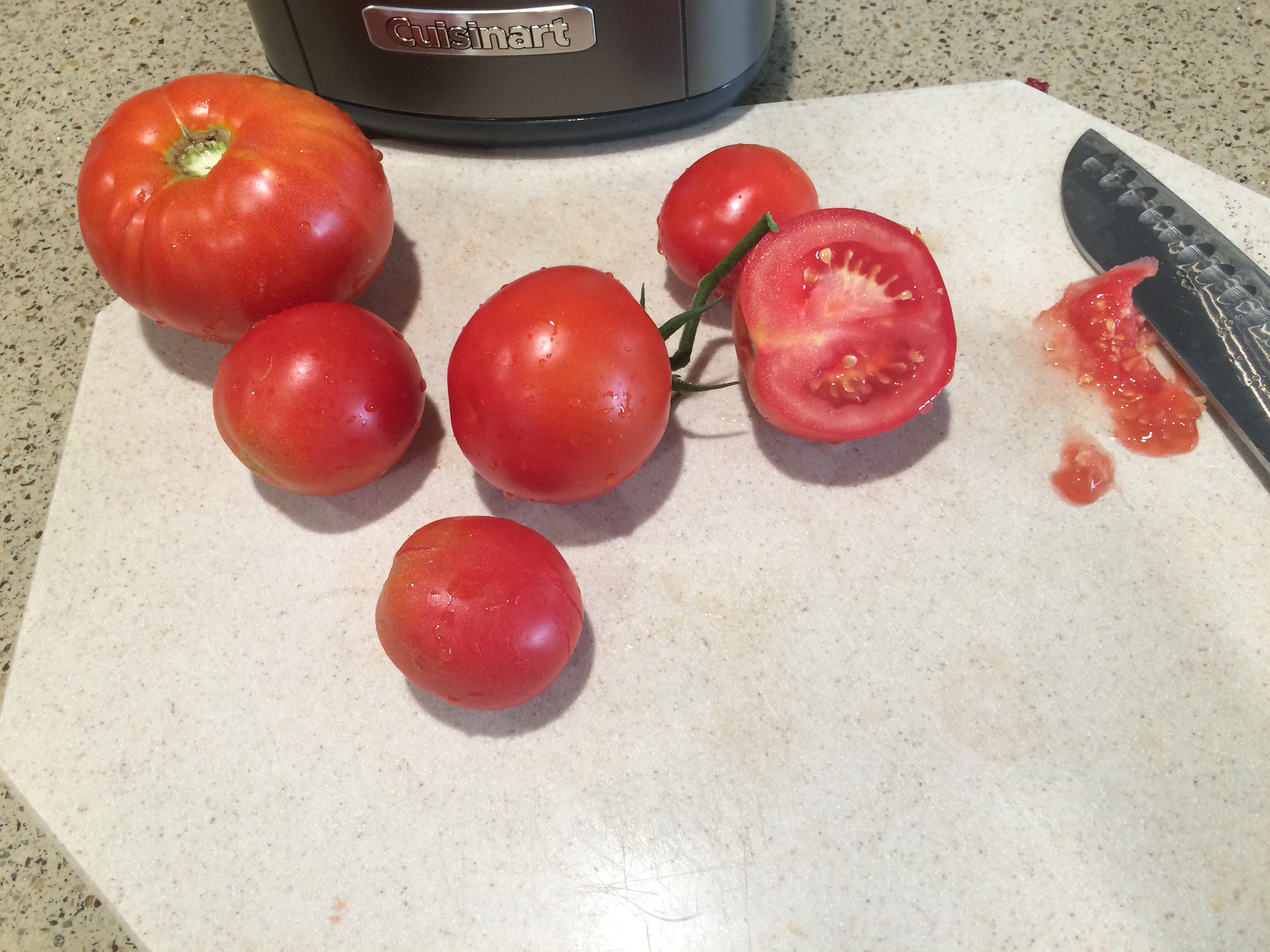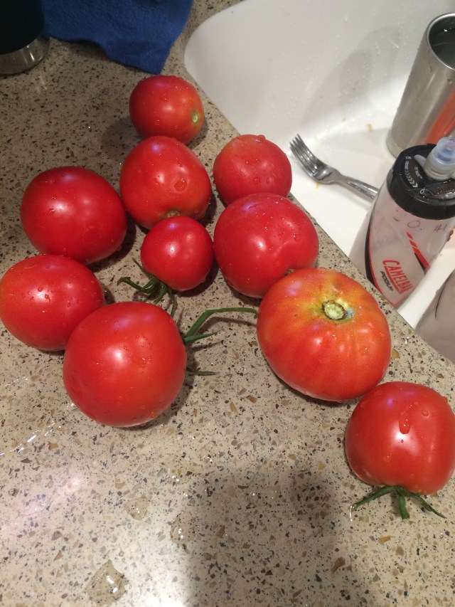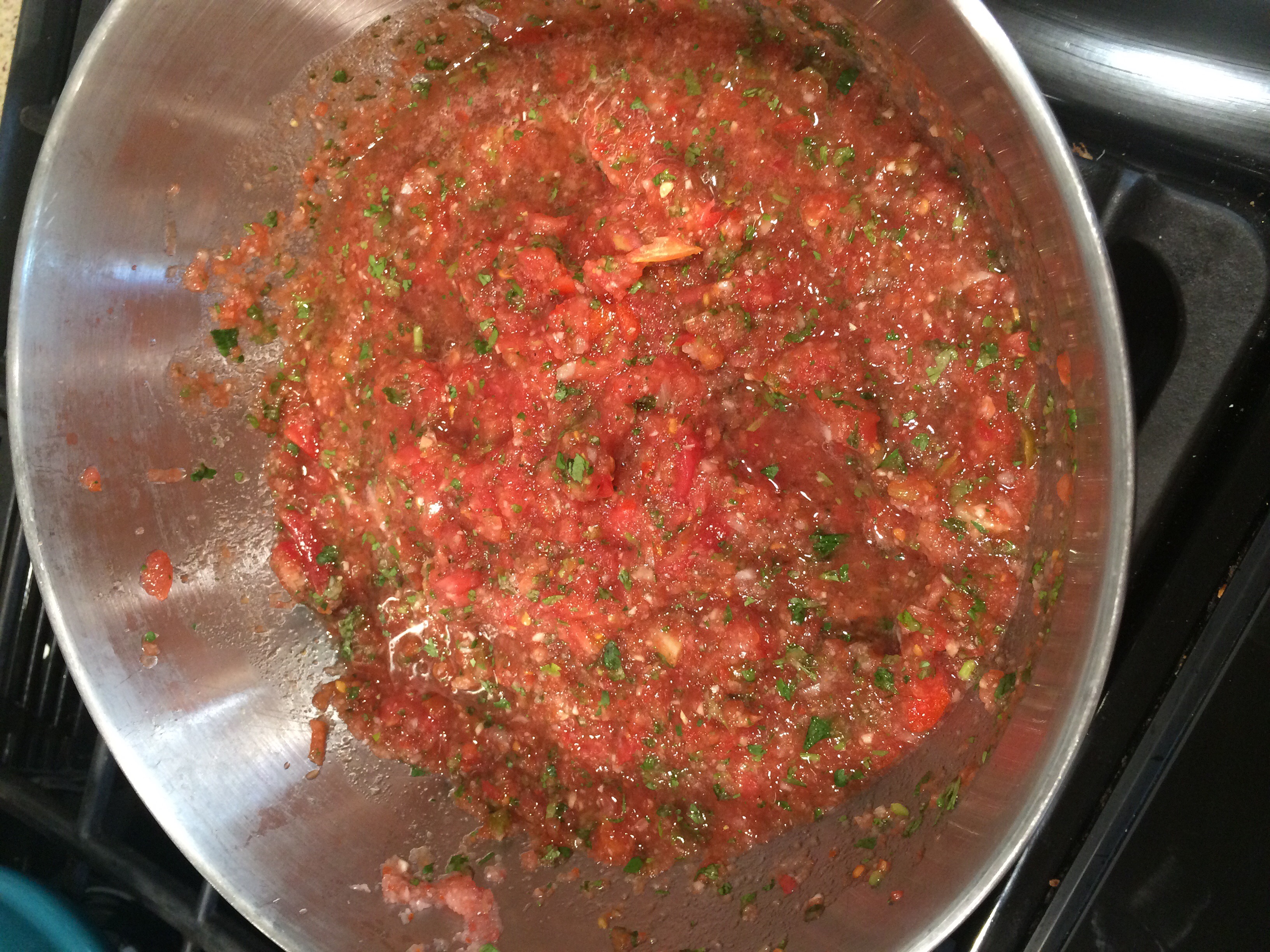 This was seriously the best salsa!! Just backyard tomatoes, a can of tomato sauce, garlic, cilantro, and onion.