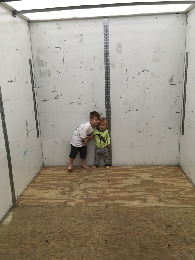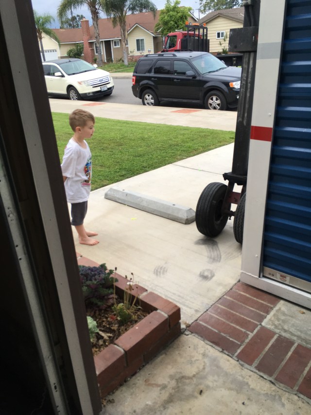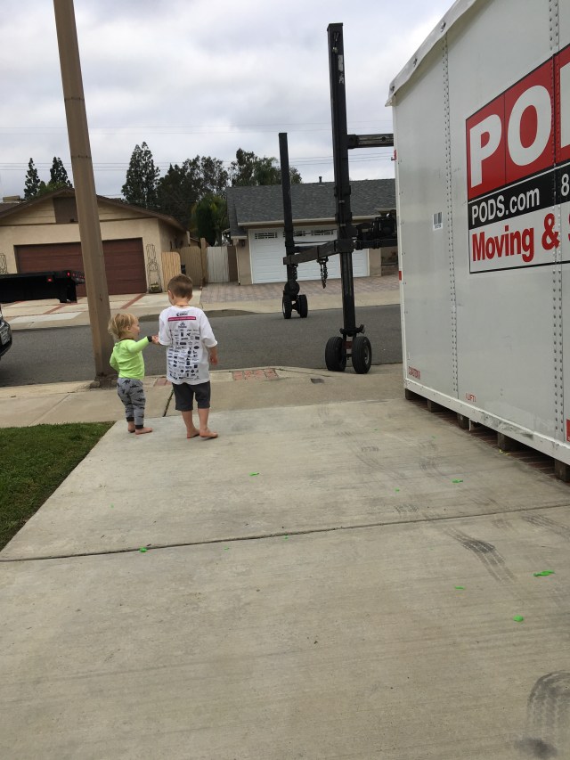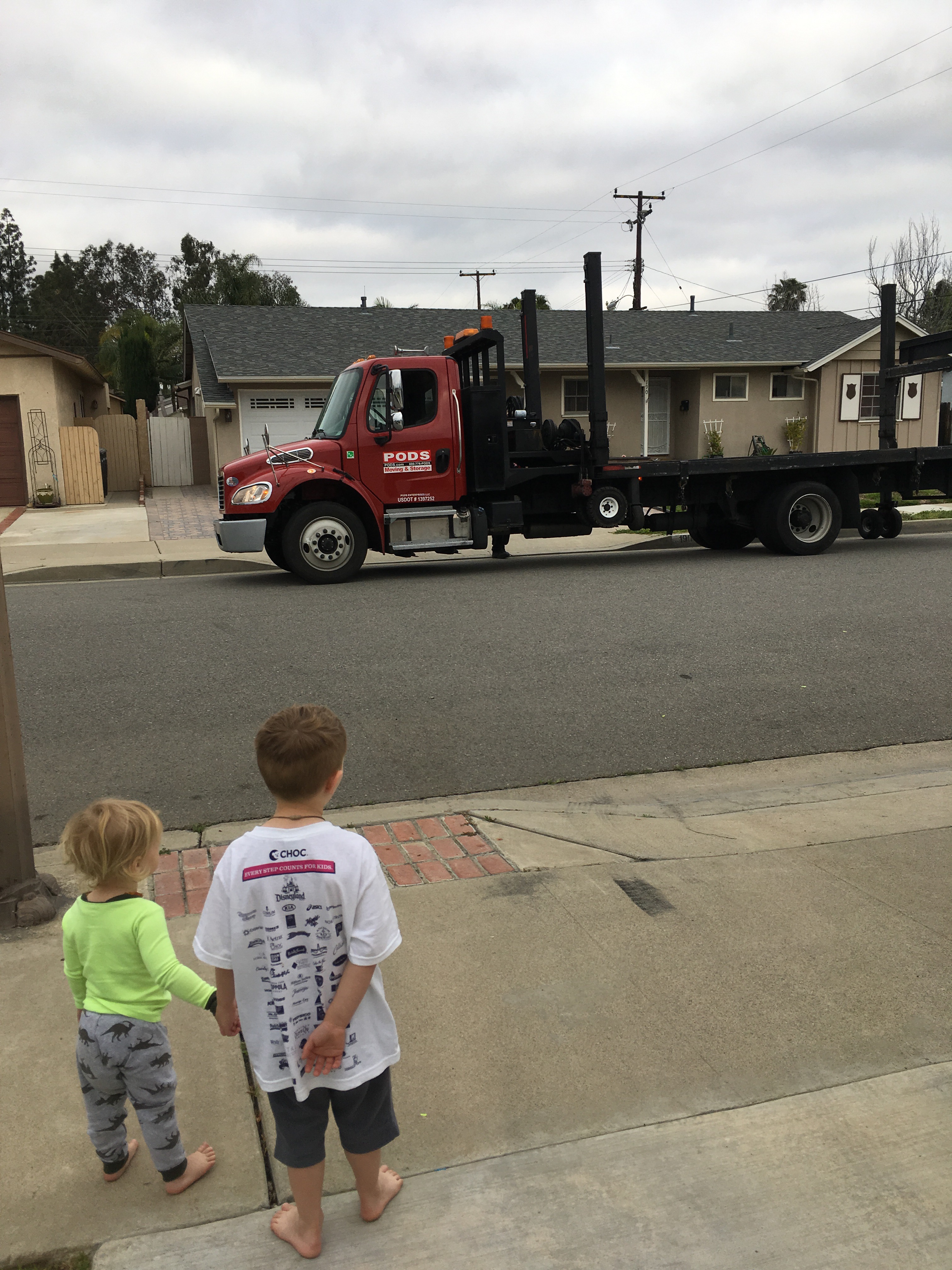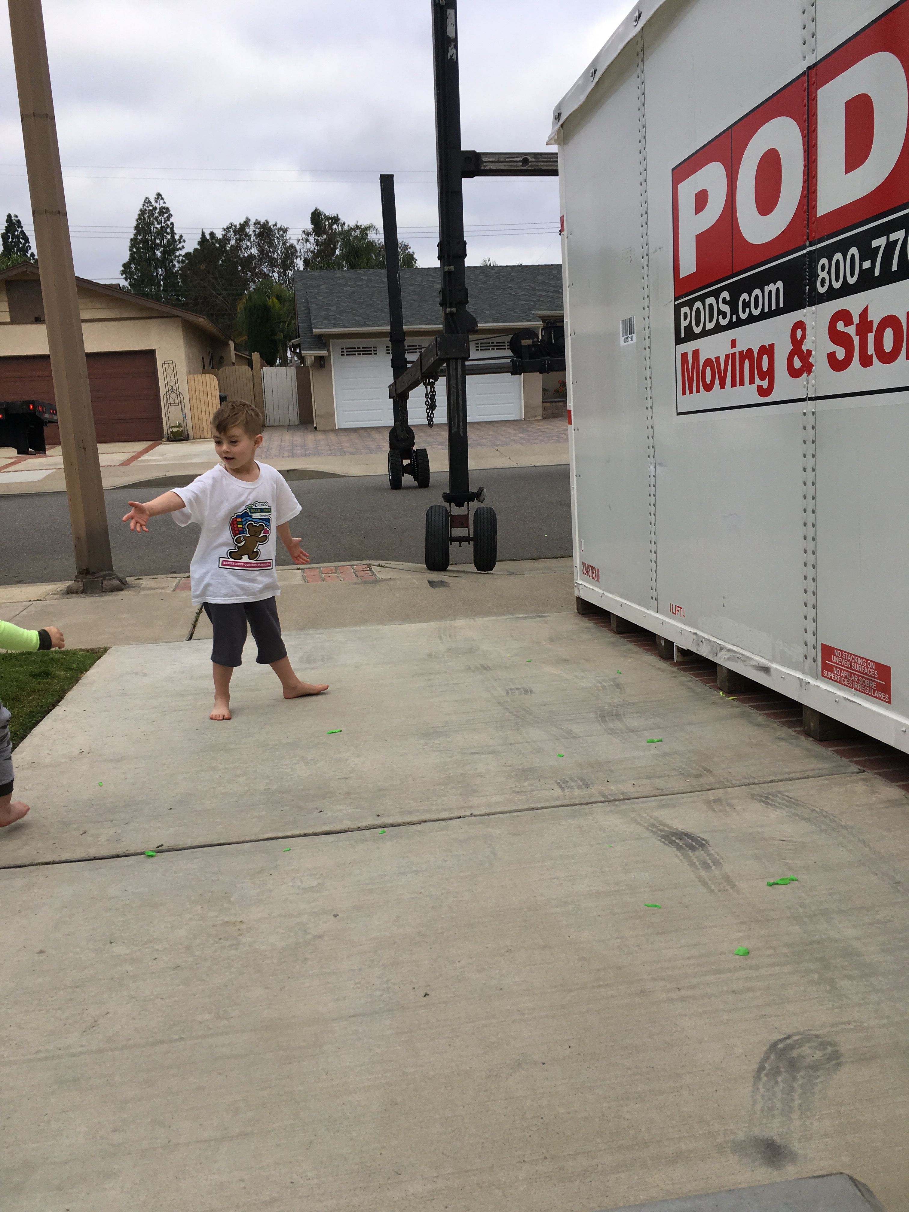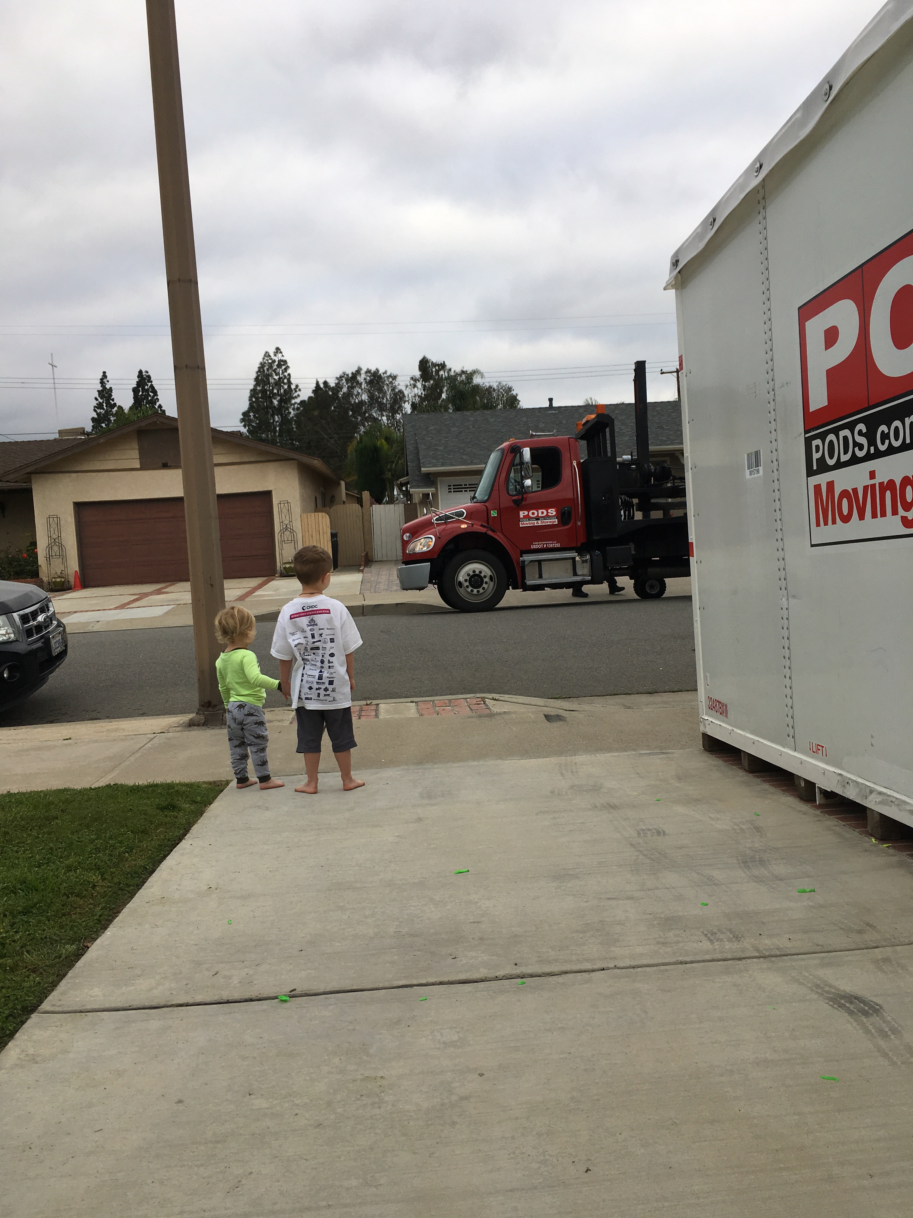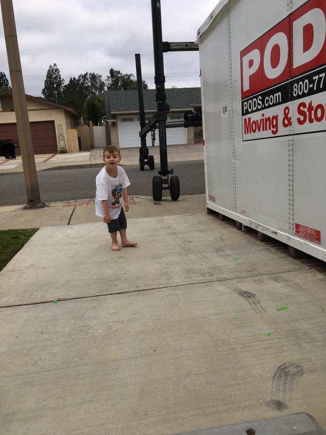 We are getting ready to move! We ordered a POD to store a lot of our furniture in until we can move into the new house. The delivery of it was a spectacle for us. The boys and I sat in the driveway and watched the whole interesting process. Our delivery driver, Roland, couldn’t have been nicer, and joked that he had his own Transformer.
