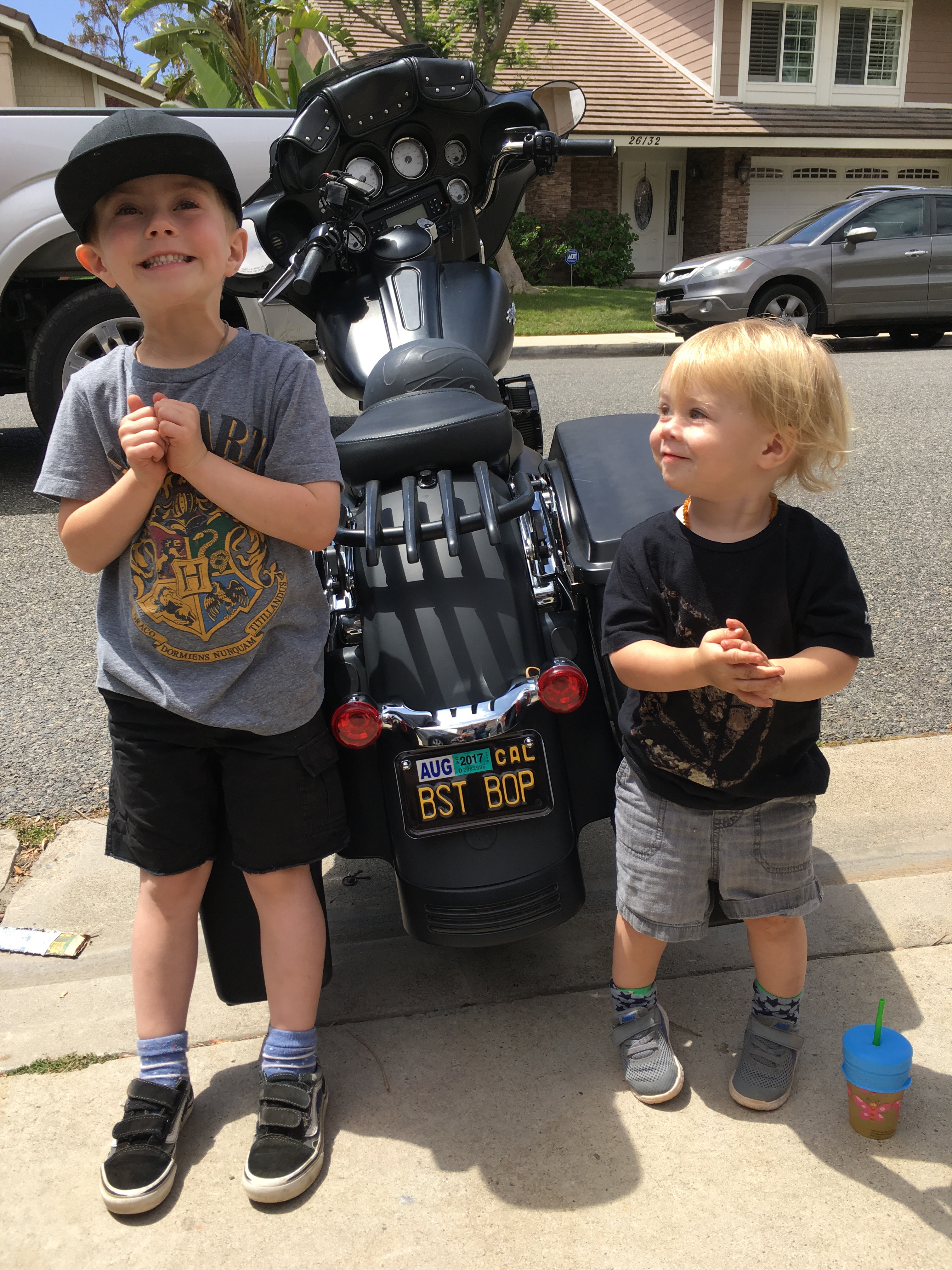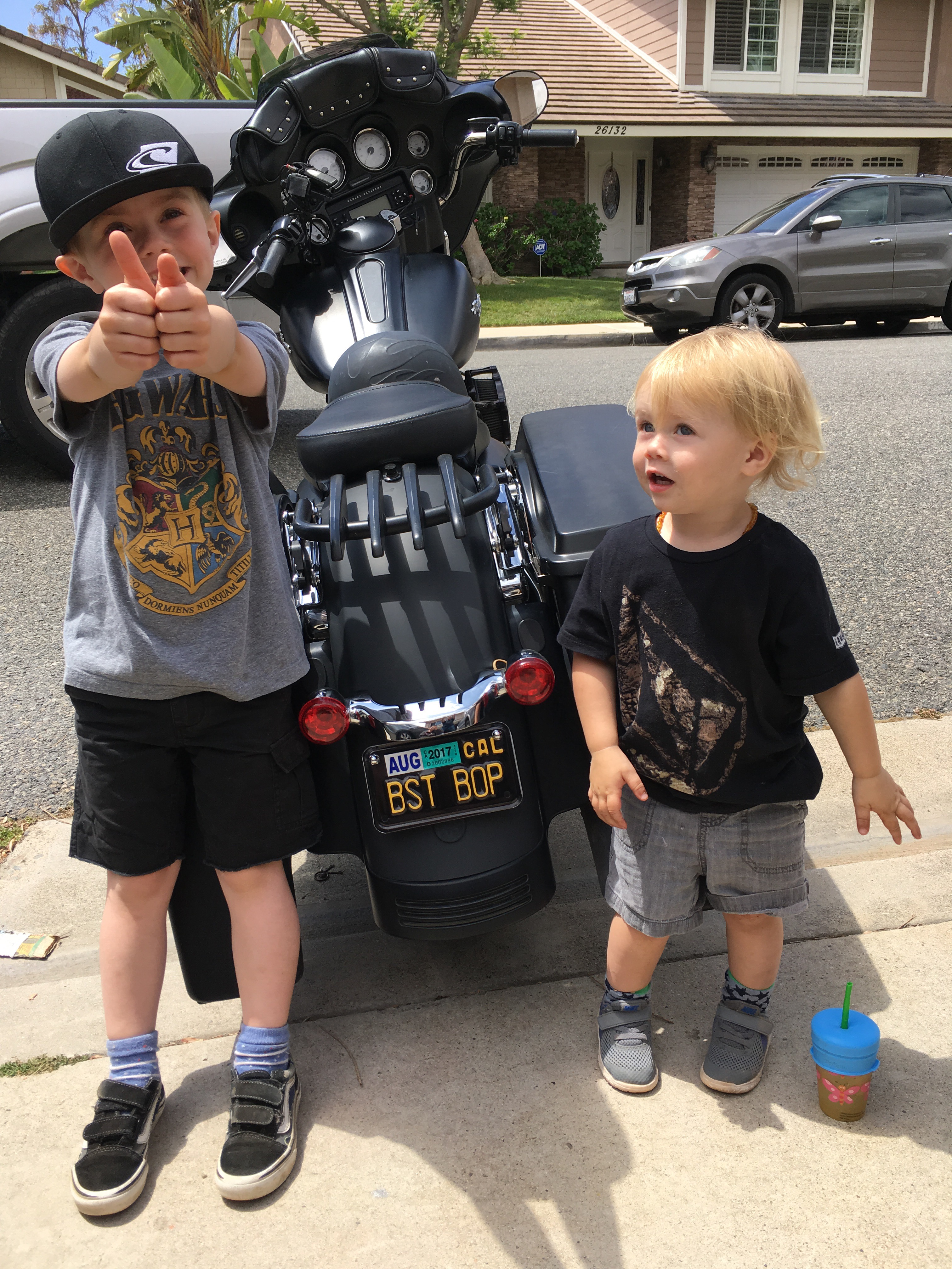 This entry was posted in Daily baby O2, Jacob stories and tagged black, black on black, bop, boys, Ca, dmv, Harley, harley davidson, license, motorcycle, plate, vanity plate, Vintage. Bookmark the permalink.