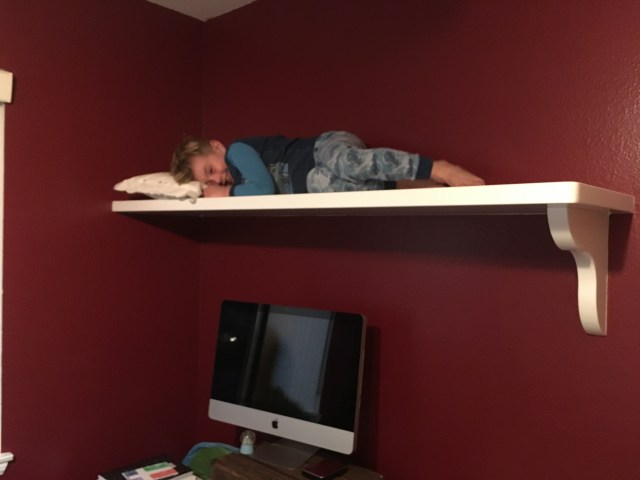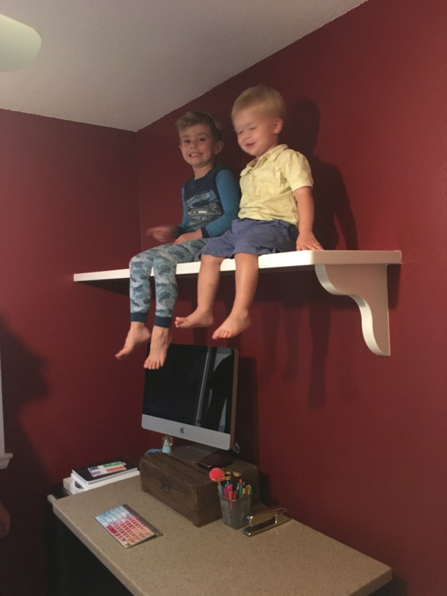 Then it was time for him to mud the closets, and he set the boys up to mud this cardboard box: