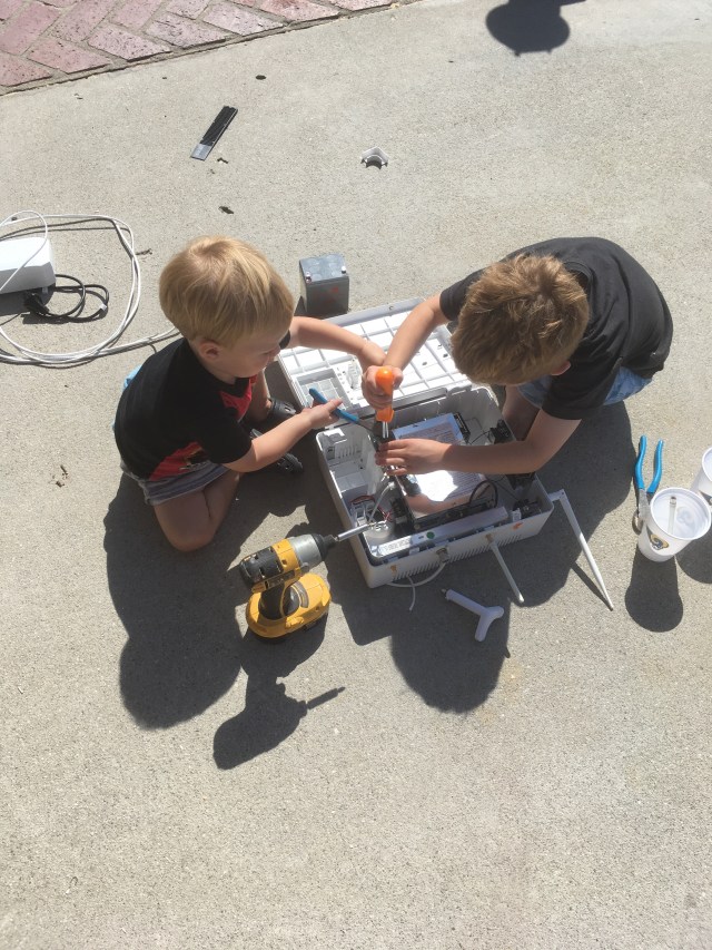 These are some lucky kids(; they have a very fun daddy who loves to do things with them. He had a pretty long list of things to do around the house, and he patiently involved them in each task.