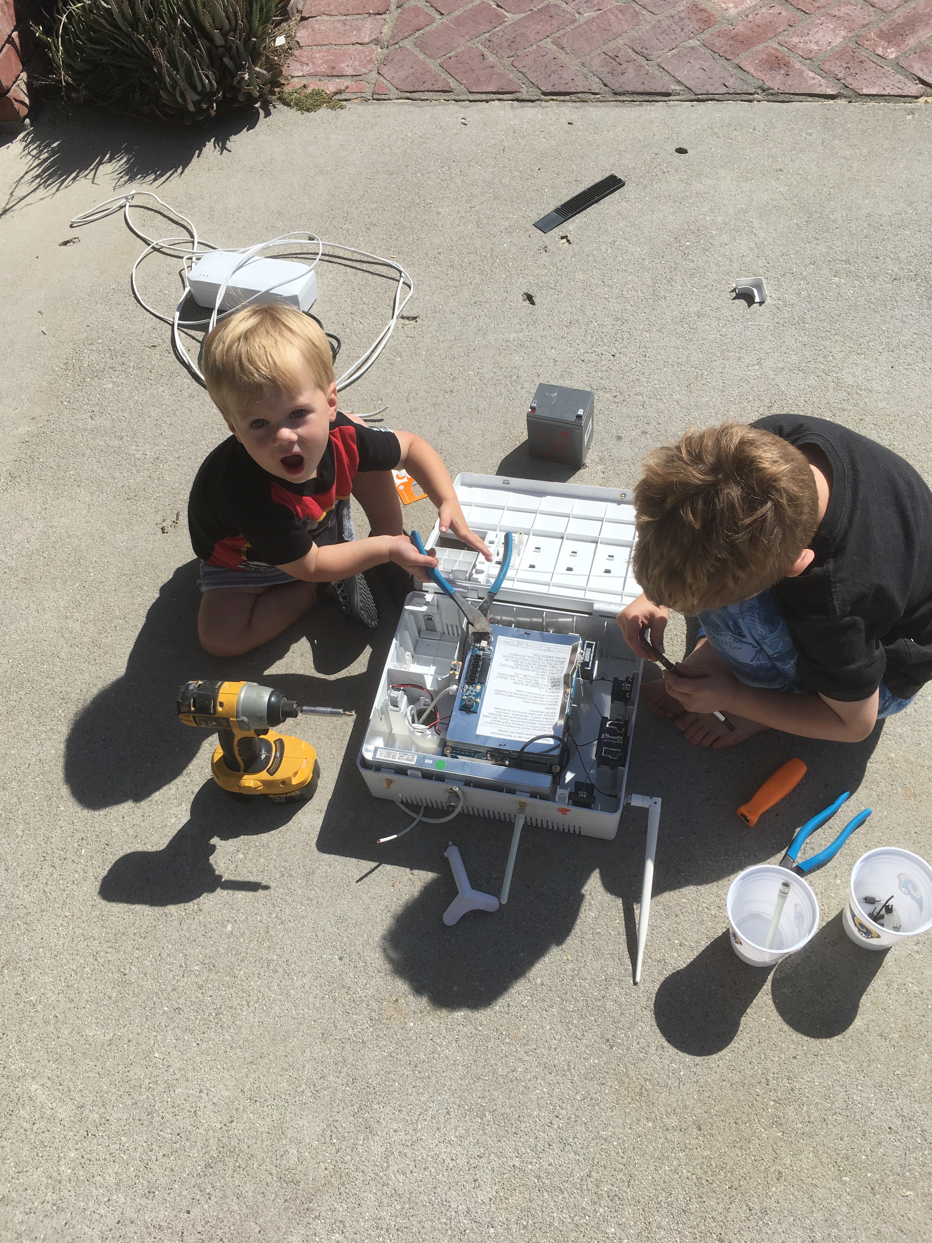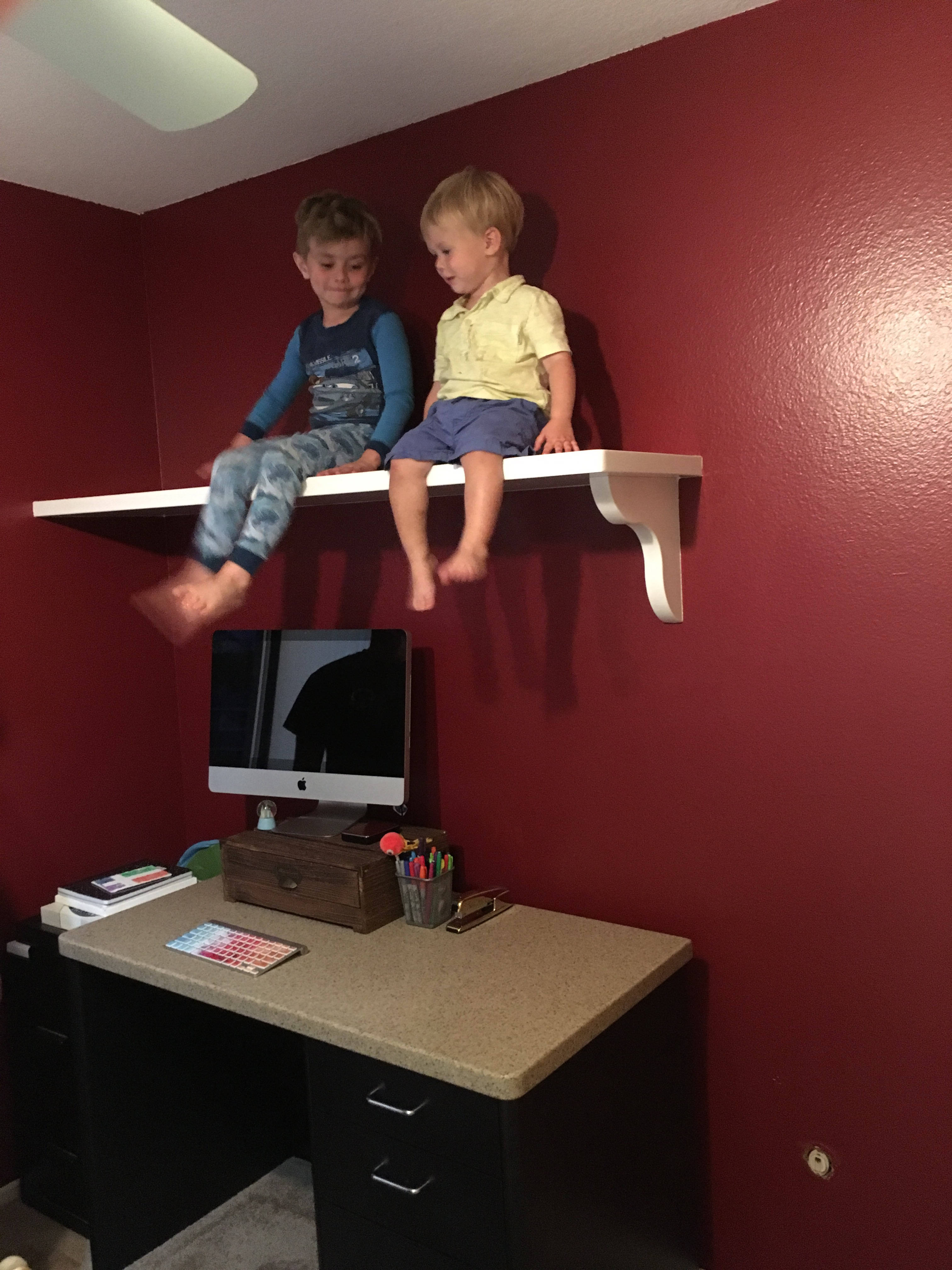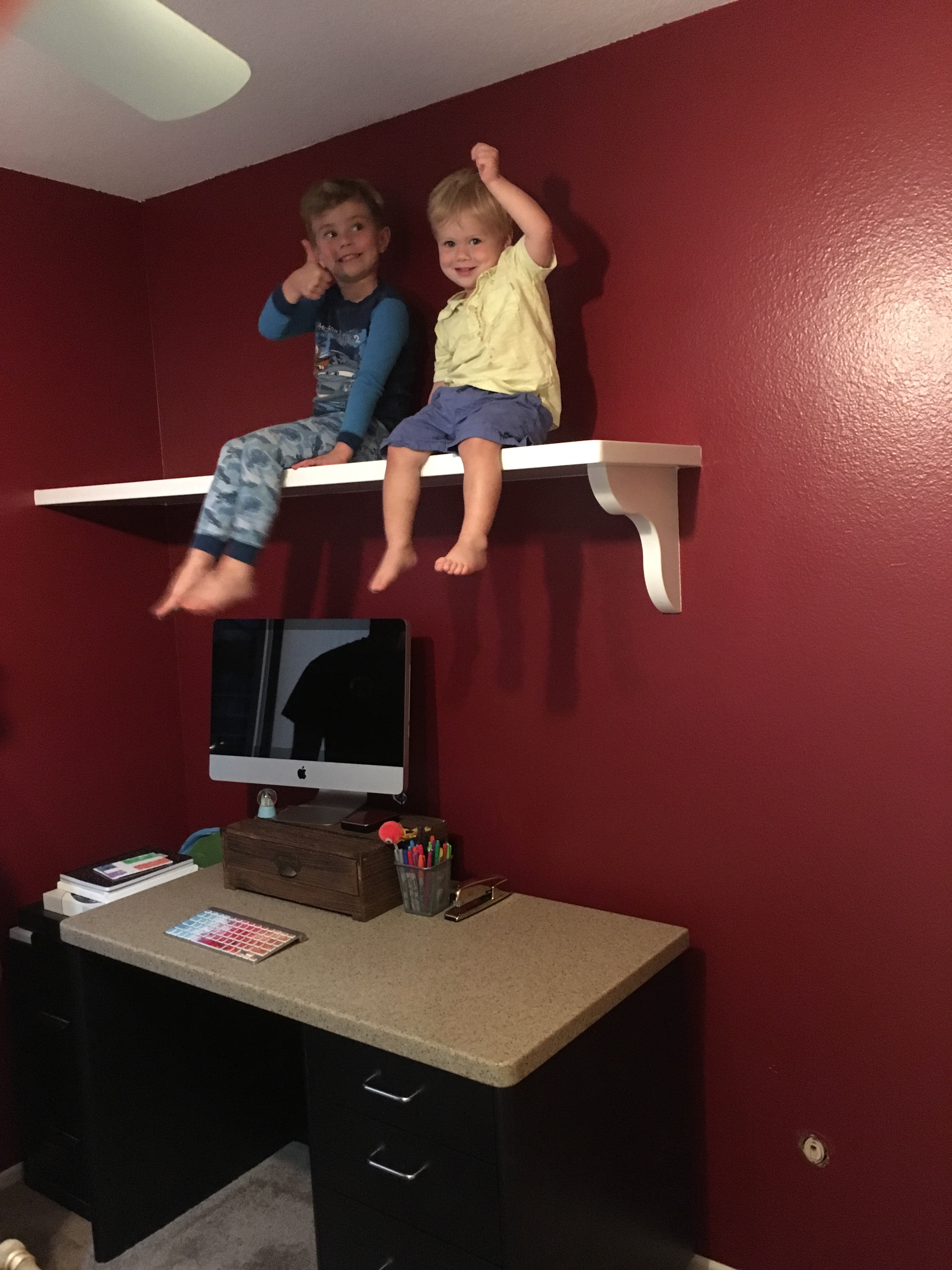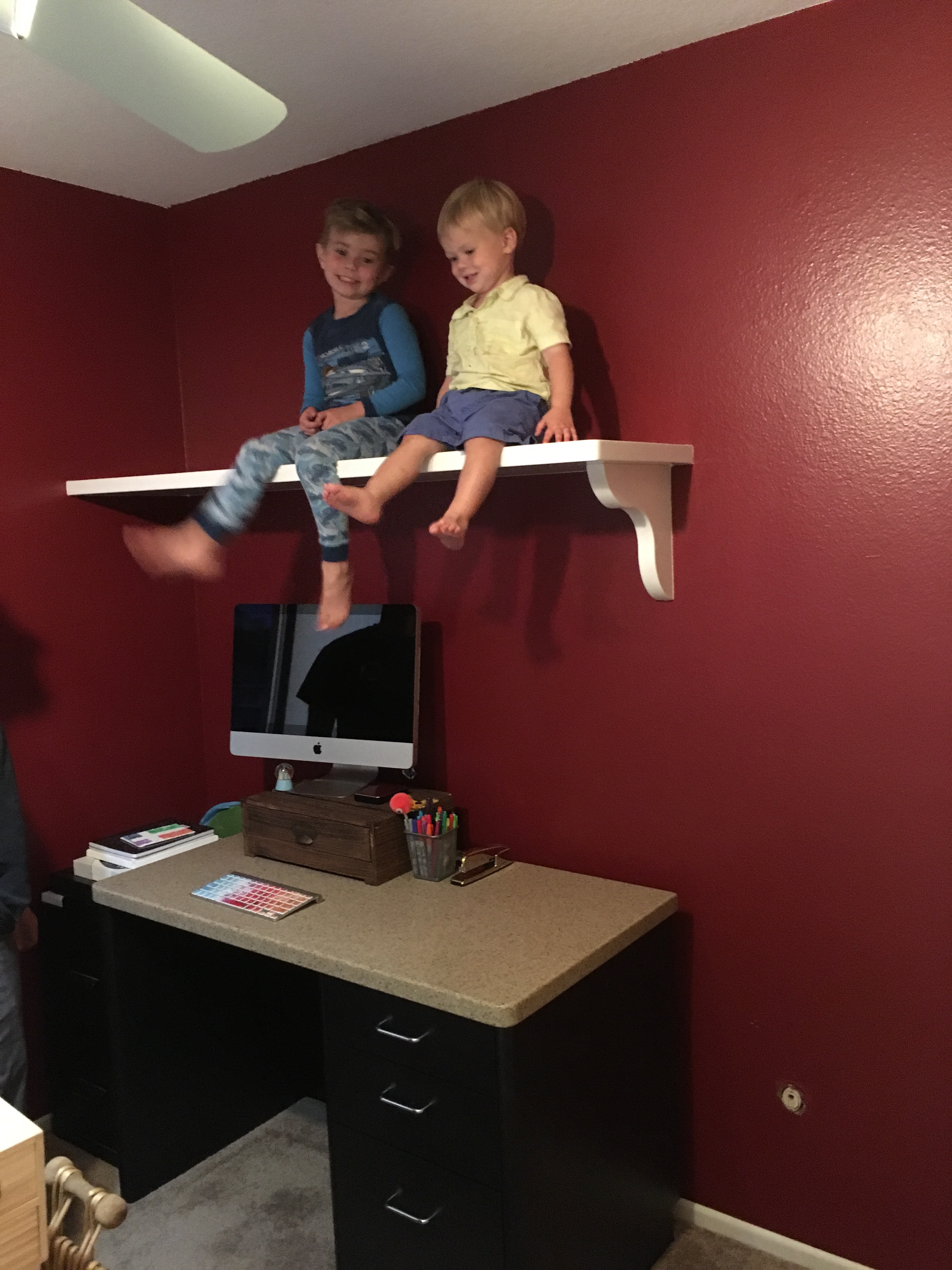 Then it was time for him to mud the closets, and he set the boys up to mud this cardboard box:
