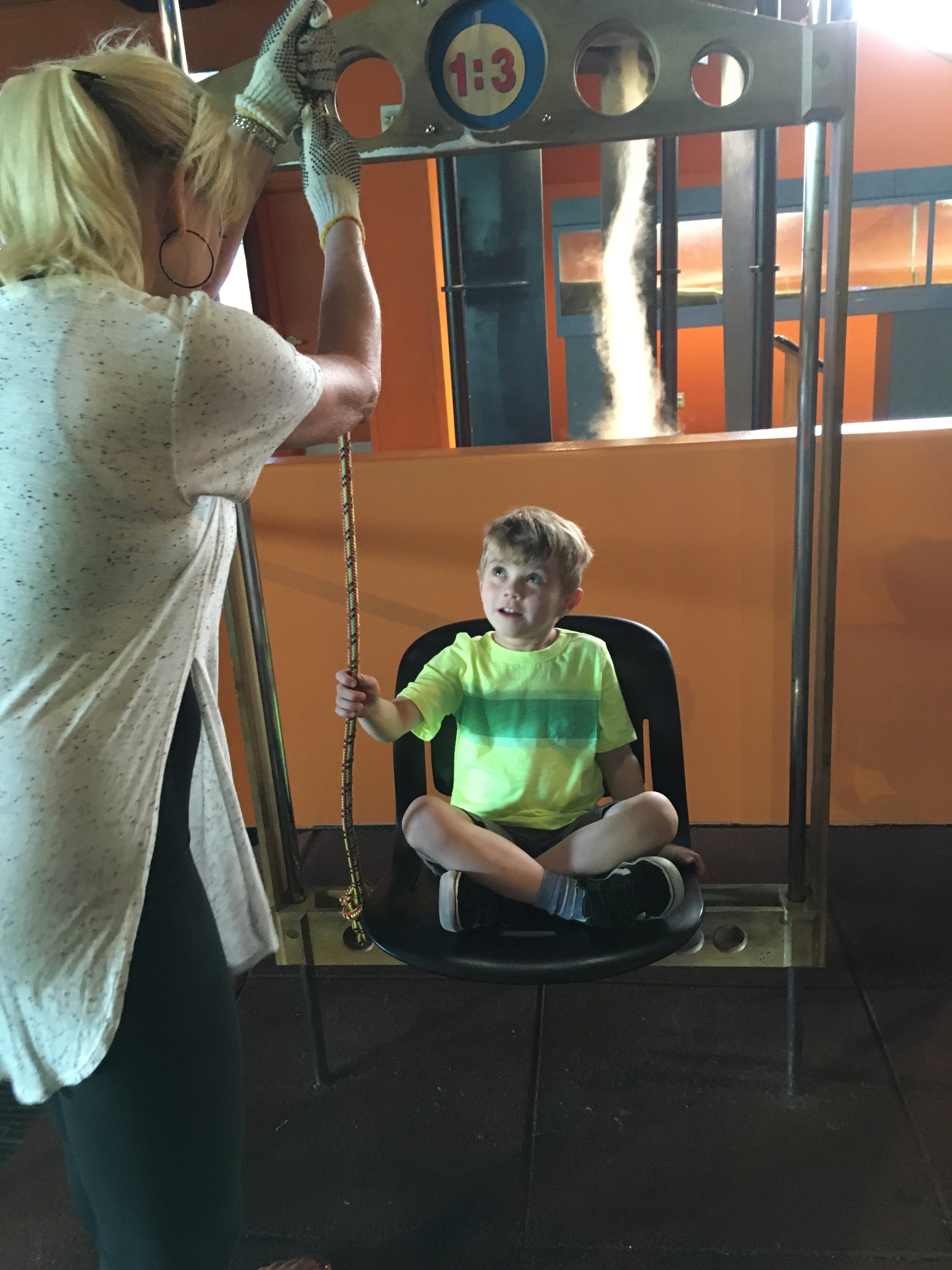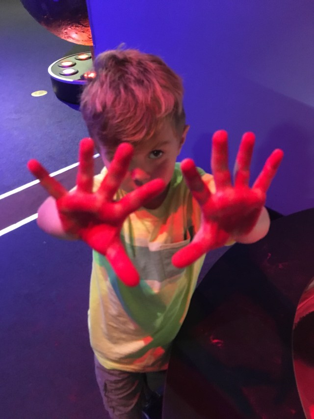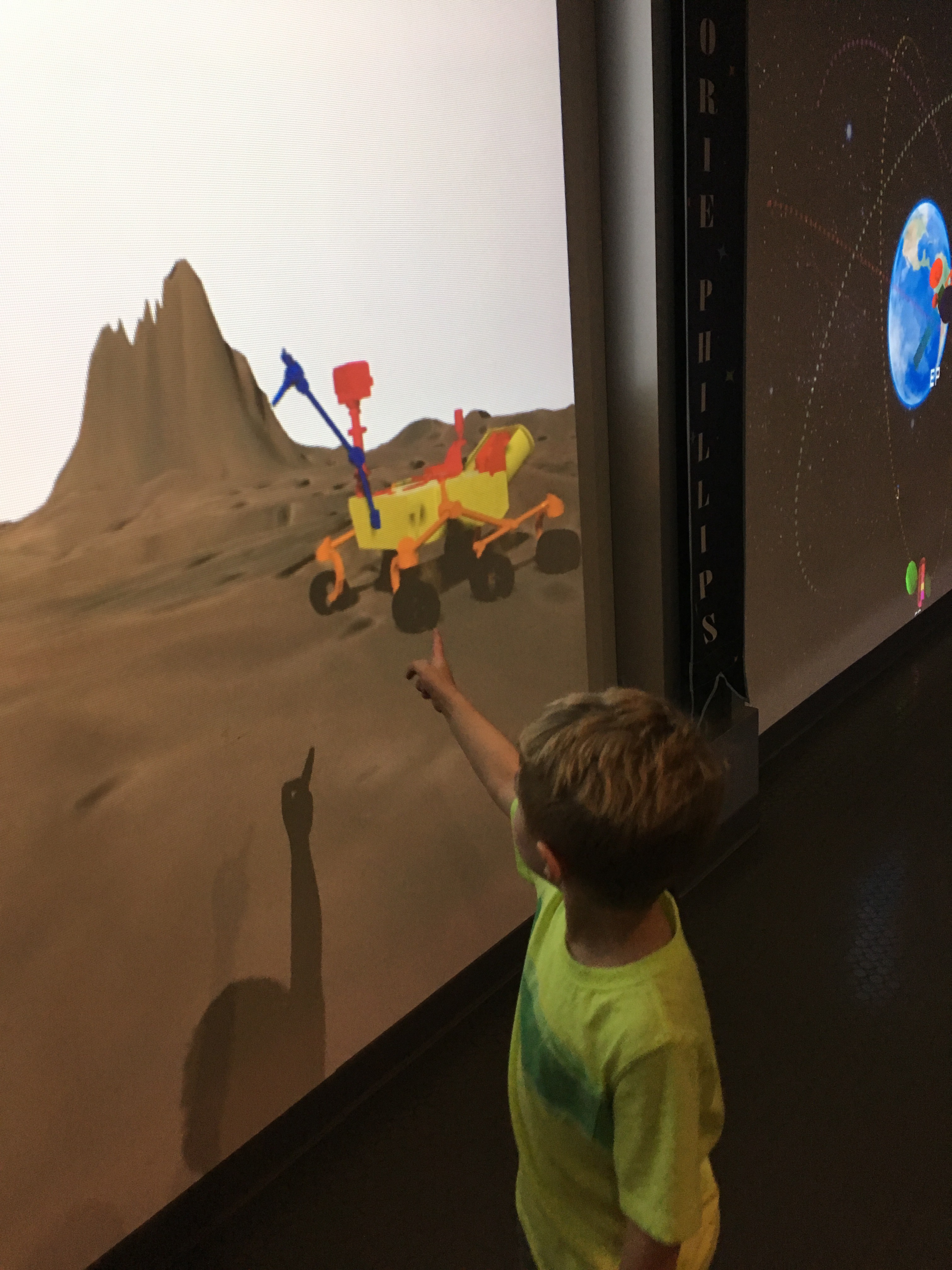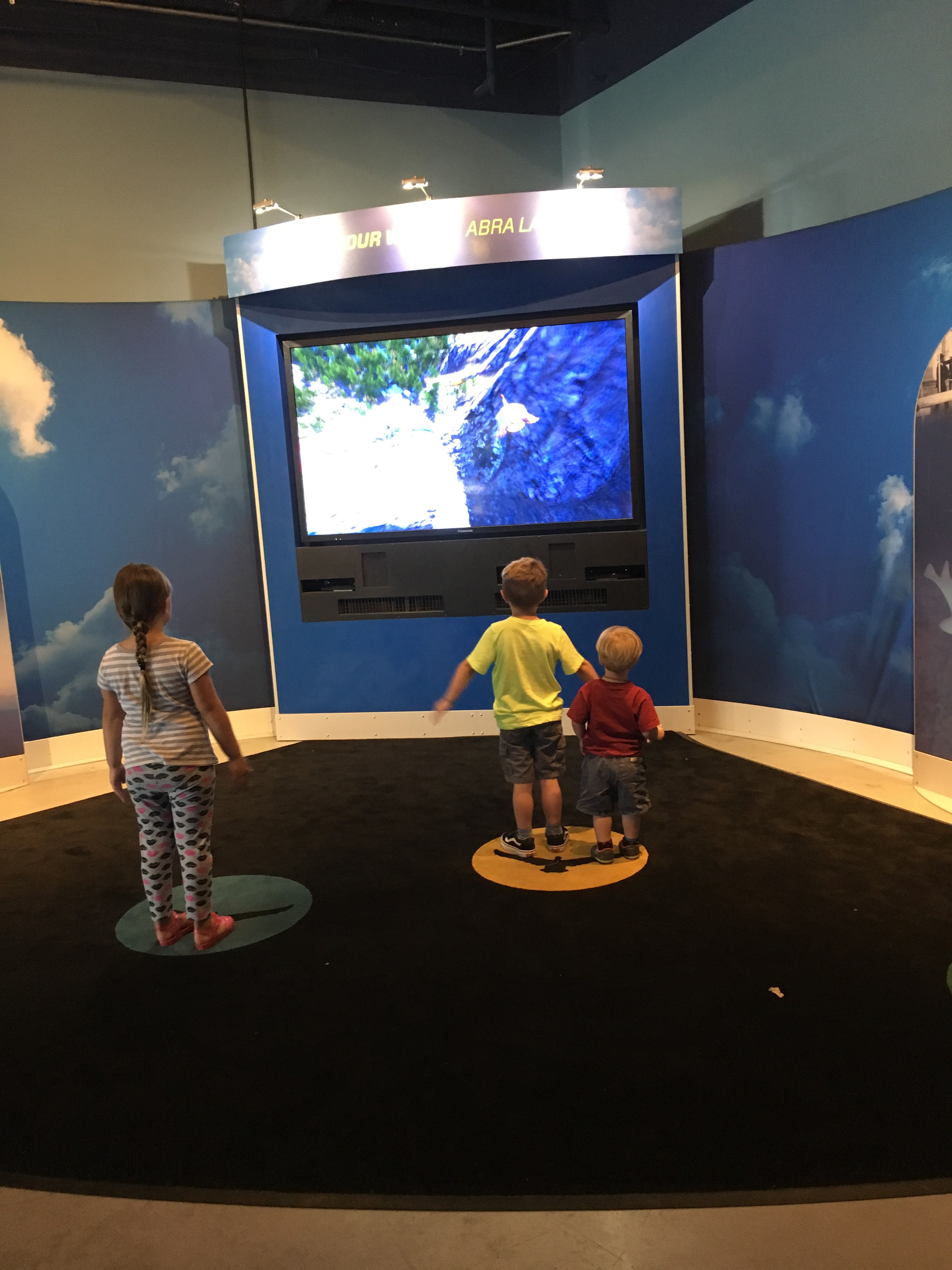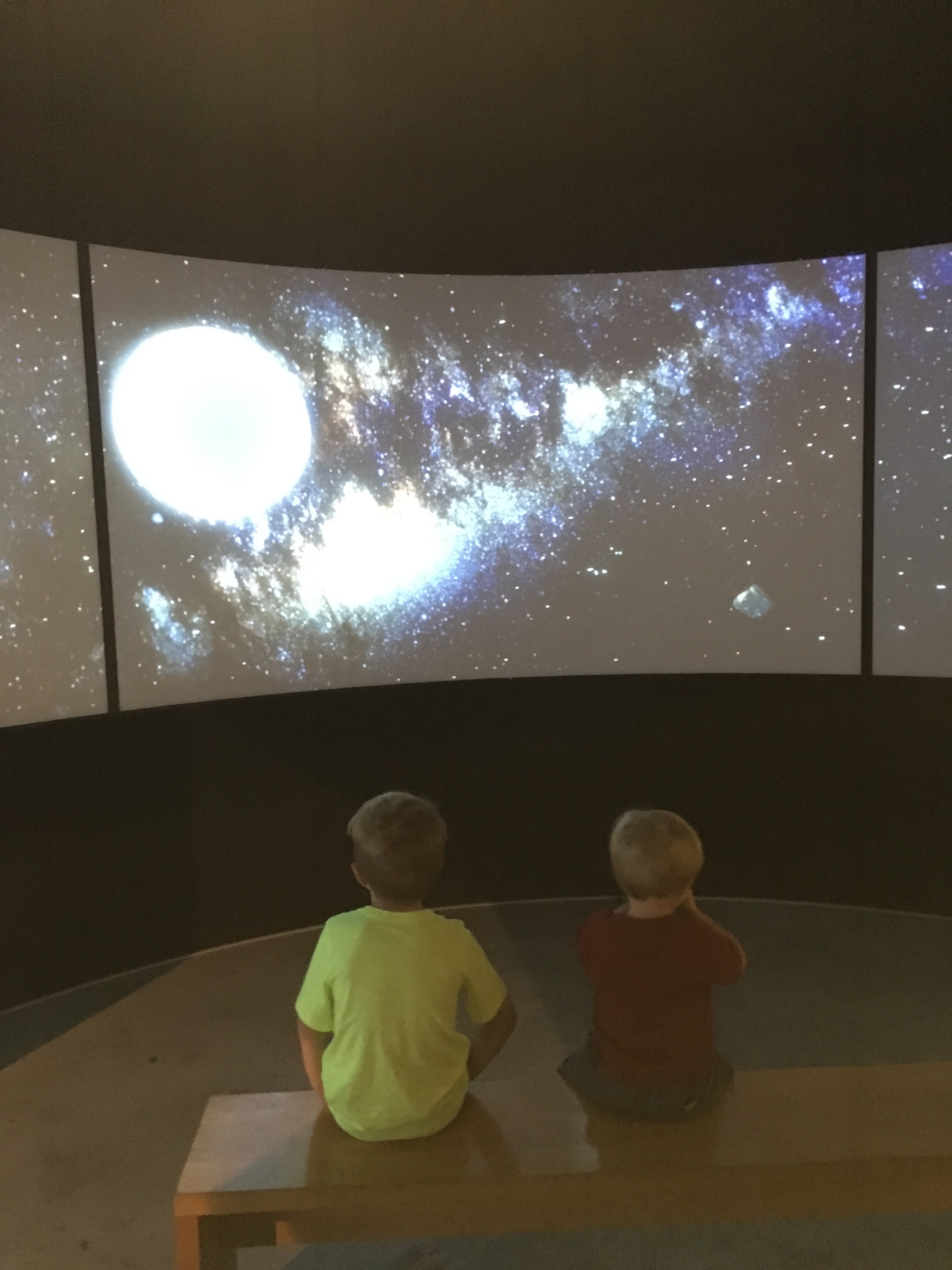 The featured exhibits were Doc McStuffins and an outer space exhibit by Boeing. Jackson loved the Doc exhibit. it was full of cribs and baby bathtubs and a vet clinic, and he enjoyed grooming and feeding baby dolls and a plastic piggy bank. Jacob was not impressed.